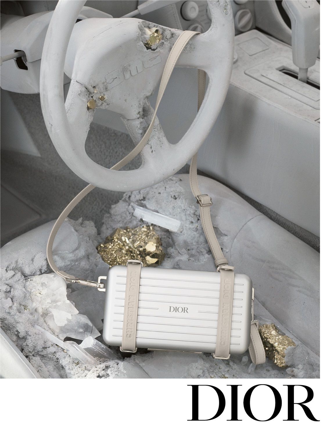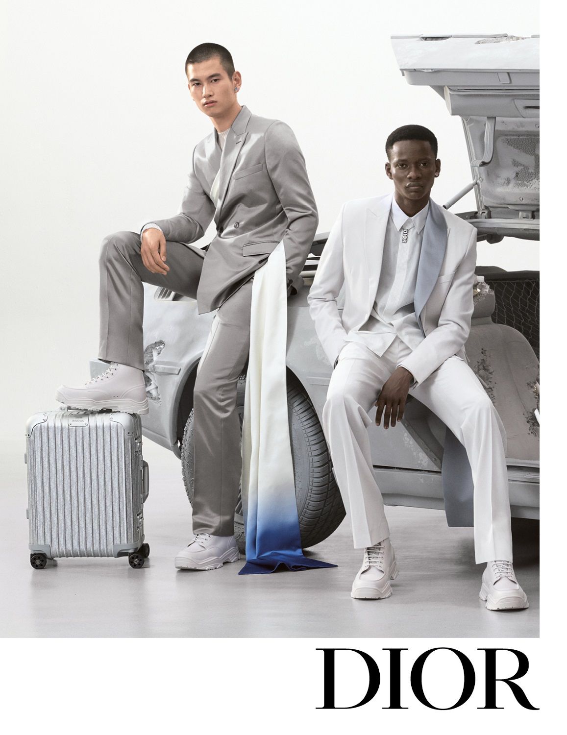 I gioielli e gli accessori, comprese le valigie parte della partnership con Rimowa, incarnano con il loro aspetto eroso e consumato dal tempo la filosofia di Arsham, la cui arte immagina gli oggetti della modernità come se fossero degli antichi reperti. Neli abiti della collezione, invece, l’eleganza sartoriale contemporanea di Jones, con i suoi completi decostruiti e dai colori neutri, si combina con elementi che raccontano l'identità e il patrimonio di Dior: dal mughetto, fiore portafortuna dell'originale monsieur Dior, al pattern Dior Oblique disegnato da Marc Bohan nel 1967 fino alla tinta Dior Gris che domina la palette della collezione. Sul piano delle scarpe, invece, oltre alle sneaker colorate da un gradiente rosa e azzurro, l'item più interessante sono i boot trasparenti.