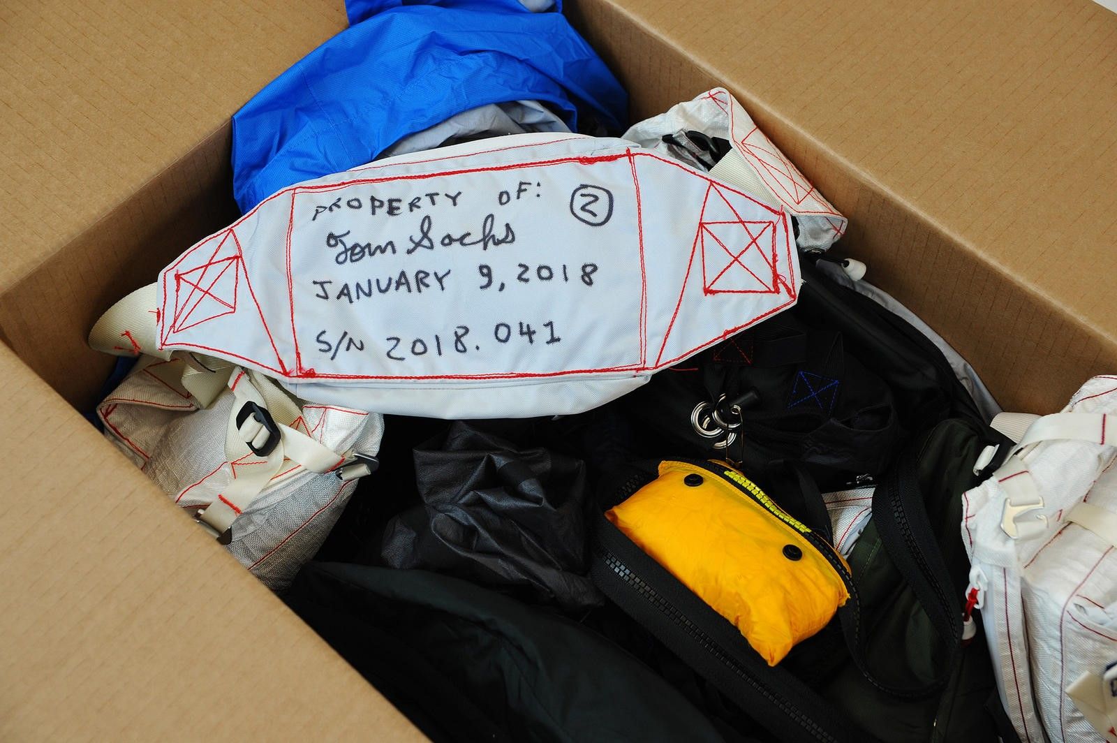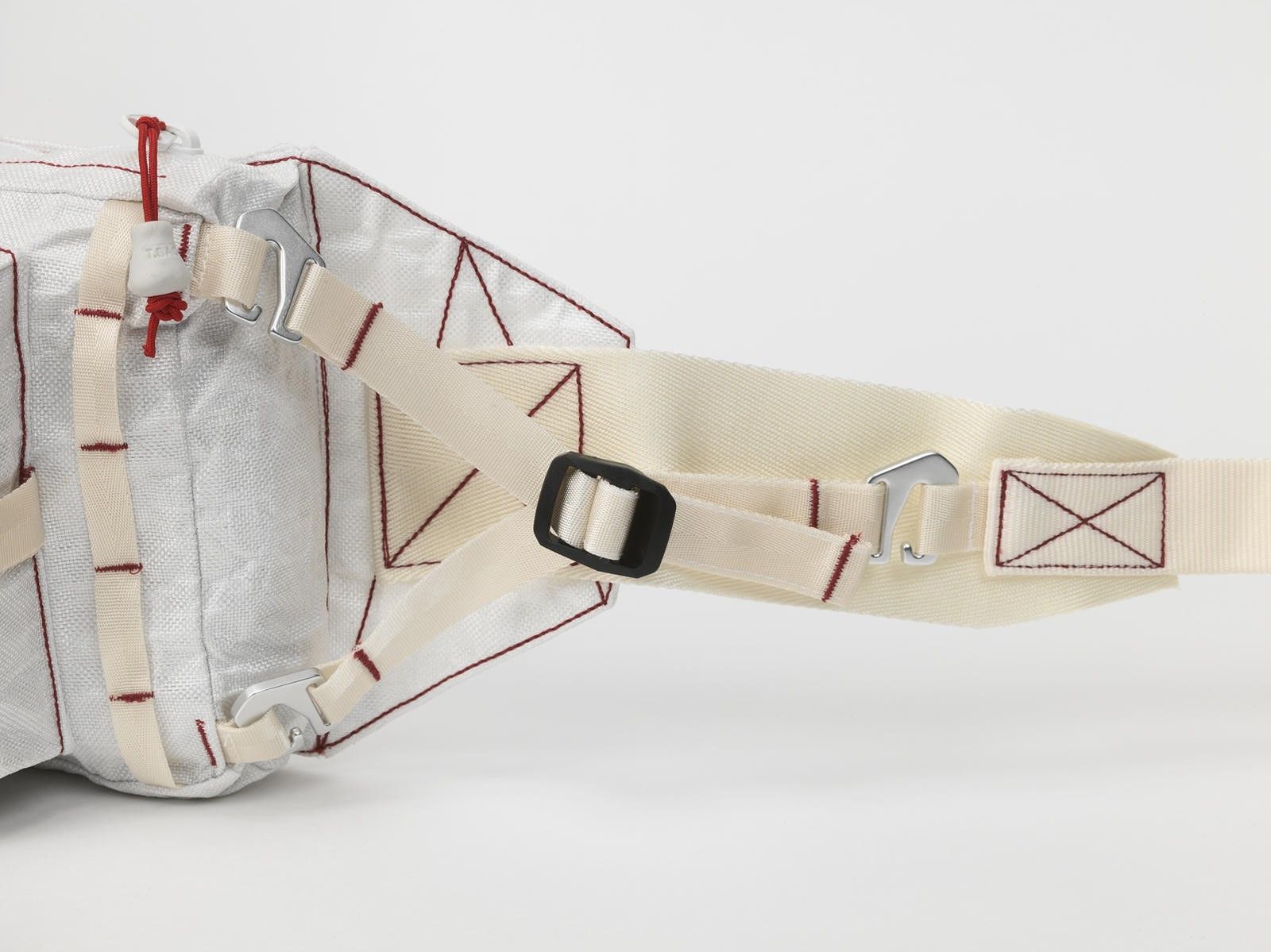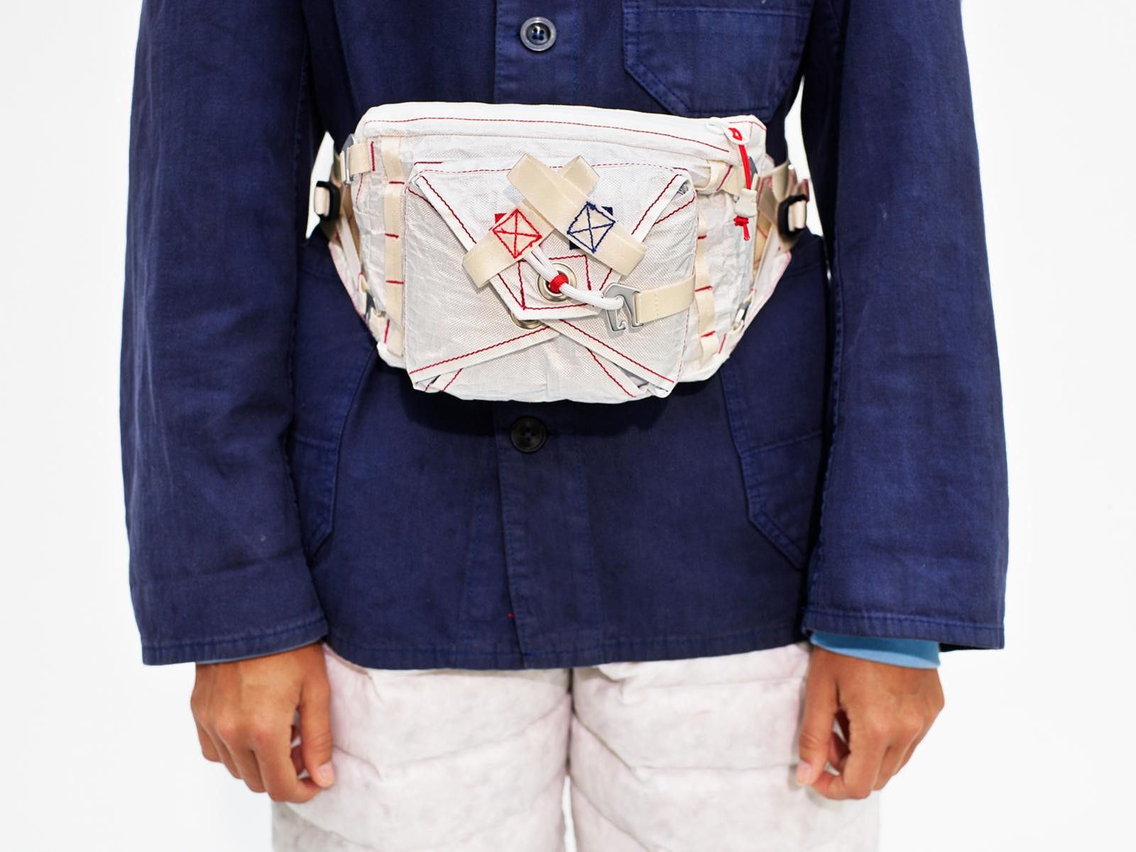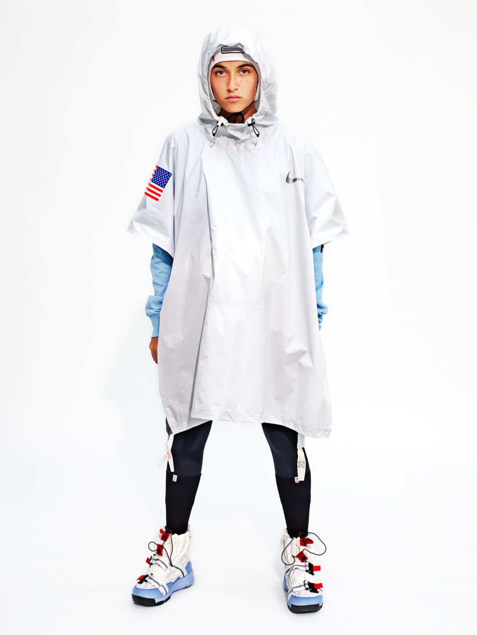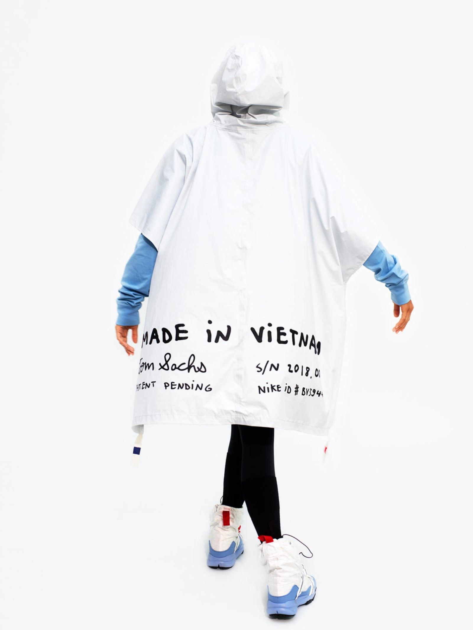 La collezione “Transitions” rappresenta una continuazione della stessa linea estetica iniziata con la Mars Yard Overshoe, impiegando lo stesso tessuto laminato Dyneema® ultraleggero e weatherproof. L’item centrale della collezione è l’Exploding Poncho, decorato sul retro da grafiche che riproducono la scrittura di Sachs e che si ripresentano anche sul marsupio. Altri item includono una cuffia con portamatita ispirata all’headwear degli astronauti, una maglia long-sleeve e shorts sportivi imbottiti.
