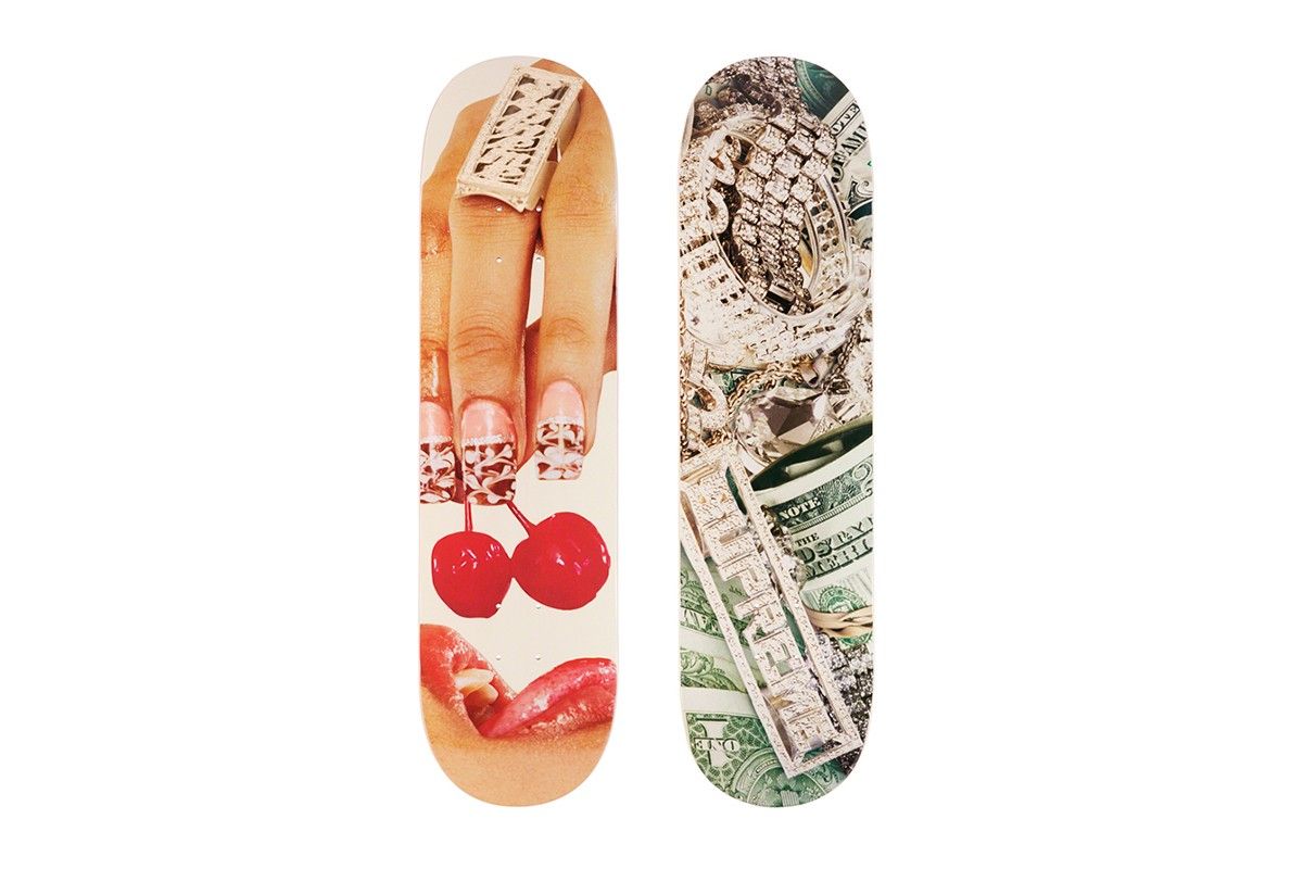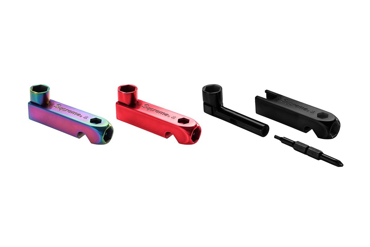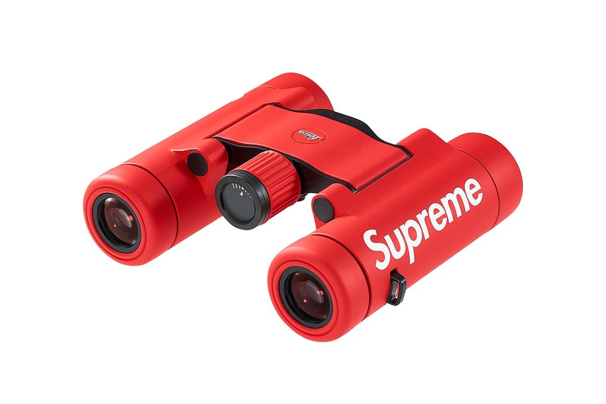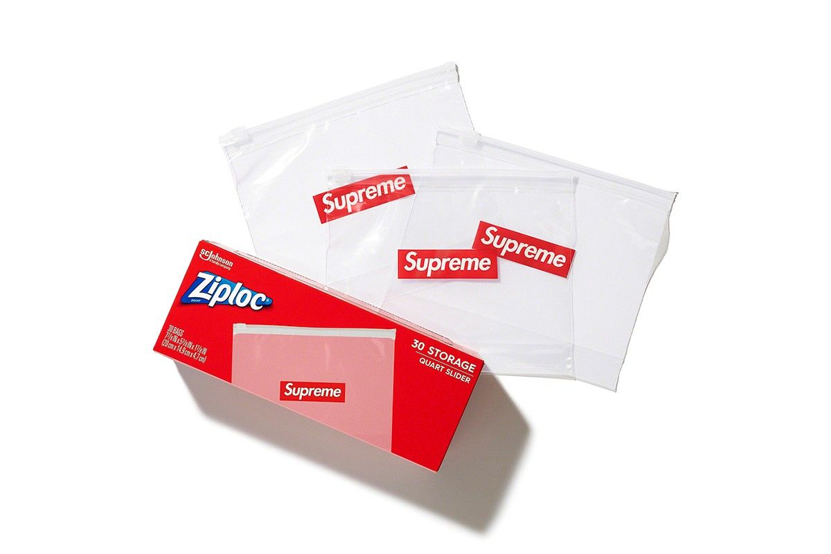 Altri item includono una bici BMX e biscotti Oreo rossi con il Box Logo di Supreme, ma anche carta fotografica Fujifilm per Polaroid, un giradischi, una palla da basket e sacchetti sigillabili per alimenti. Mentre oggetti più tradizionali sono le classiche tavole da skateboard, una serie di accendini, cinture e portachiavi e item tecnici come occhialini da nuoto e guanti da motocicletta. Notevoli poi sono il lucchetto trasparente e il fischietto per richiamare gli uccelli.