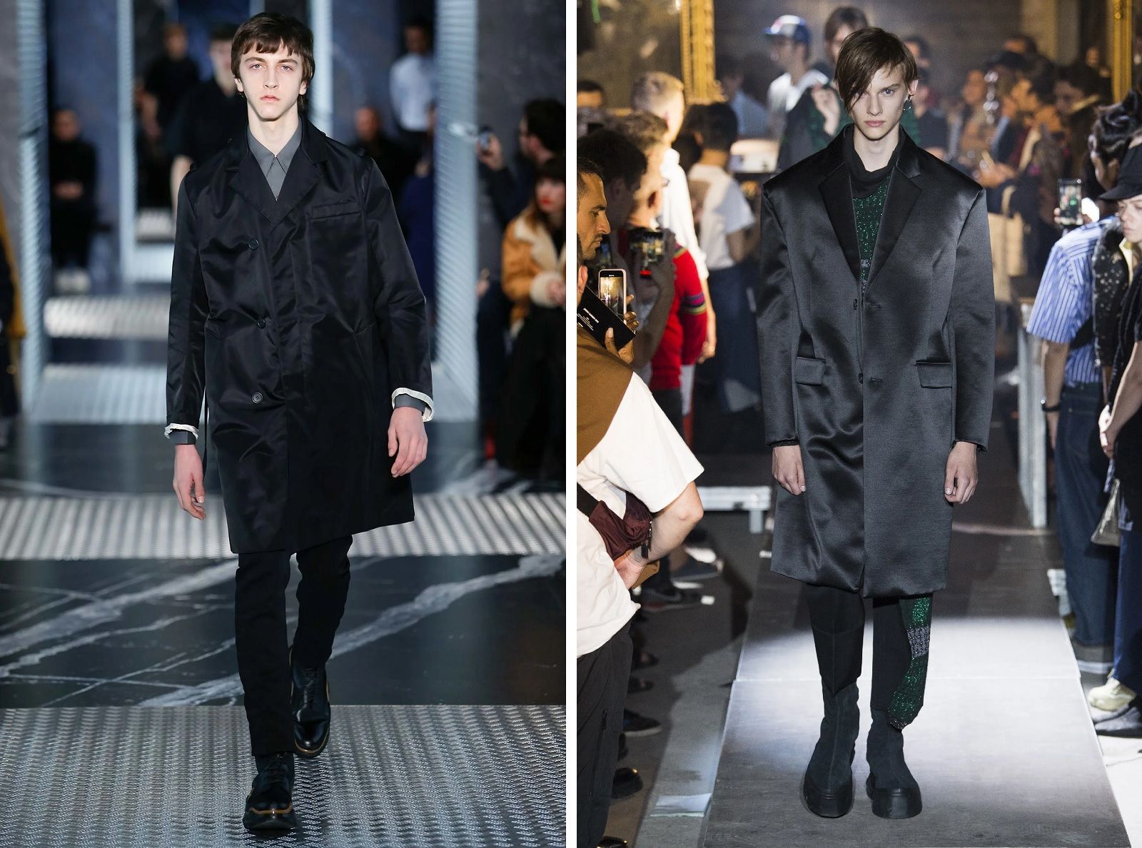 Ha detto Mrs Prada, che da sempre porta in passerella una personale interpretazione di femminilità. Nella collezione FW20 leggerezza e delicatezza, da sempre aggettivi connessi ad un’idea di donna frivola, diventano sinonimo di forza e potenza. Simons, invece, continua a rielaborare e riscrivere il paradigma maschile.
