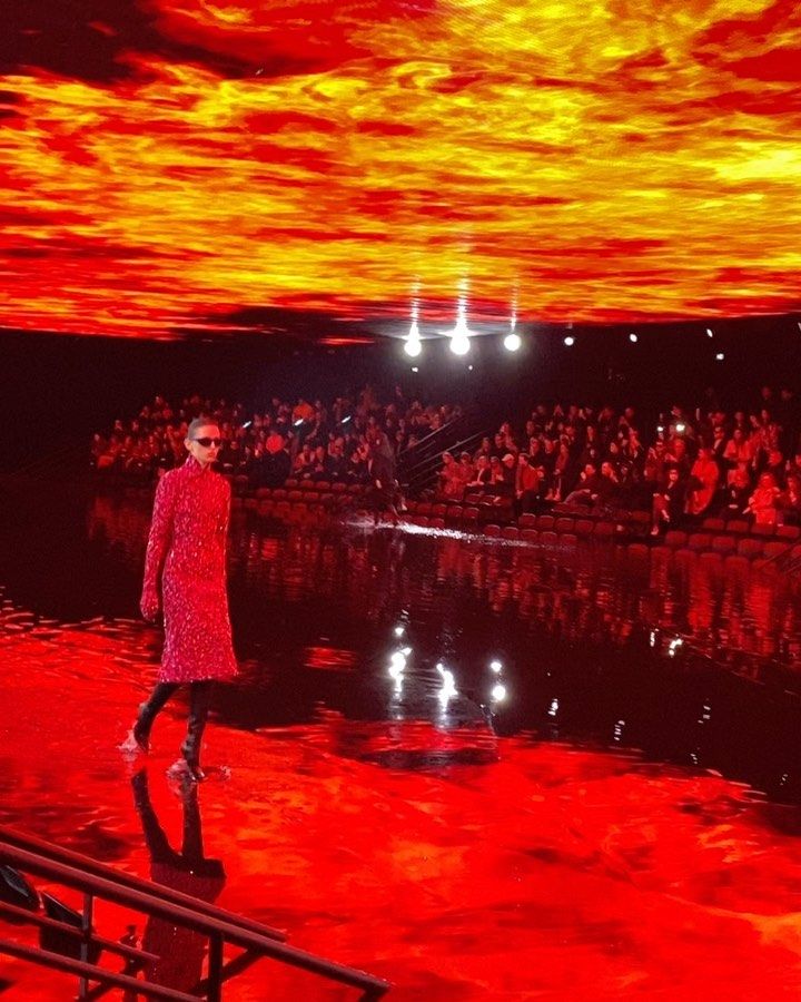 Quello della moda è un sistema che possiede i propri simboli e i propri miti. Uno dei più longevi, oltre che uno dei più importanti, è quello del front row: fin da sempre, chi è seduto in prima fila è più rilevante di chi viene fatto accomodare nella seconda. Ma quest’anno Balenciaga ha decostruito questo mito. Il set dello show creato da Nicke Bildstein-Zaar presentava infatti una passerella completamente allagata, con il livello dell’acqua che ricopriva le prime due file di posti – un un potente messaggio politico sulla sostenibilità e sul riscaldamento globale i cui toni apocalittici erano rinforzati dallo schermo a led sospeso sulla passerella che riproduceva immagini di fiamme e nuvole minacciose. Ma oltre che uno statement relativo al fenomeno del cambiamento climatico, rendere inutilizzabili le prime file della sfilata, con gli ospiti più vicini alla passerella che rischiavano di essere spruzzati d’acqua a ogni passo fatto dai modelli, rappresenta una critica al “mito” della prima fila e del suo tradizionale simbolo di status.
