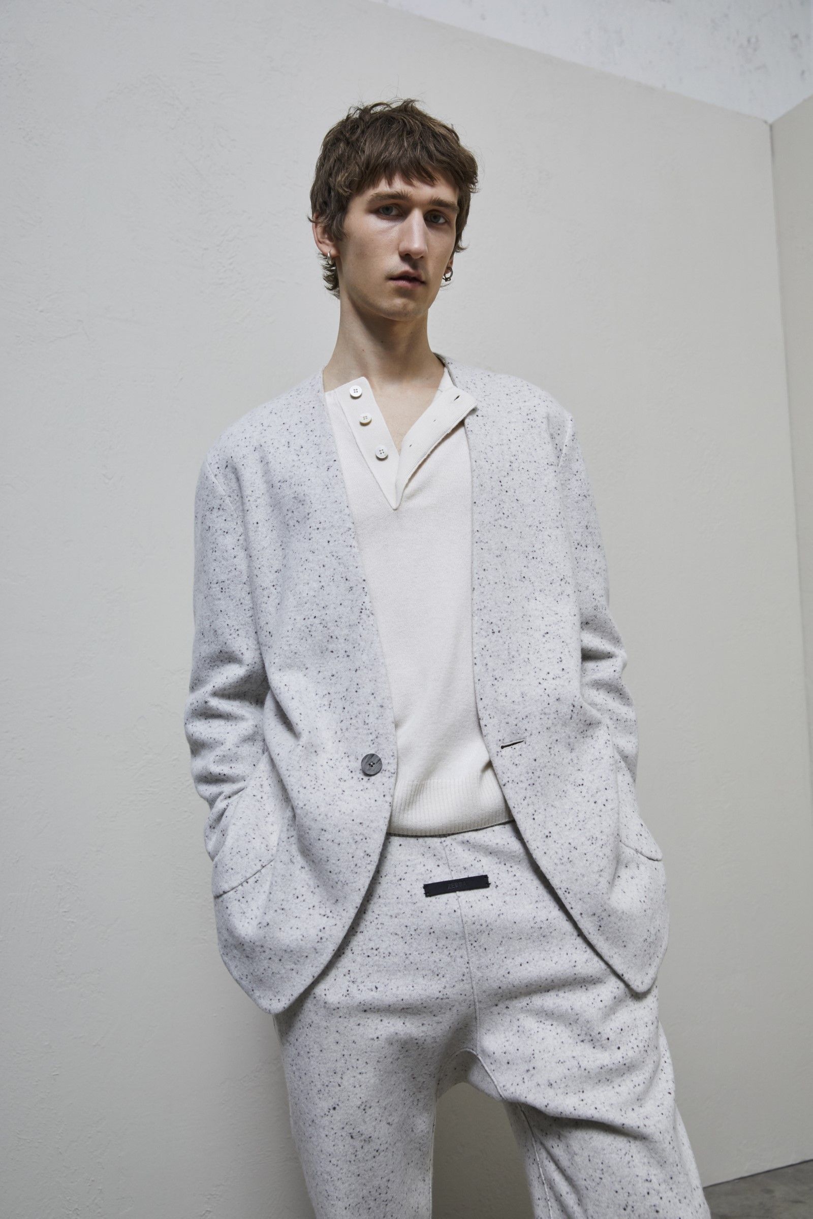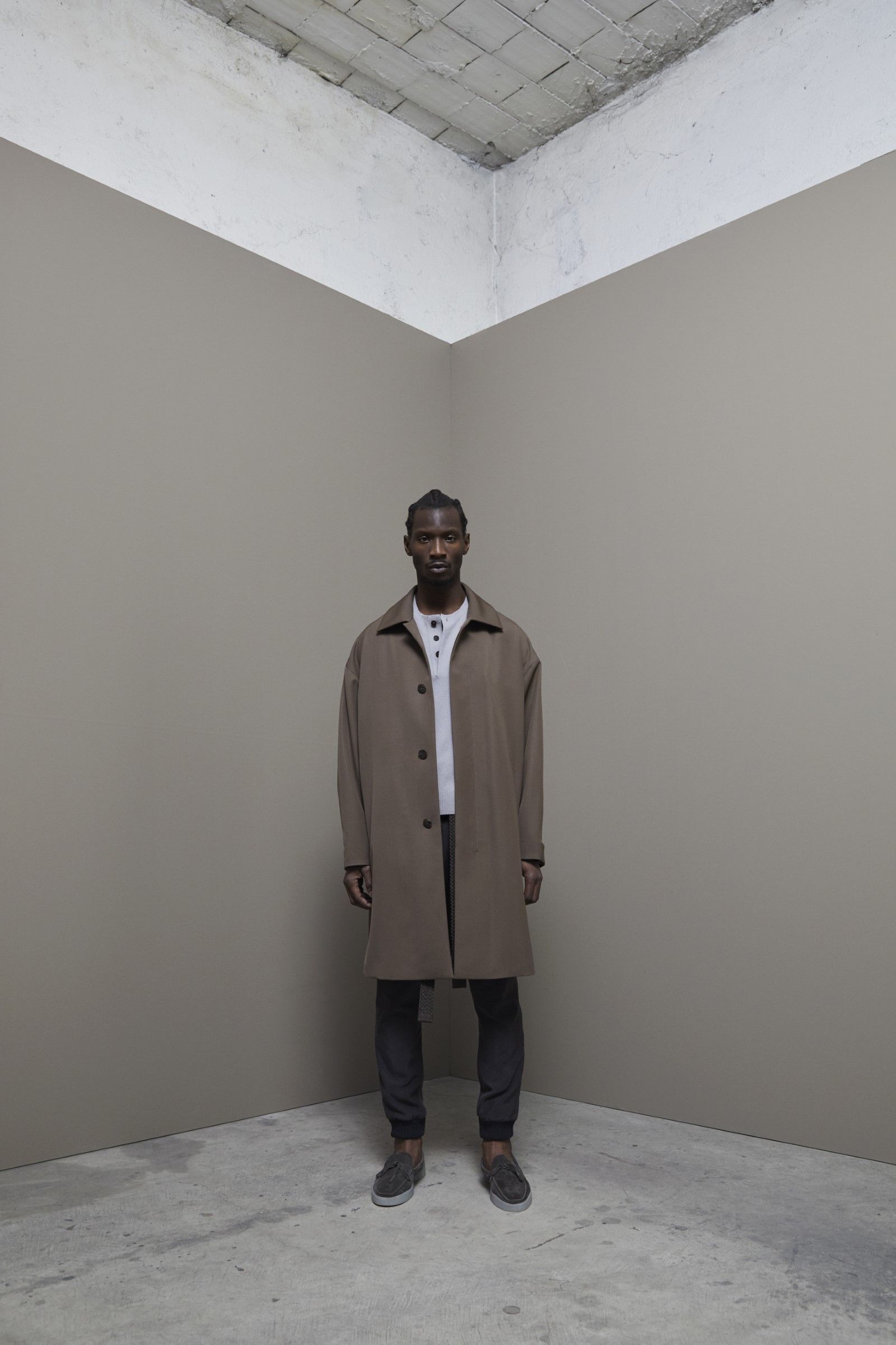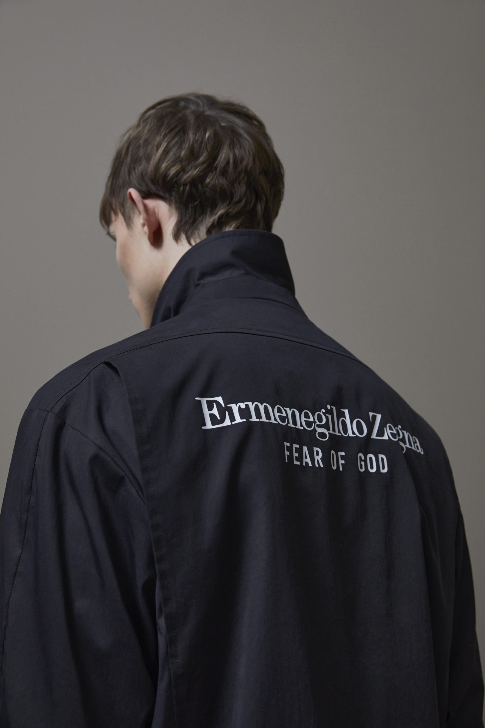 La collezione collaborativa è focalizzata su una palette di colori neutri. Tutti i principali elementi del guardaroba maschile, dal completo ai cappotti fino alle scarpe formali, sono stati riletti alla luce di un lusso privo di ogni rigidità. Le giacche dei completi si semplificano: perdono i revers e possiedono tasche riposizionate sui fianchi per silhouette più lineari. Il logo di Ermenegildo Zegna, scritto con il font di Fear of God, appare a rilievo sulla schiena di bomber e giacche mentre elementi di leisurewear si infiltrano nei codici sartoriali con pantaloni formali simili a joggers che possiedono una fascia cummerbund alla vita. Ecco il commento di Jerry Lorenzo in occasione della presentazione: