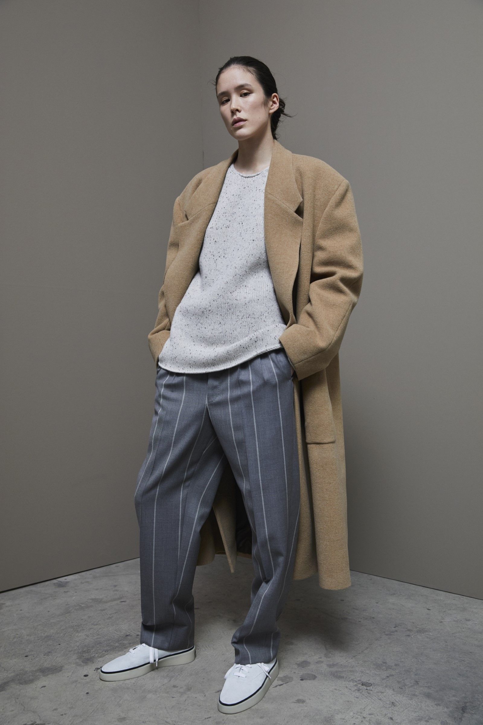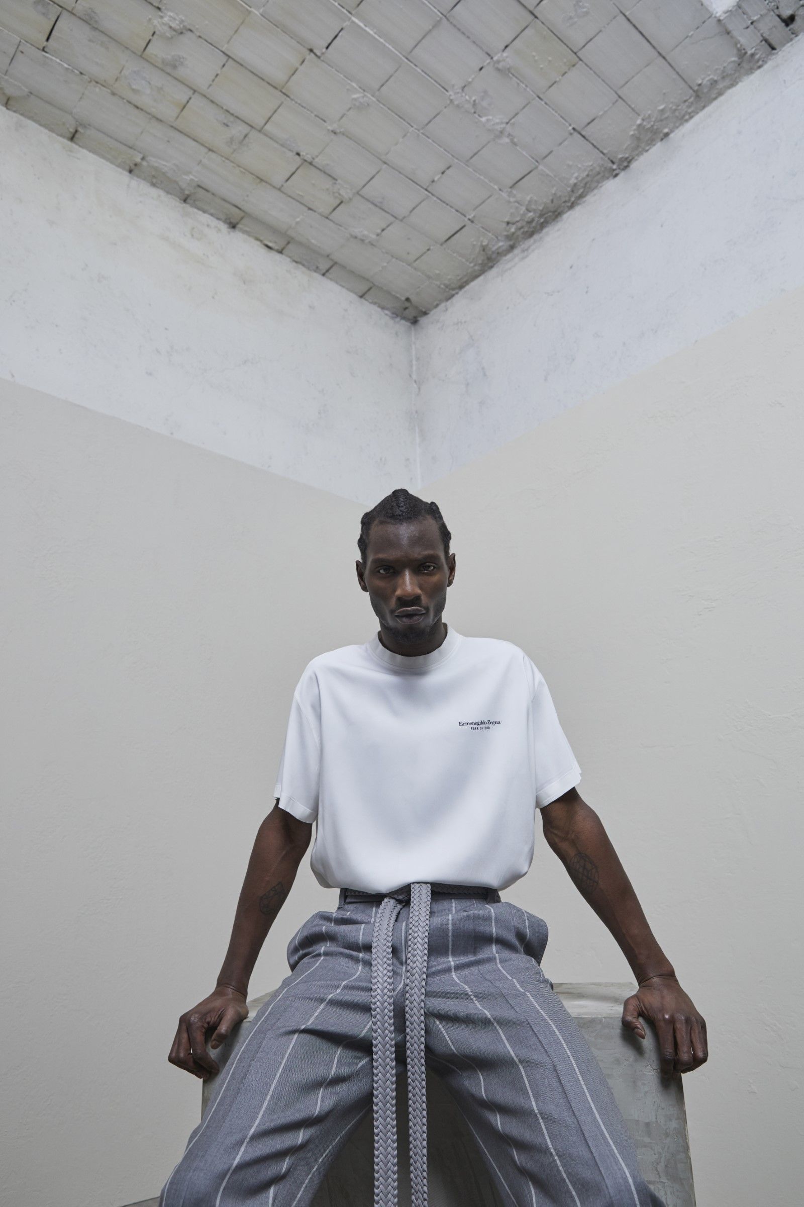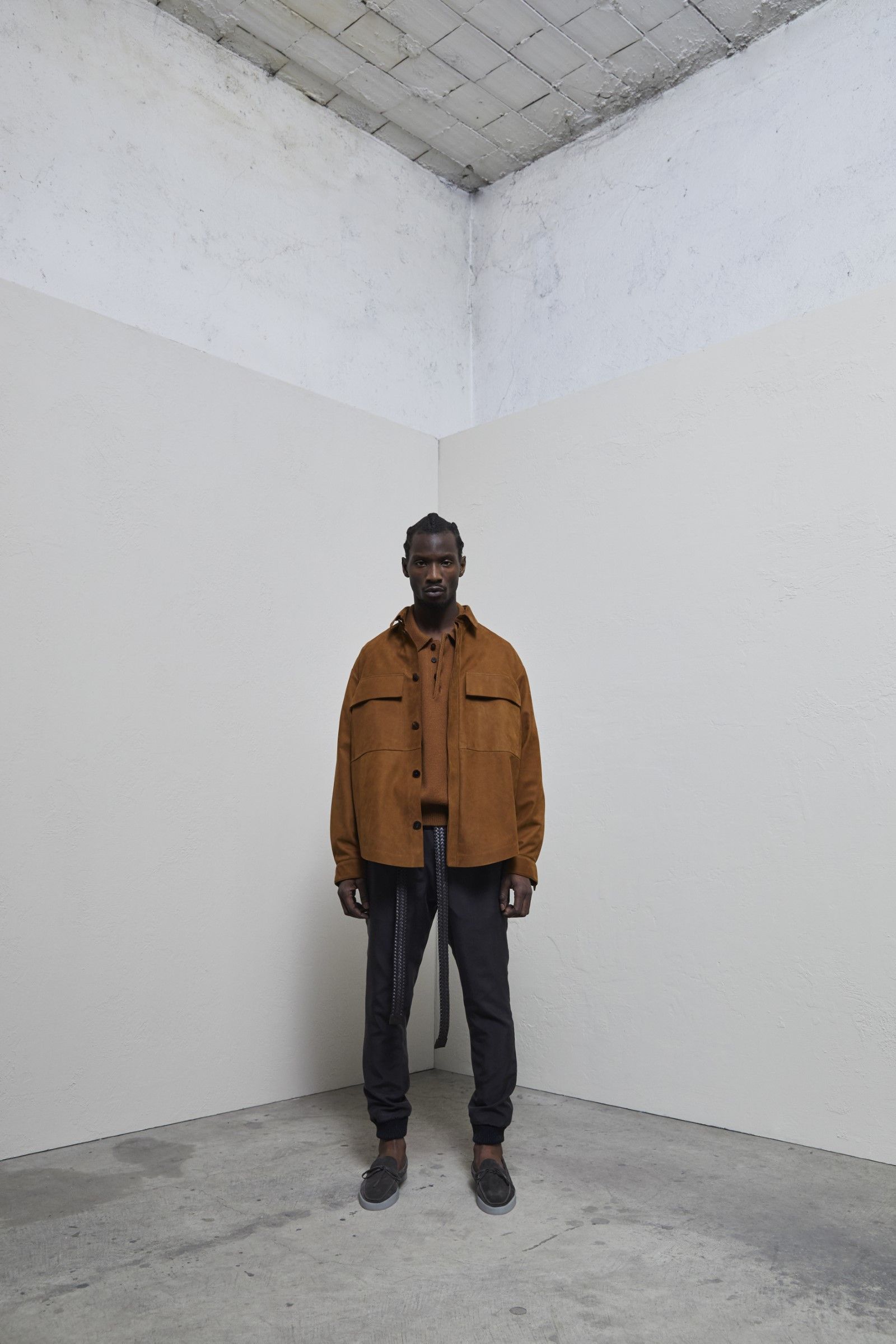 La collezione collaborativa è focalizzata su una palette di colori neutri. Tutti i principali elementi del guardaroba maschile, dal completo ai cappotti fino alle scarpe formali, sono stati riletti alla luce di un lusso privo di ogni rigidità. Le giacche dei completi si semplificano: perdono i revers e possiedono tasche riposizionate sui fianchi per silhouette più lineari. Il logo di Ermenegildo Zegna, scritto con il font di Fear of God, appare a rilievo sulla schiena di bomber e giacche mentre elementi di leisurewear si infiltrano nei codici sartoriali con pantaloni formali simili a joggers che possiedono una fascia cummerbund alla vita. Ecco il commento di Jerry Lorenzo in occasione della presentazione: