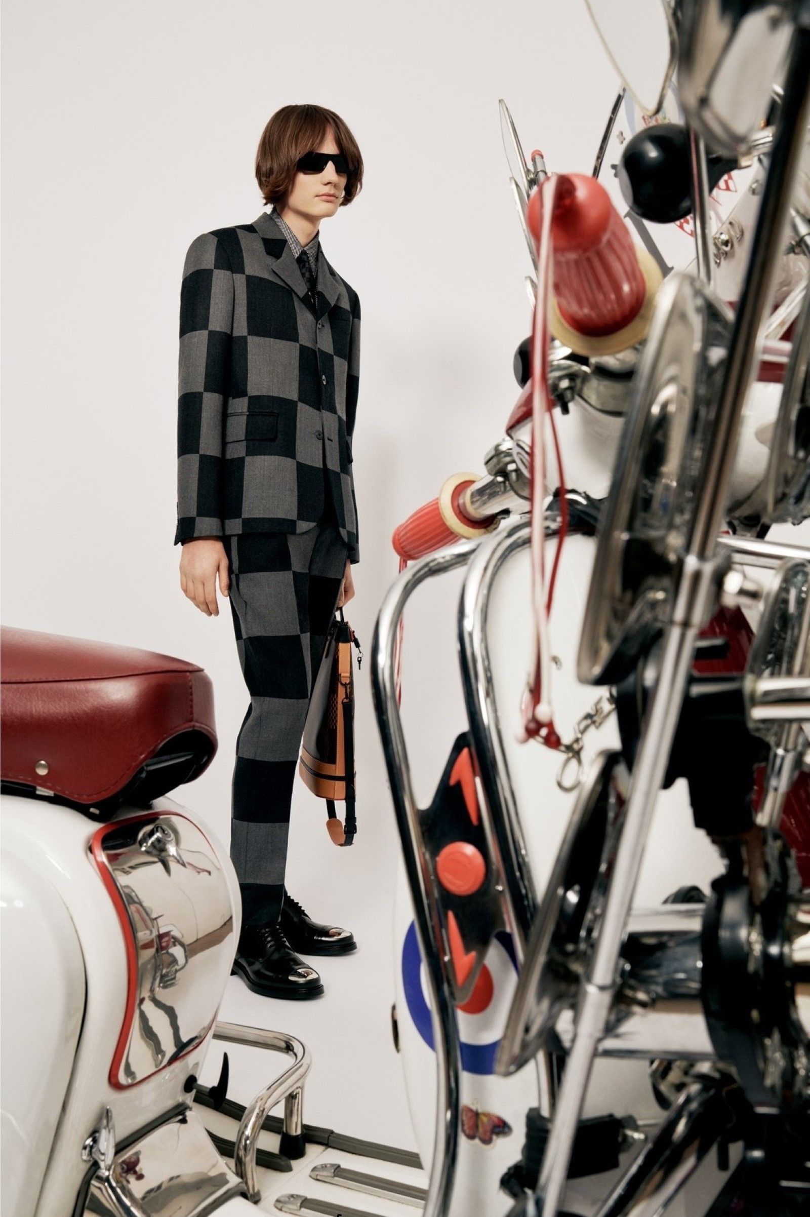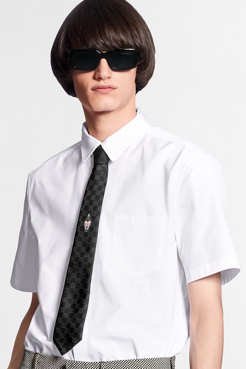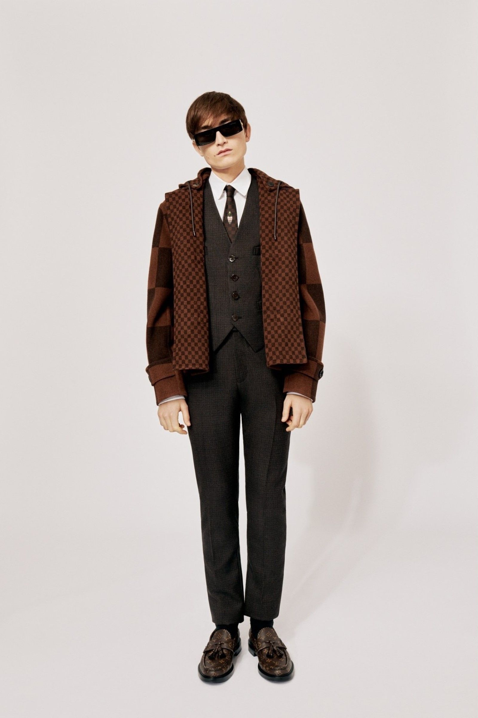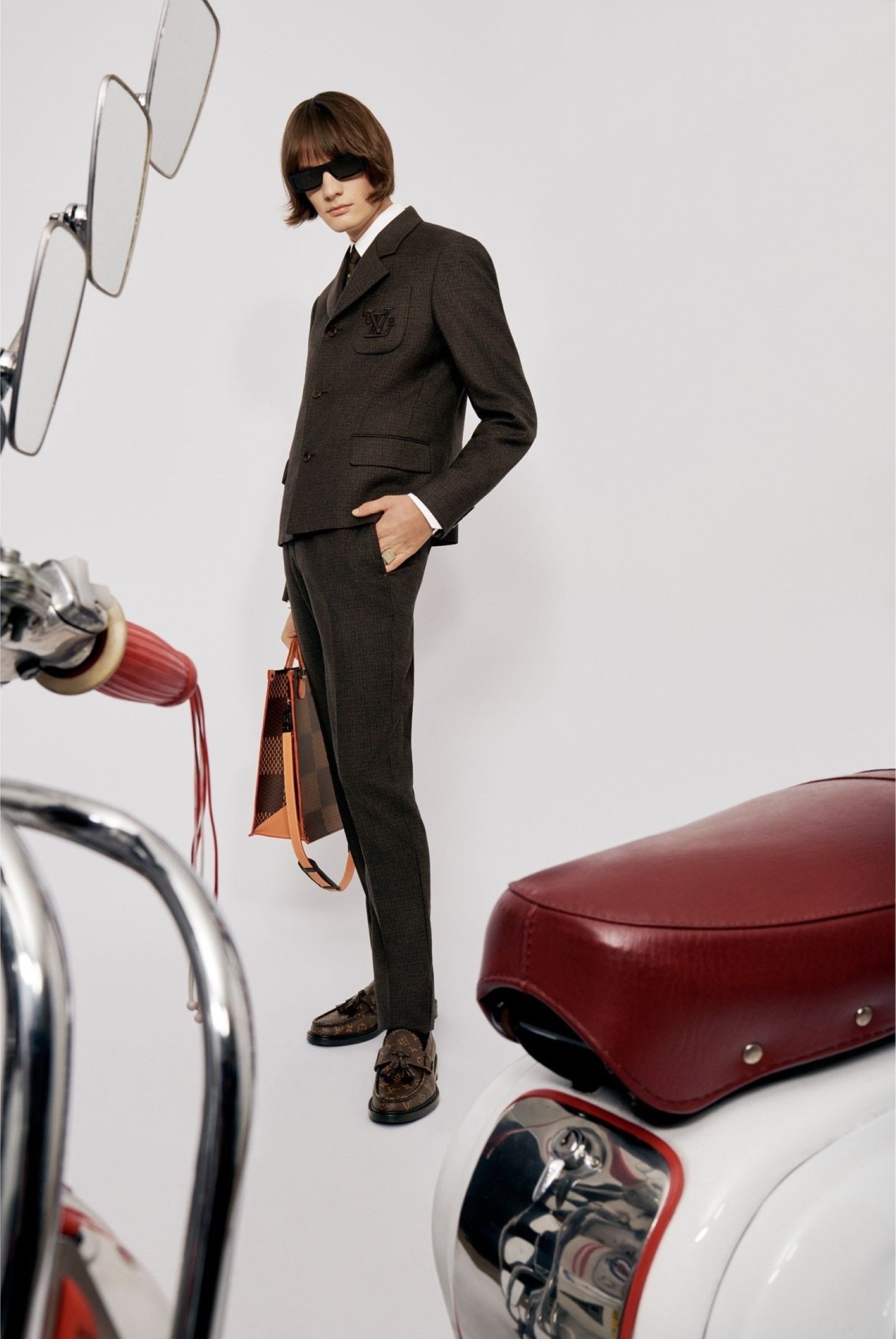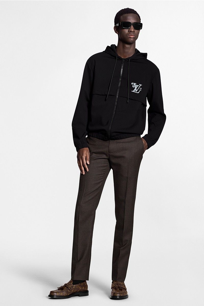 La collezione copre tutte le aree del menswear, dai completi sartoriali all’outerwear, dai jeans agli accessori fino alla pelletteria. I due protagonisti grafici sono il pattern a quadri, detto LV Damier Check, e l’effetto dripping. Specialmente negli item di pelletteria come borse e zaini i due pattern si mescolano, creando l’effetto del classico monogram Louis Vuitton che “cola” sulle sezioni a quadri. L’effetto “drip” rappresenta una fusione perfetta dei linguaggi dei rispettivi designer, Nigo lo aveva infatti introdotto per la prima volta nelle sue collezioni per Icecream. Alcuni degli item più vicini ai codici dello streetwear sono i completi in denim e un puffer jacket di nylon nero, mentre il resto della collezione appartiene a quel nuovo lusso sartoriale su cui Abloh ha lavorato sin dalla sua collezione Pre-Fall 2020 “Pivot” per Off-White™.