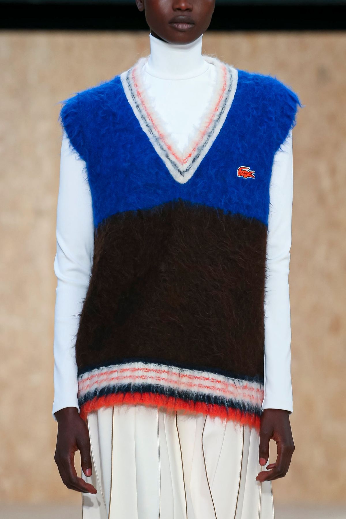 Le celebrità non sono state in silenzio. Tutto è (ri)cominciato a dicembre, quando Harry Styles ne ha sfoggiato uno di Lanvin in lana blu con una divertente fantasia di pecorelle, per poi riproporne un altro di Gucci a gennaio durante la sua performance con Lizzo. Ma non è stato l’unico: Tyler, The Creator ne è un amante sfegatato e ne ha fatto sfoggio in diverse occasioni, proponendolo anche come item del suo brand Golf Le Fleur, mentre Ryan Gosling ne ha scelto uno classico di Lacoste per il suo sbarco alla Mostra del Cinema di Venezia. Per quanto riguarda l’abbigliamento femminile, è stato uno degli indumenti preferiti di Zoë Kravitz nella sua ultima serie High Fidelity, mentre Bella Hadid e Victoria Beckham ne hanno dimostrato la versatilità abbinandolo sia a uno stile più street che a uno più formale. A consacrarne il ritorno, ci hanno pensato le passerelle della settimana della moda: presentato in diversi modelli (in lana o in cotone, con scollo tondo e con scollo a V, con bottoni o liscio), il gilet è stato protagonista a Milano della collezione Fall Winter 2020 di Gucci, Fendi e Prada, ma anche a Parigi degli show di Dior Men, Louis Vuitton e (ovviamente) Lacoste.