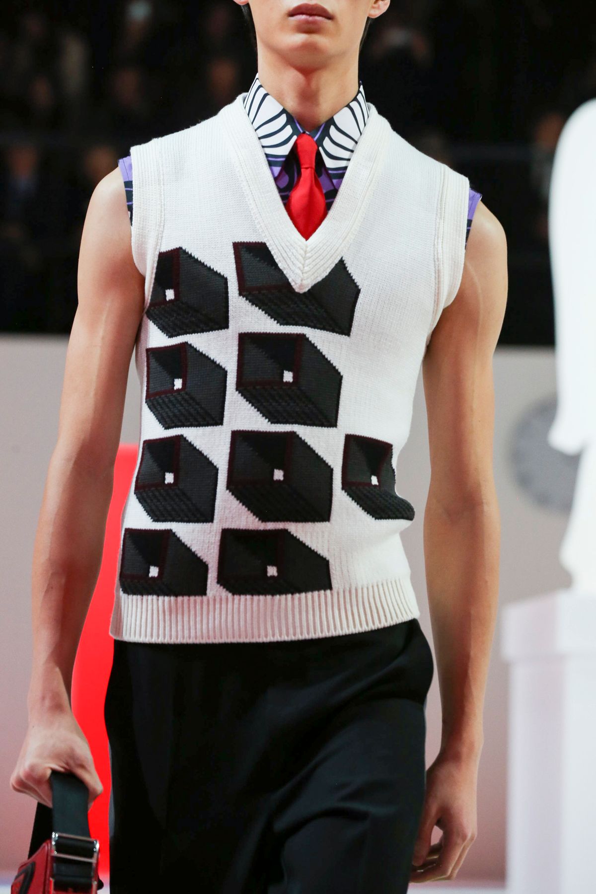 Per quanto a molti non sia ancora chiaro a cosa serva (sembra di sentire un’eco lontana che dice più o meno: “Non è un gilet, non è un maglione: sa soltanto quello che non è”), alla sua origine c’è stata proprio un’esigenza funzionale. Nata per il guardaroba maschile come alternativa più casual della giacca, la sweater-vest è stata un must-have del Ventesimo secolo. La sua presenza è accertata fin dal 1907, quando fu indossata sul campo da gioco da una squadra di football in Michigan. Negli anni successivi è diventata un item immancabile nel guardaroba del perfetto gentleman, fino a raggiungere la sua massima popolarità in UK negli anni Settanta. Nonostante tutto, però, il gilet in lana non è mai diventato una vera icona culturale. Al massimo, oggi è associata agli studenti delle università private del gruppo Ivy League: una generazione di figli di papà, appunto, che dopo le lezioni si ritrovano al club privato per giocare a golf (di cui la sweater vest costituisce la quintessenza), con la triste conseguenza di rappresentare lo status symbol di chi si può permettere di giocare a golf. In poche parole, ne è stata fatta questione economica.