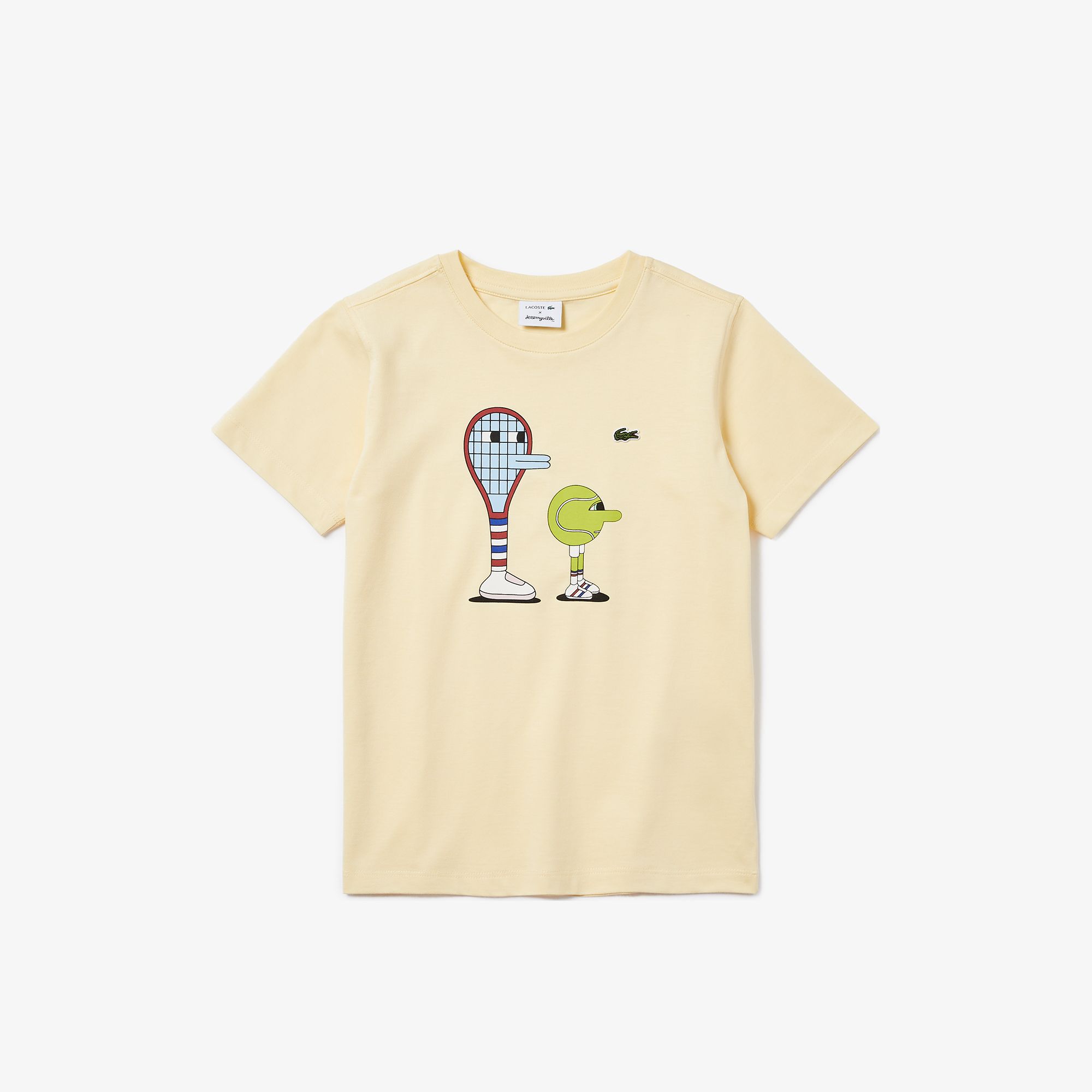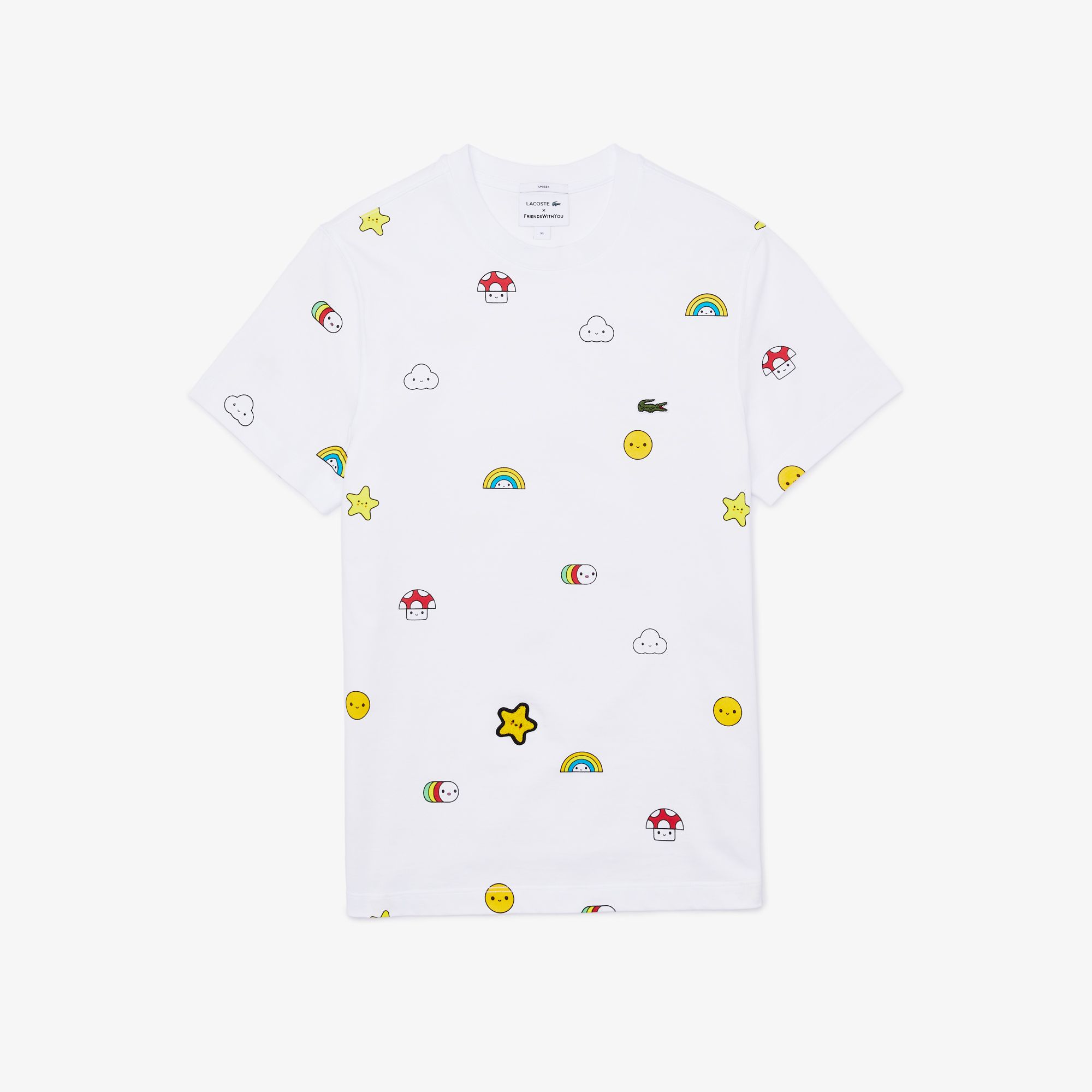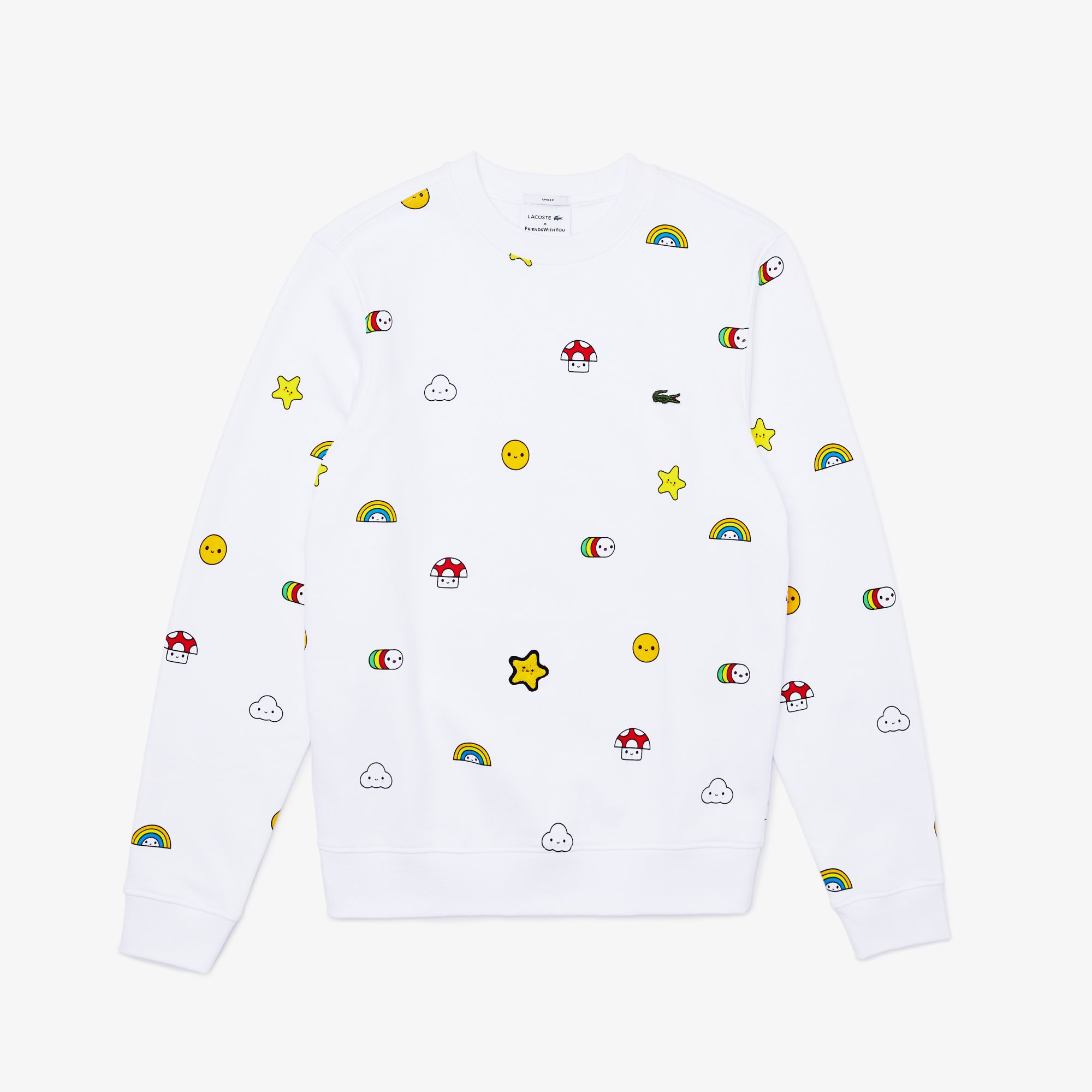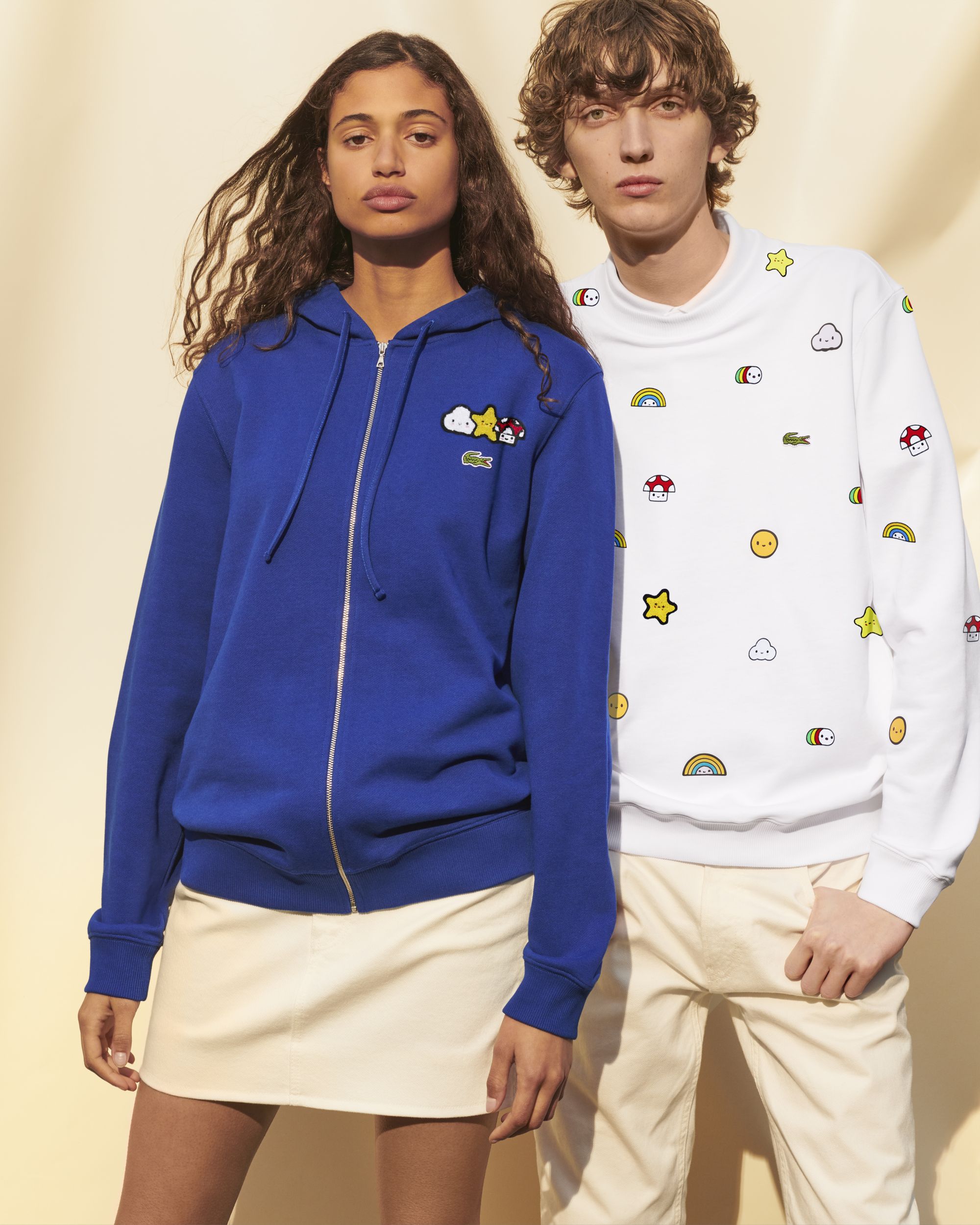 FriendsWithYou è un progetto collaborativo formato dagli artisti Samuel Borkson e Arturo Sandoval III con sede a Los Angeles, noto in tutto il mondo per alcune installazioni immersive e soprattutto per le sculture gonfiabili. Il duo di artisti per Lacoste ha scelto di mandare il coccodrillo in orbita in un mondo colorato e onirico, scegliendo un design minimal e ingannevolmente naïf, in cui le radici sportive di Lacoste si vestono di un inatteso stile kawaii.