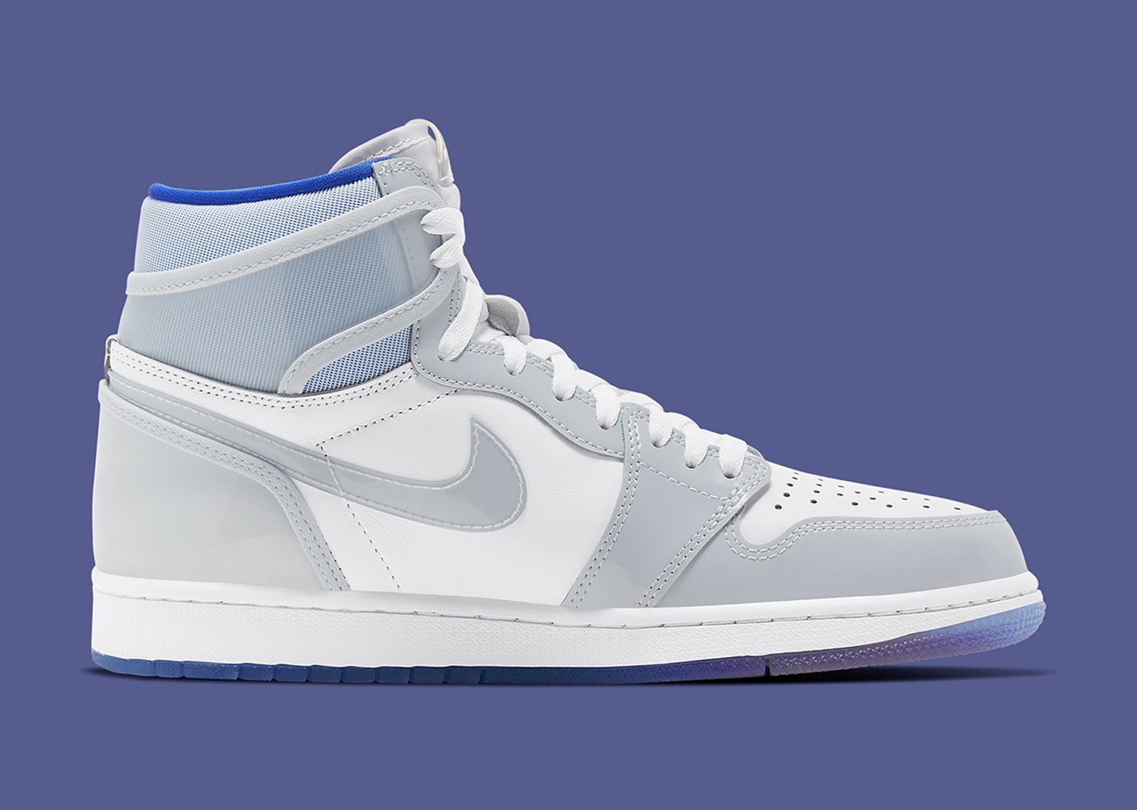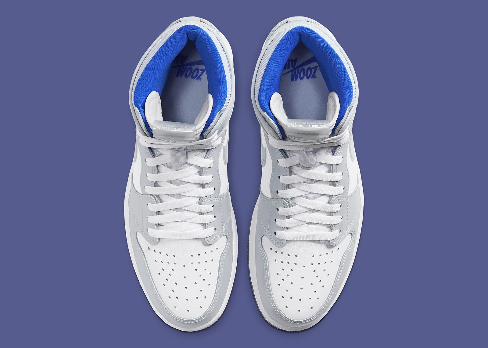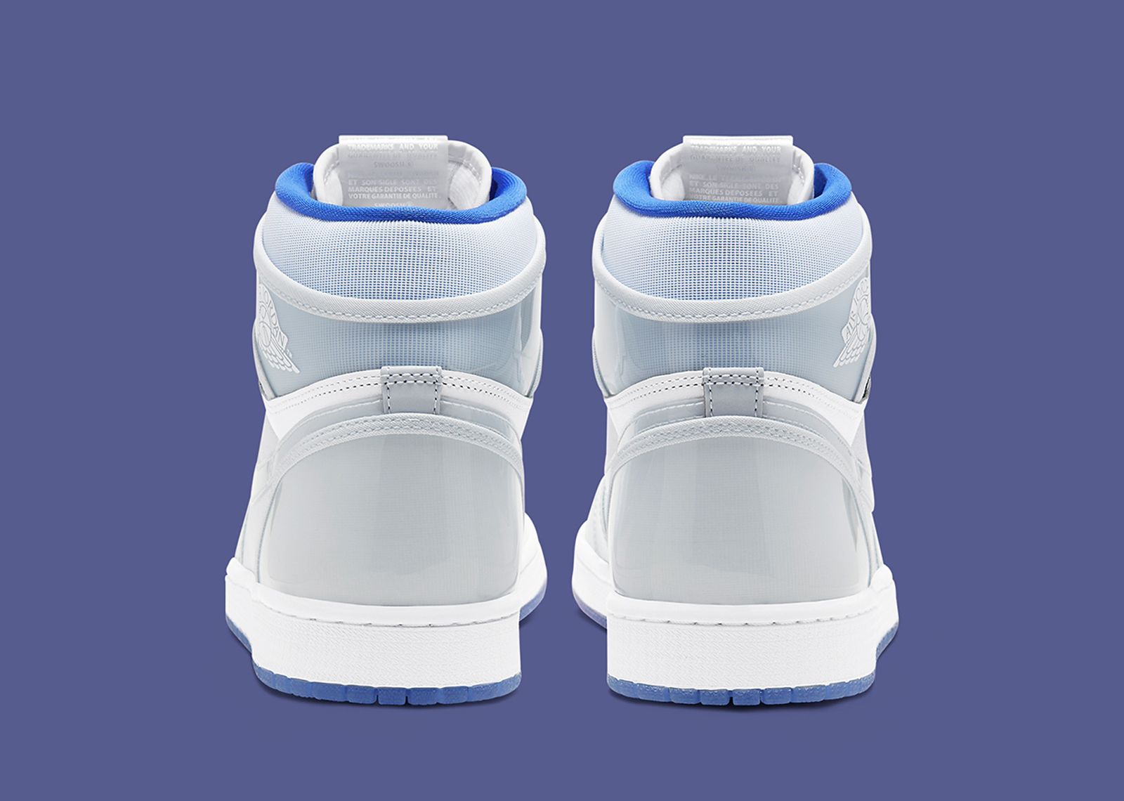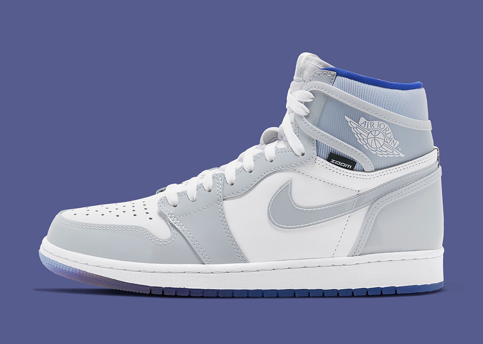 Le Nike Air Jordan 1 Zoom "Racer Blue" si presentano dallo schema cromatico delicato, dove i toni neutri avvolgono la tomaia con colori tendenti al bianco, grigio platino e celeste. Le Jordan 1 Zoom presentano una costruzione particolare, i pannelli sfruttano diverse tipologie di materiale, passando dalla pelle premium a dettagli verniciati, a particolari in mesh e a porzioni in morbida plastica trasparente come le alette laterali. La tecnologia delle Air Jordan 1 Zoom però è nascosta nel blocco suola, tant'è che i cuscinetti Zoom offrono un'ammortizzazione confortevole e piacevole durante la camminata.