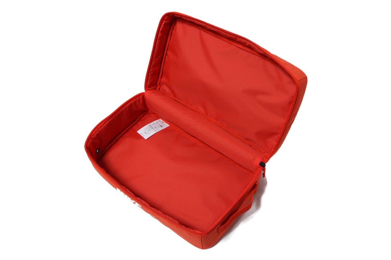 La borsa è una replica fedele del classico shoebox Nike, ma realizzata in poliestere, dotata di fori per la ventilazione interna e di una maniglia per un facile trasporto. Un dettaglio dedicato a tutti gli amanti delle sneaker è il fondo della scatola, che presenta le stesse scritte e branding di Nike che avrebbe un vero shoebox con addirittura tutti i loghi Nike e l’indirizzo degli headquarters europei.