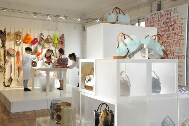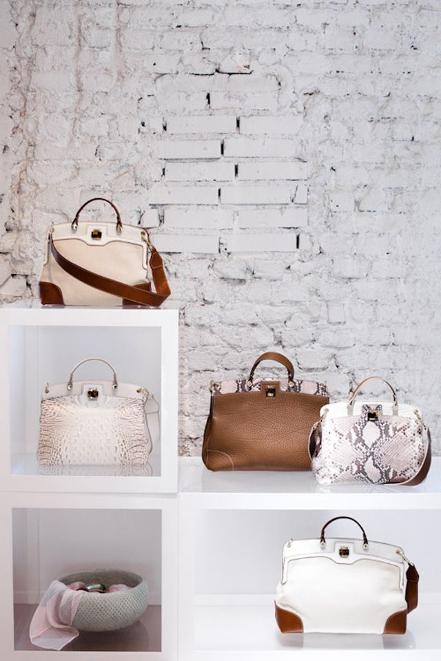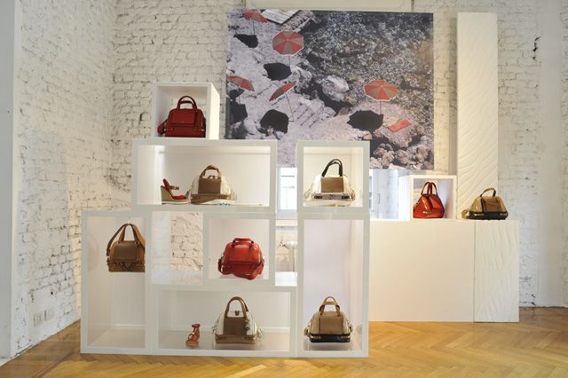 Da lì alla limited edition il passo è stato breve ed è nato così il progetto ?Candy-brissima?: materiali inediti, vezzosi accessori di scarto, dettagli pregiati ? ricordiamo la versione super trendy in gomma e vitello stampa pitone ? nelle mani operose dell?artista bolognese Sissi prendono vita, ridisegnandosi e trasformandosi in pezzi d?arte con l?installazione -performance ?Changeable - Identity?. Qui, Sissi mette in scena una sorta di iper creativa catena di montaggio: quattro persone assemblano fra loro diversi elementi da lei precedentemente progettati e classificati con nomi fantastici. Ne derivano pezzi imprevedibili e unici, d?artista, che riflettono e inglobano l?inconfondibile stile italiano, la passione per l?arte, lo stupore e l?ironia come fonti irrinunciabili d?ispirazione. Tutti elementi che si rintracciano alla base della stessa collezione primavera-estate 2012: un diario di viaggio, ricco di appunti visivi e tattili sulla tradizione mediterranea e italiana. Il rosso, il giallo, le tonalità calde della terra e del miele, il nero e bianco dei sassi e il blu del cielo, le sfumature oro e argento si uniscono in un mix n? match con materiali particolari come la pelle di toro, il cuoio effetto vintage, la tela grezza sale e pepe, il neoprene, creano inedite combinazioni di stile.