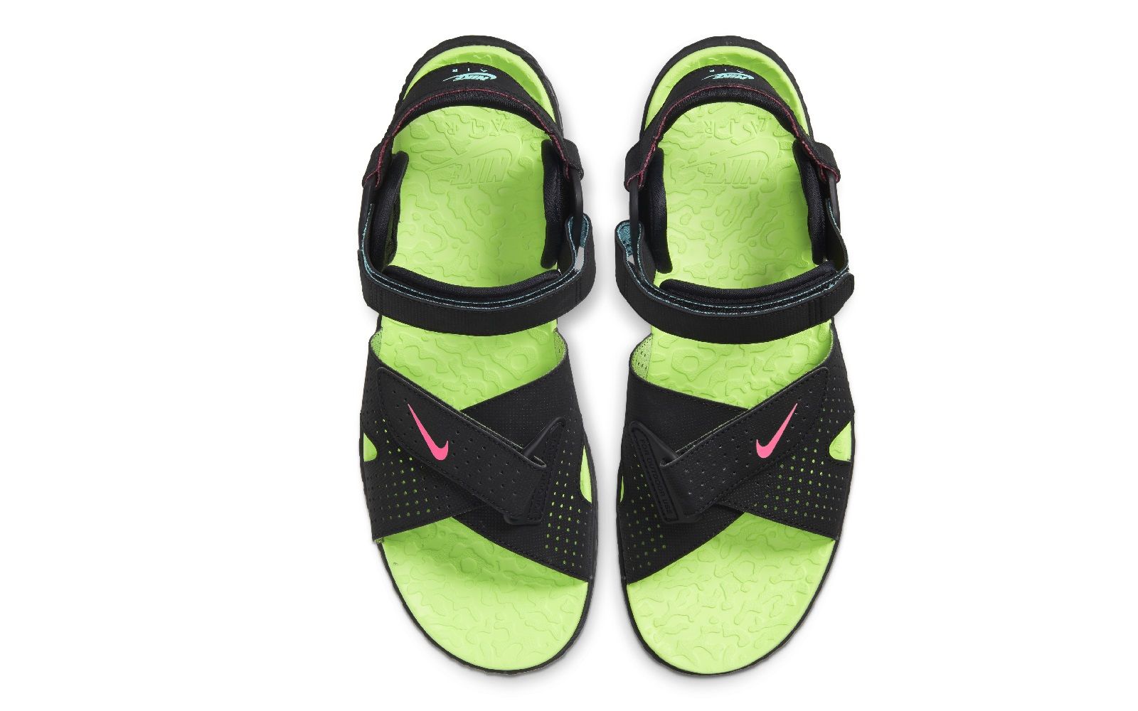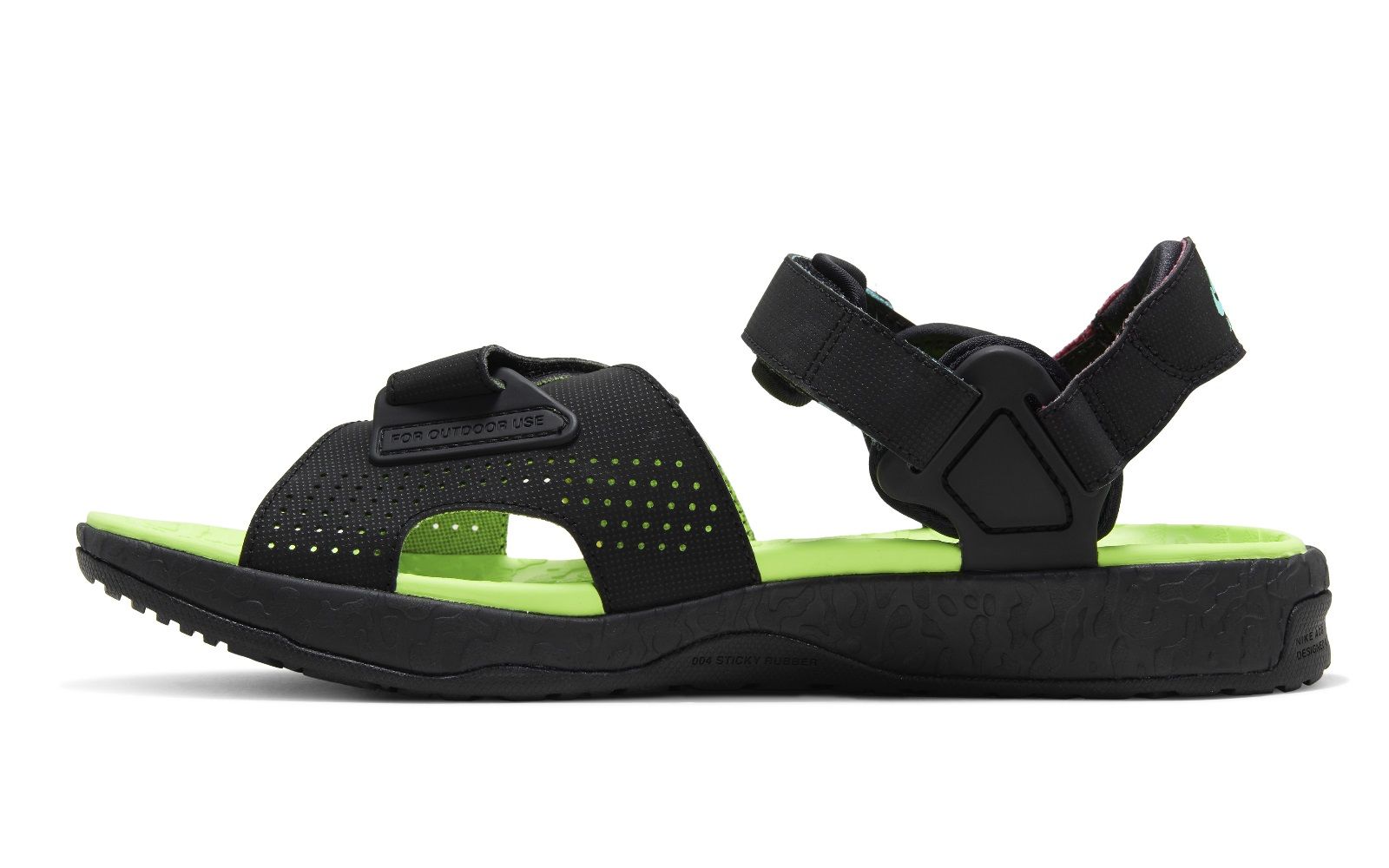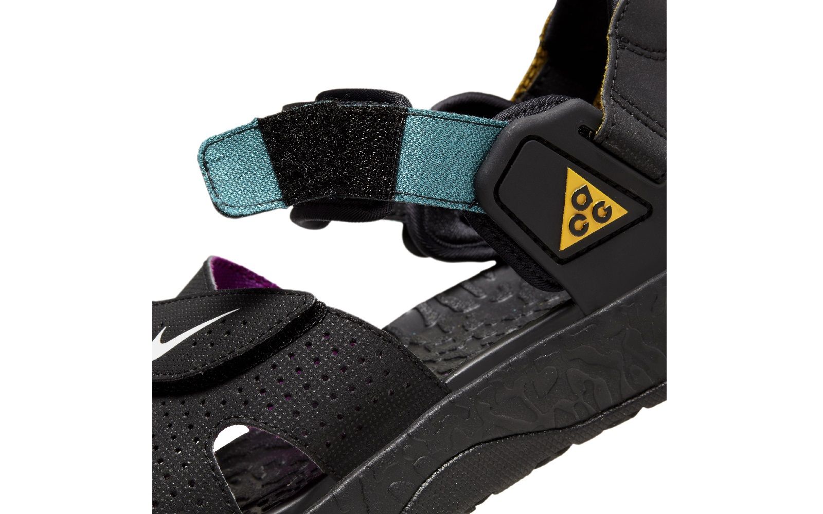 Anche la palette riprende i b tipici della linea ACG anni ’90. I sandali saranno realizzati in nero triplo, blu su nero, verde lime su nero con accenti rosa e in versione retrò con una base nera e dettagli in turchese, viola, giallo e bianco.