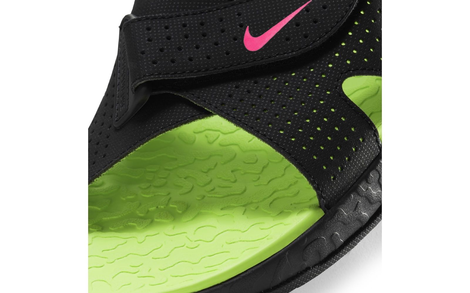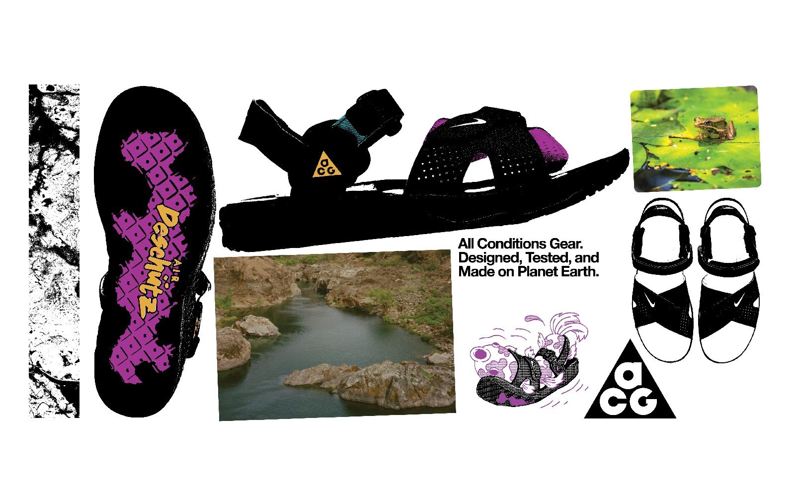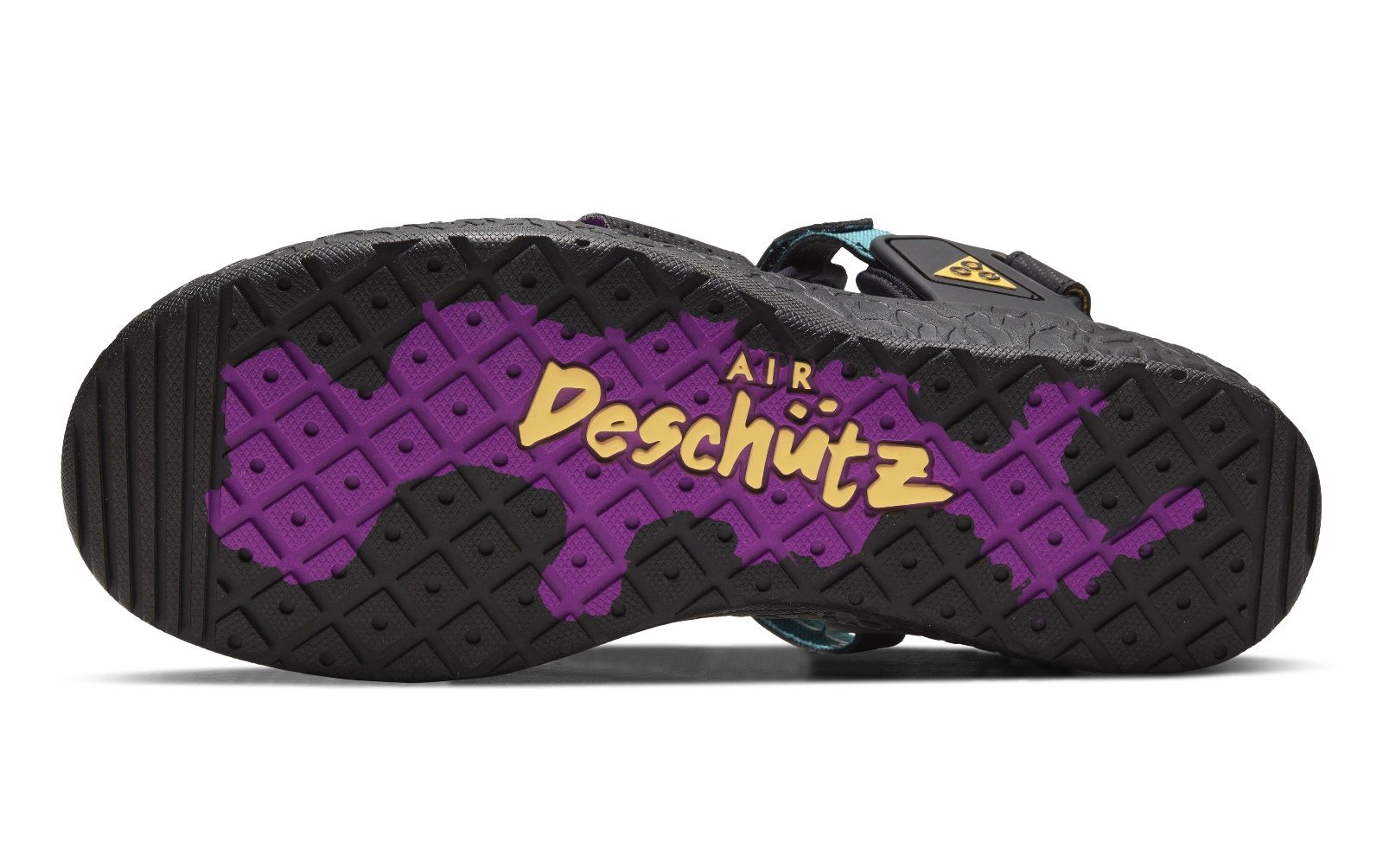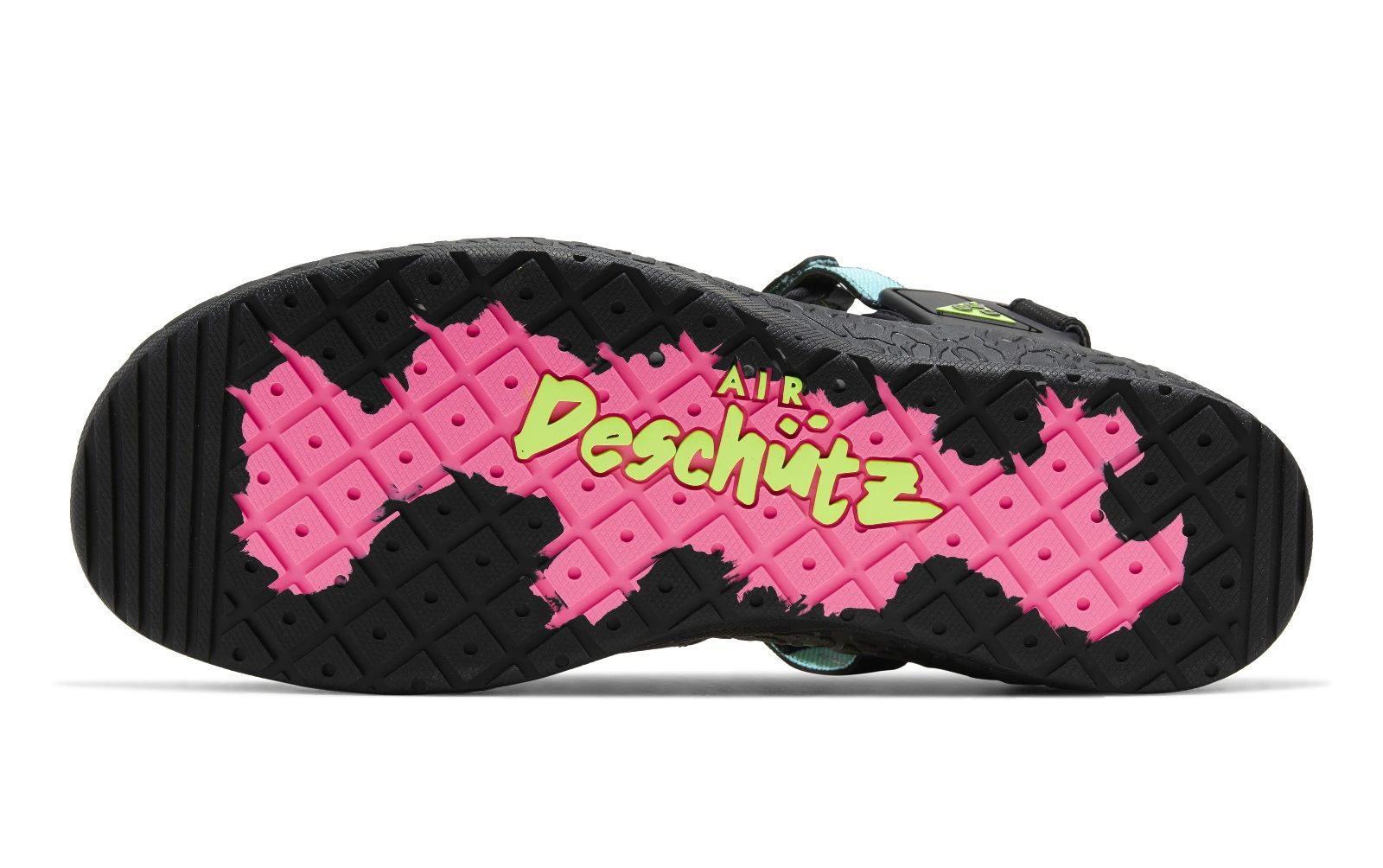 Ora, giusto in tempo per la stagione calda, Nike ripropone l’Air Deschutz nella sua versione OG. Il sandalo è caratterizzato da un motivo ondulato che racchiude l'intero plantare, oltre che da una parte in plastica alla caviglia che incorpora il simbolo di ACG. Sulle cinghie incrociate del piede troviamo il logo Nike mini-swoosh, mentre sul cinturino posteriore la scritta "Nike Air". La parte inferiore della suola richiama i colori della parte superiore ed è completata dalle parole "Air Deschutz".
