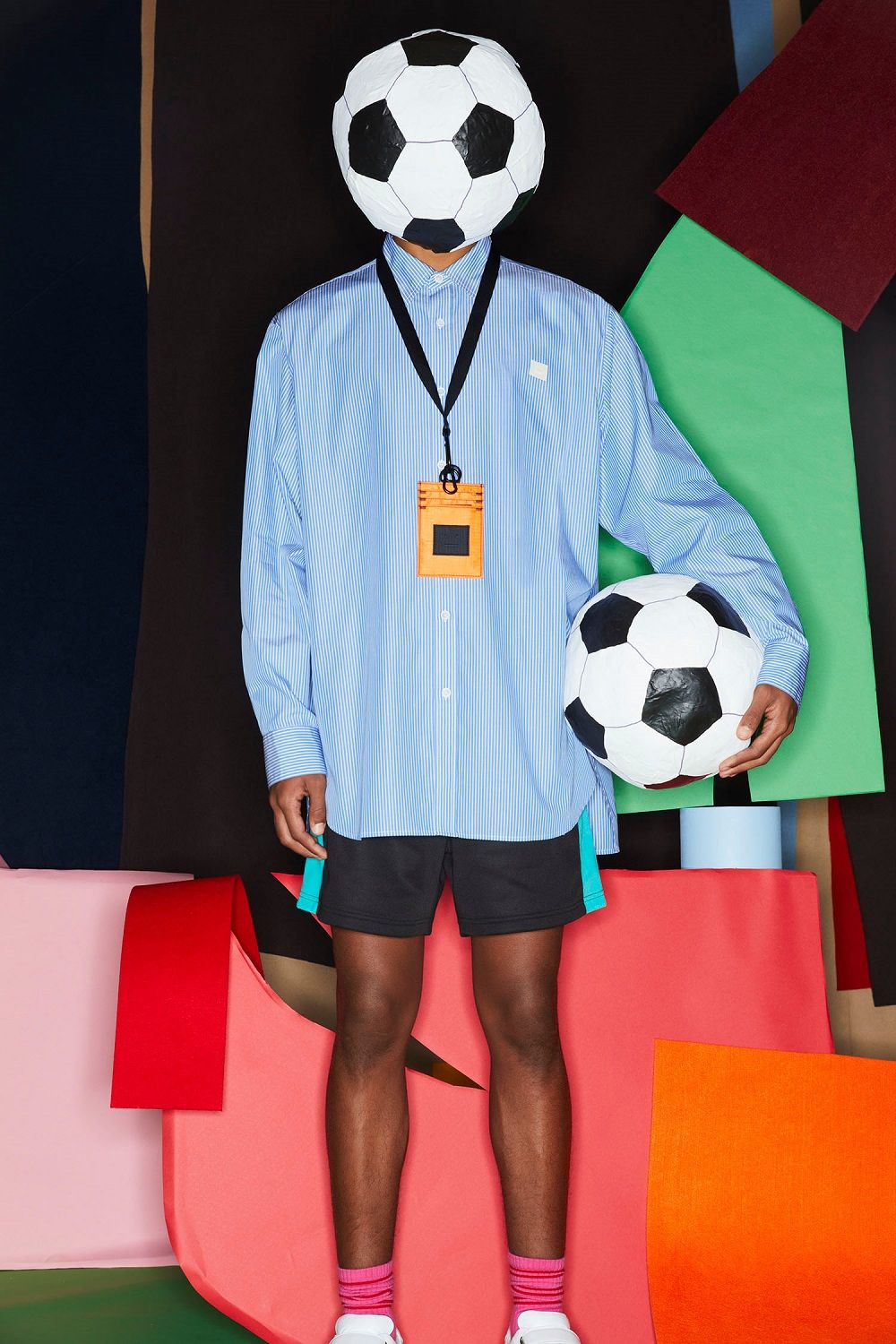 Blu, rosa, giada, arancio, giallo, verde e marrone si aggiungono ai classici bianco e nero per regalare un twist solare anche alle giornate più buie della stagione fredda. Ogni sfumatura brilla su t-shirt, felpe, cardigan oversize, pullover, camicie, tute in velluto, coach jacket, poncho antipioggia, ma anche sugli accessori che completano la proposta, dai bucket hat alla tote bag oversize, dal portachiavi al portacarte dotato di cordino e ricarica USB. Le sneaker Steffey e Perey si evolvono con una suola bianca ottica, blocchi di colore fresco, un cordoncino jumbo e un nuovo motivo Face, il caratteristico emoticon che, secondo Jonny Johansson, direttore creativo di Acne Studios, descrive il mood di un normale cittadino svedese: non troppo felice, non troppo triste, ma a metà strada ("Lagom" in svedese).