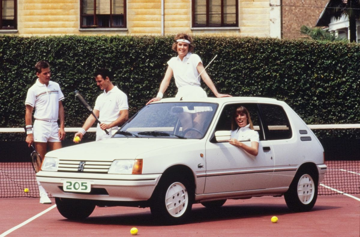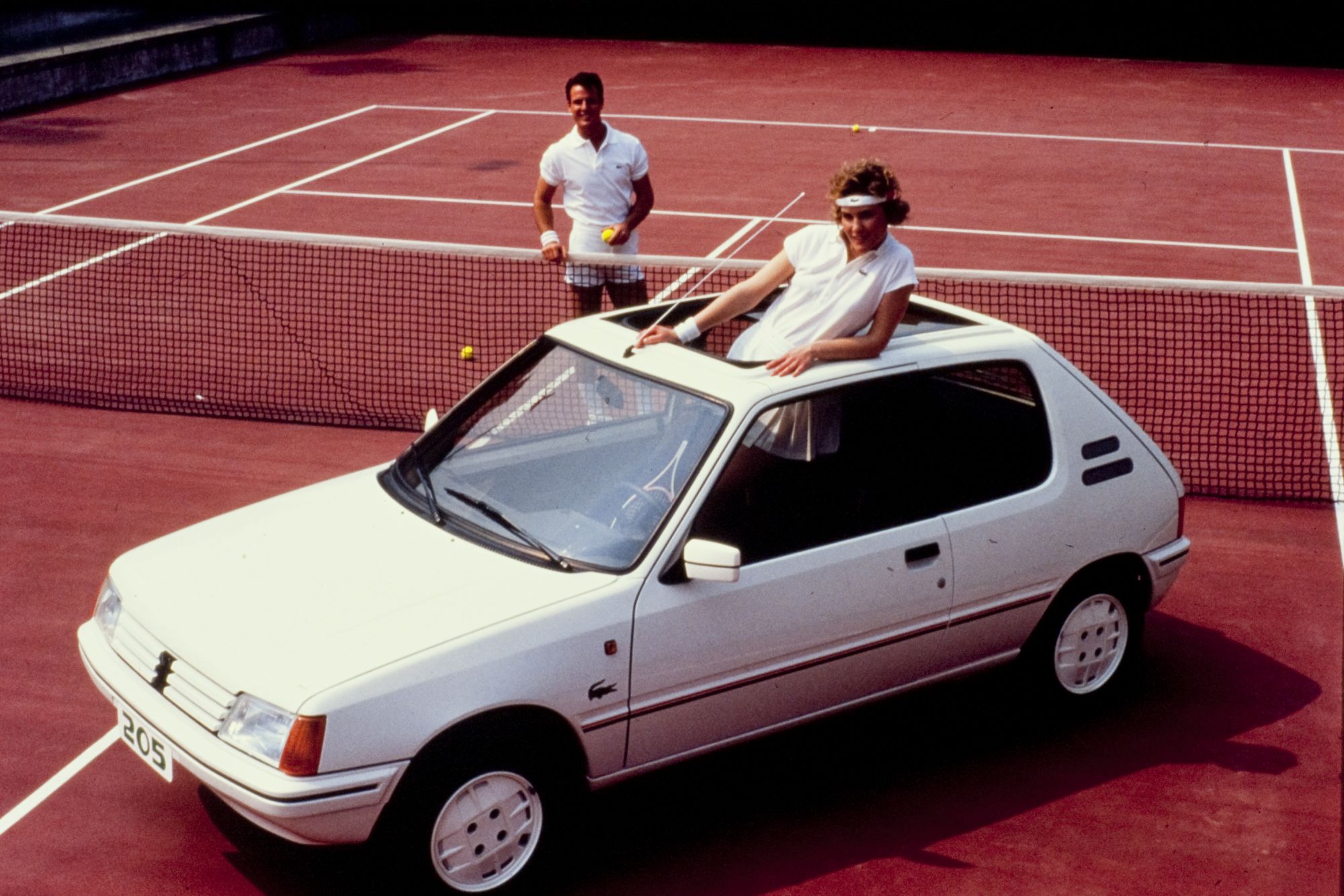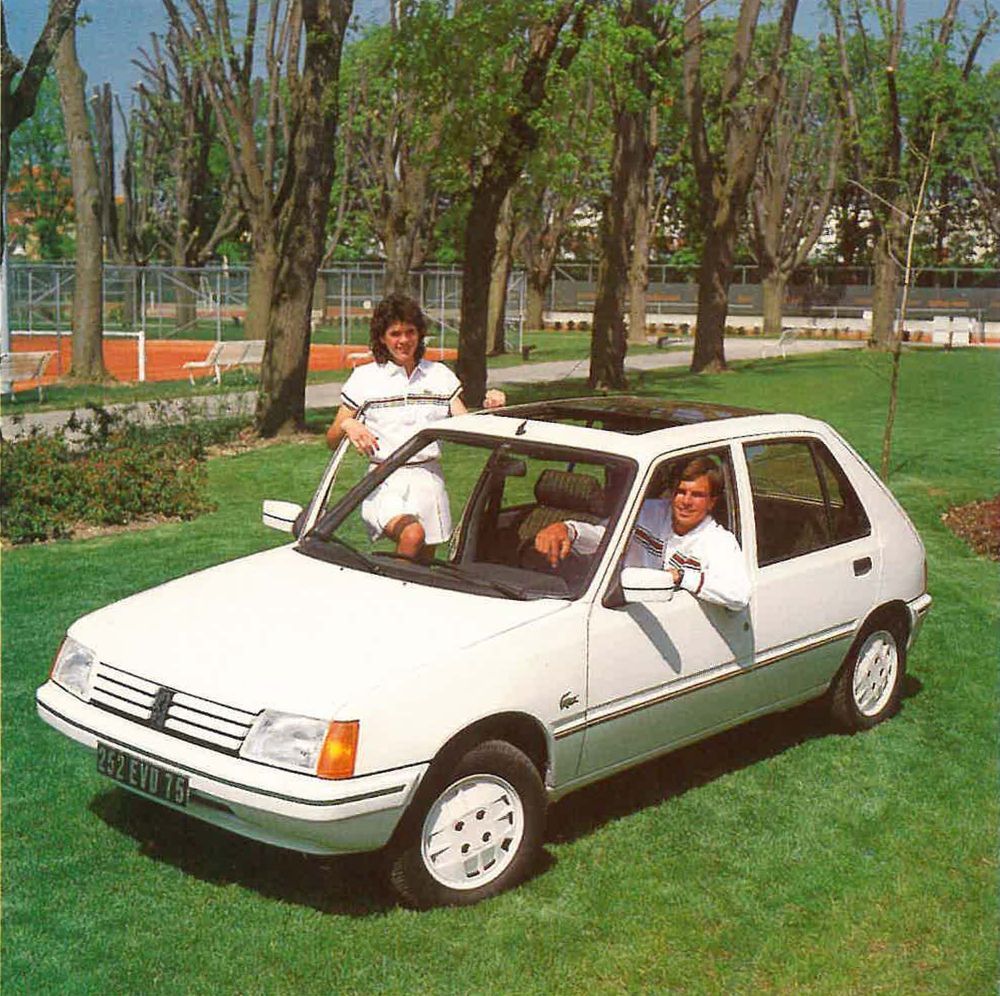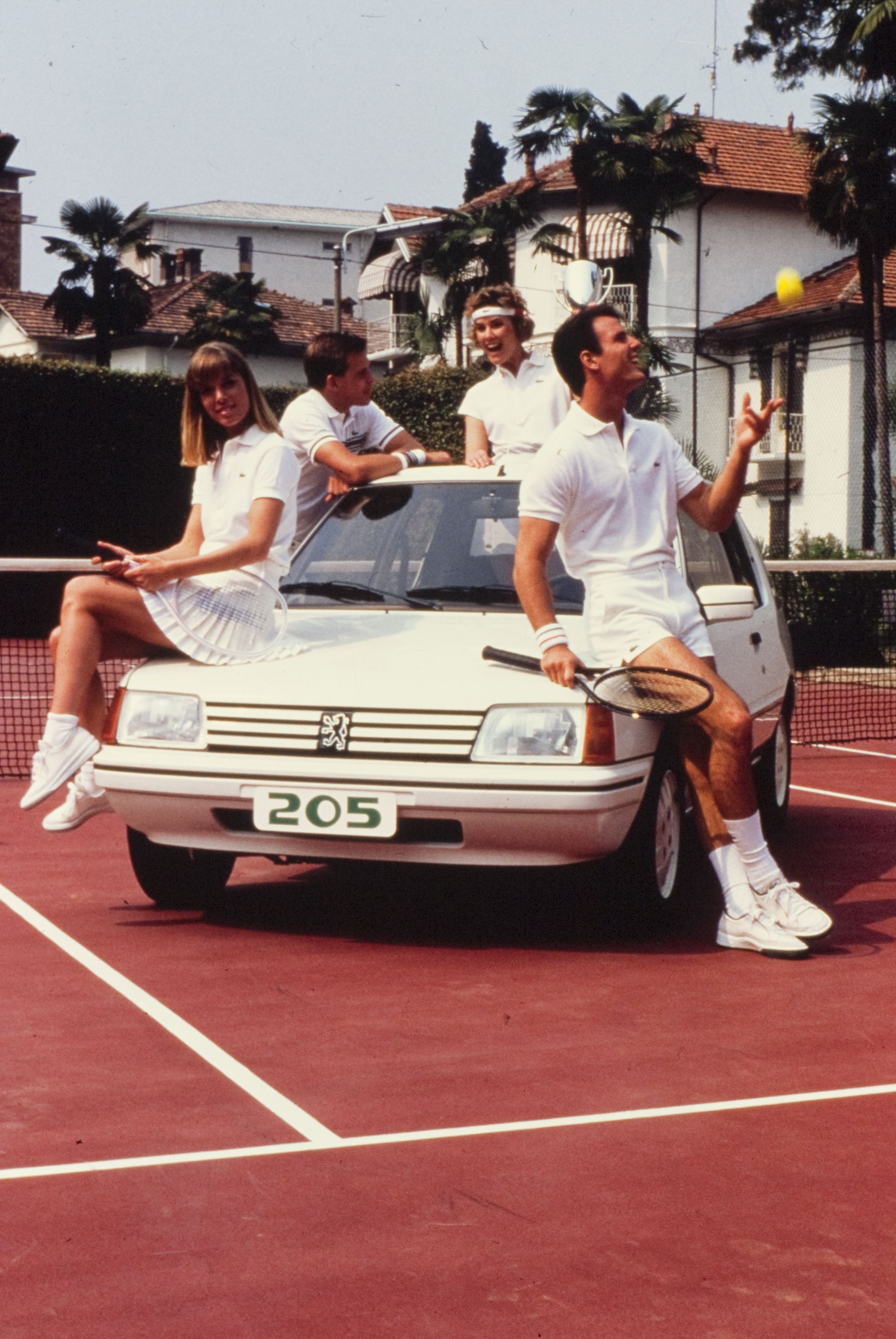 Il legame fra Peugeot ed il mondo del tennis risale al 1984 quando sponsorizzò per la prima volta il Roland Garros, uno dei più importanti tornei di tennis a livello internazionale. Una sponsorizzazione importante che successivamente influì sulla gamma Peugeot. La 205 Lacoste venne quindi proposta con un allestimento speciale caratterizzato da diversi riferimenti al mondo del tennis, come gli adesivi posti nei montanti posteriori che rimandavano alla rete del campo di tennis, mentre il bianco pastello della carrozzeria e dei copriruota con i listelli verde scuro, insieme ai tre coccodrilli, ricordano le famose “chemise” Lacoste. Il sodalizio tra il Coccodrillo e il Leone era celebrato al centro del volante, dove i due loghi si incontrano.