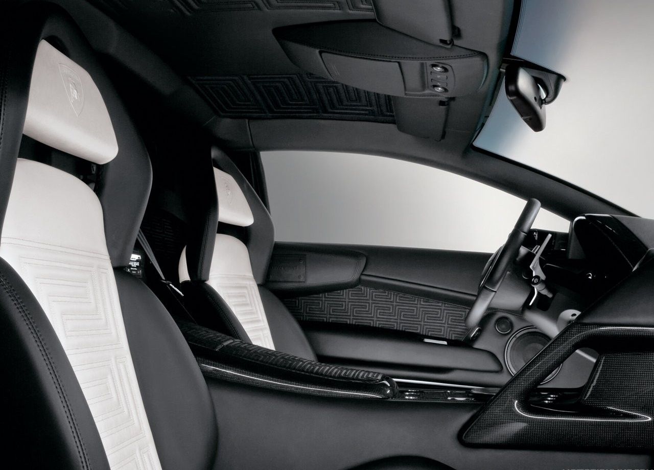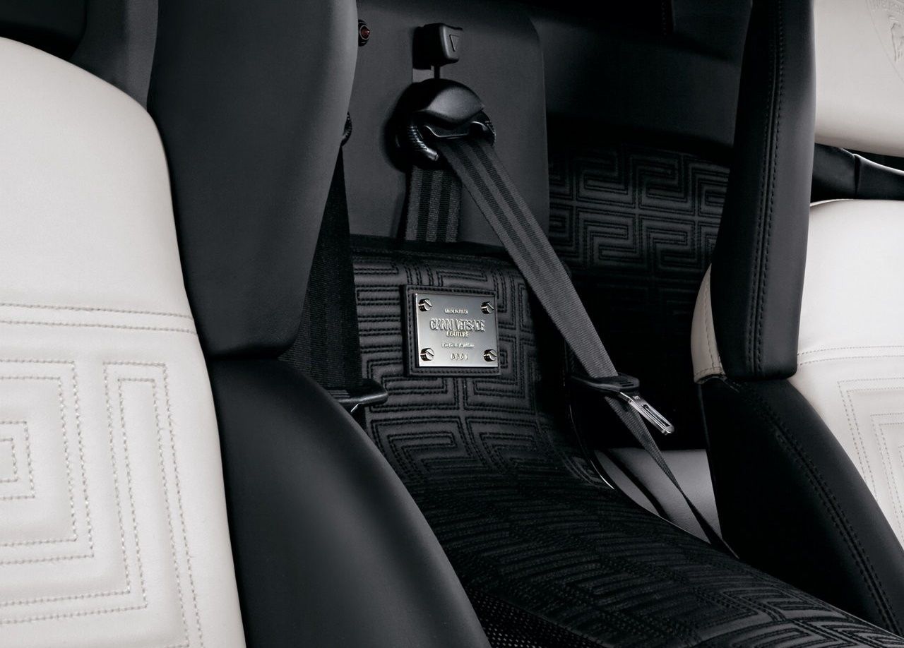 I sedili, la parte inferiore del cruscotto, le portiere, il tettuccio e la console centrale sono rivestiti in raffinata nappa "pieno fiore" lavorata con il tipico motivo "a greca" di Versace. Disponibile in due colorazioni, Isis White e Aldebaran Black, all'esterno si distingue per i cerchi neri "Hermera" appositamente disegnati con finiture specifiche in carbonio e il cofano motore con nervature in vetro trasparente.