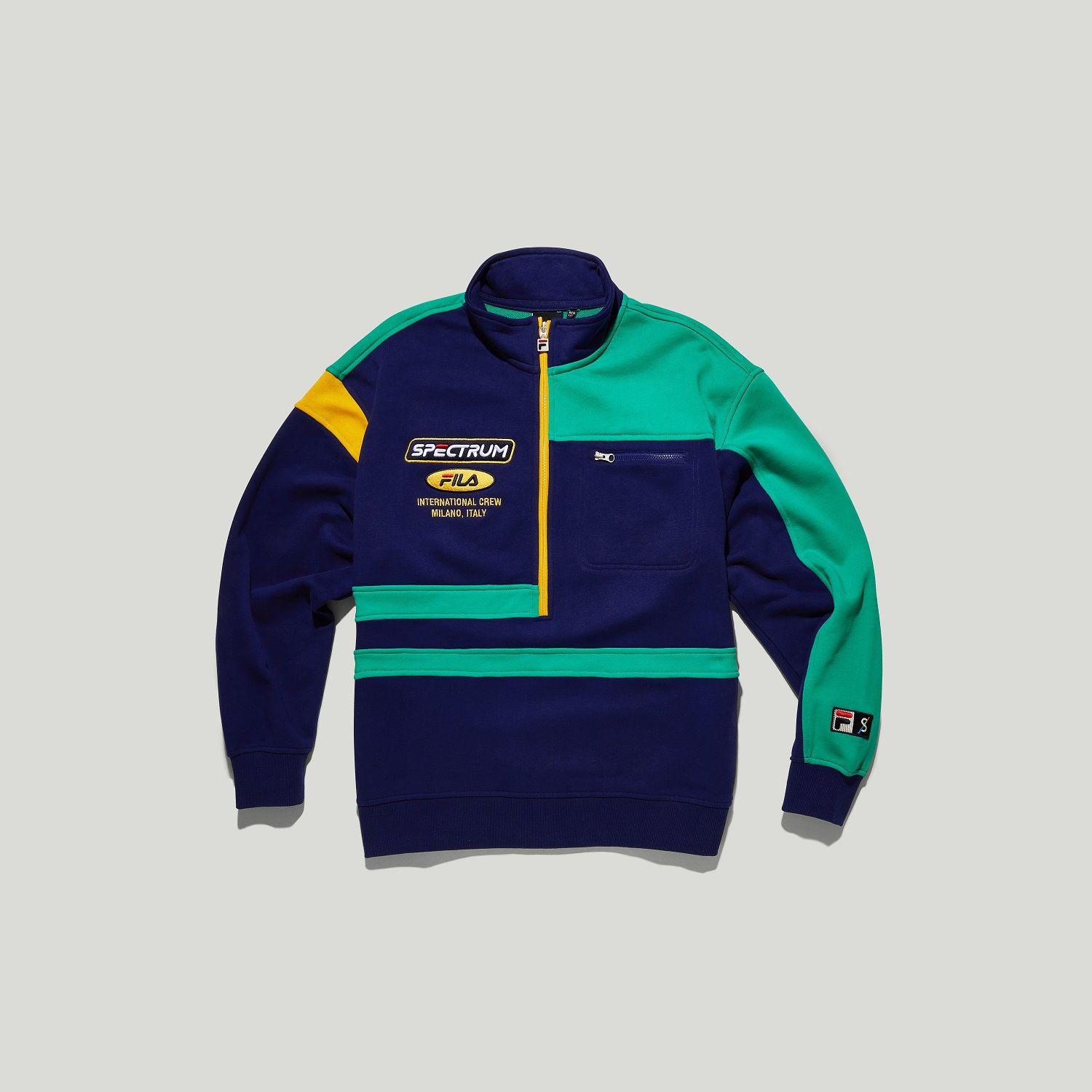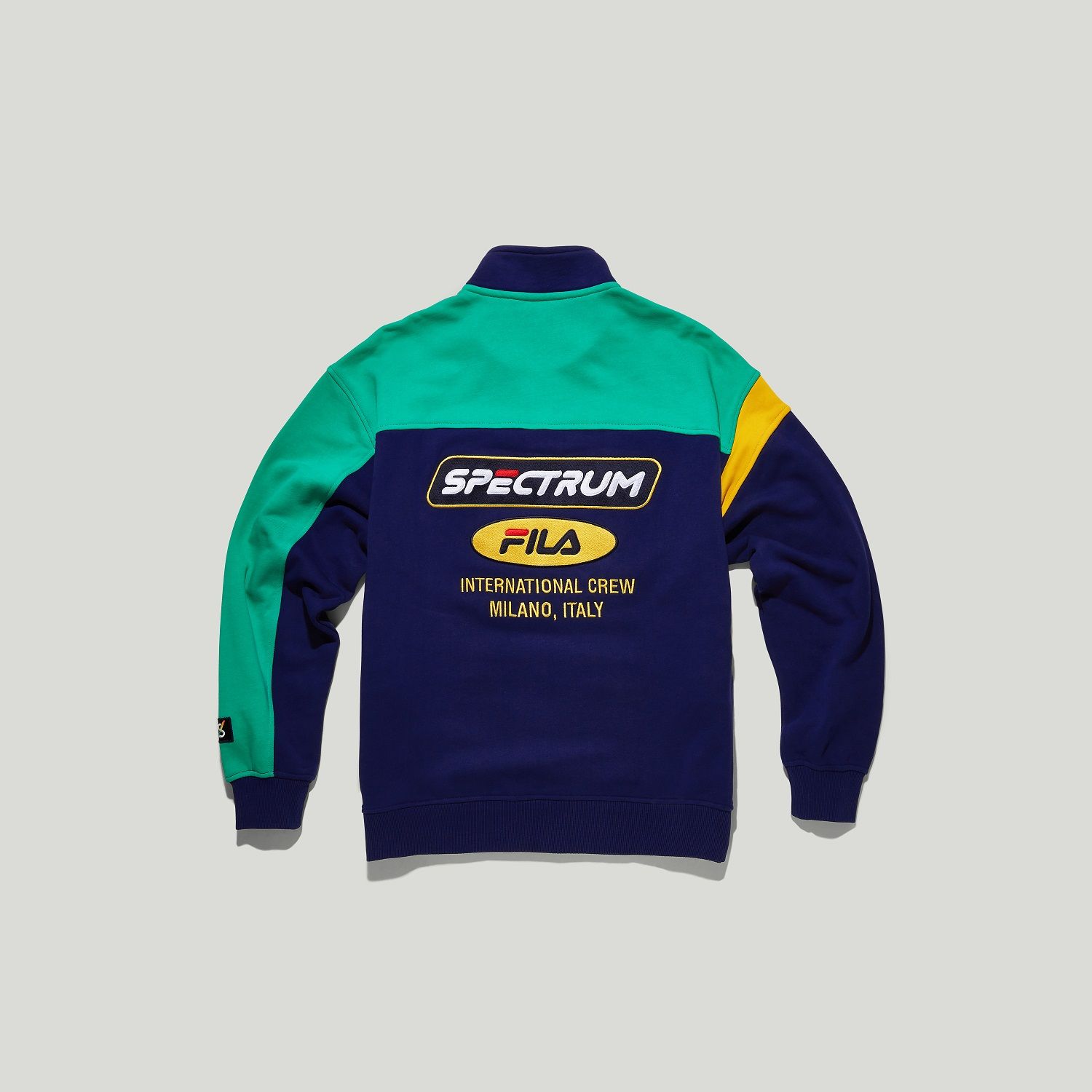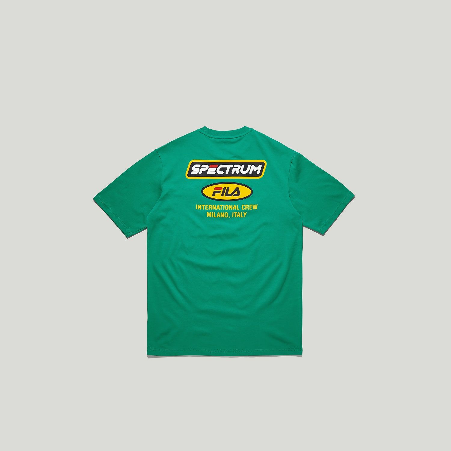 La collaborazione comprende t-shirt, felpe dal look easy e dal fit rilassato e una serie di cappellini e marsupi co-branded, tutti declinati in colori vivaci come viola, verde e giallo. L’heritage sia di FILA sia di Spectrum emergono nei dettagli che rendono i capi speciali, sono dettagli semplici e vintage, ma accattivanti come scritte maxi e patch triangolare con la dicitura "International Crew Milano".