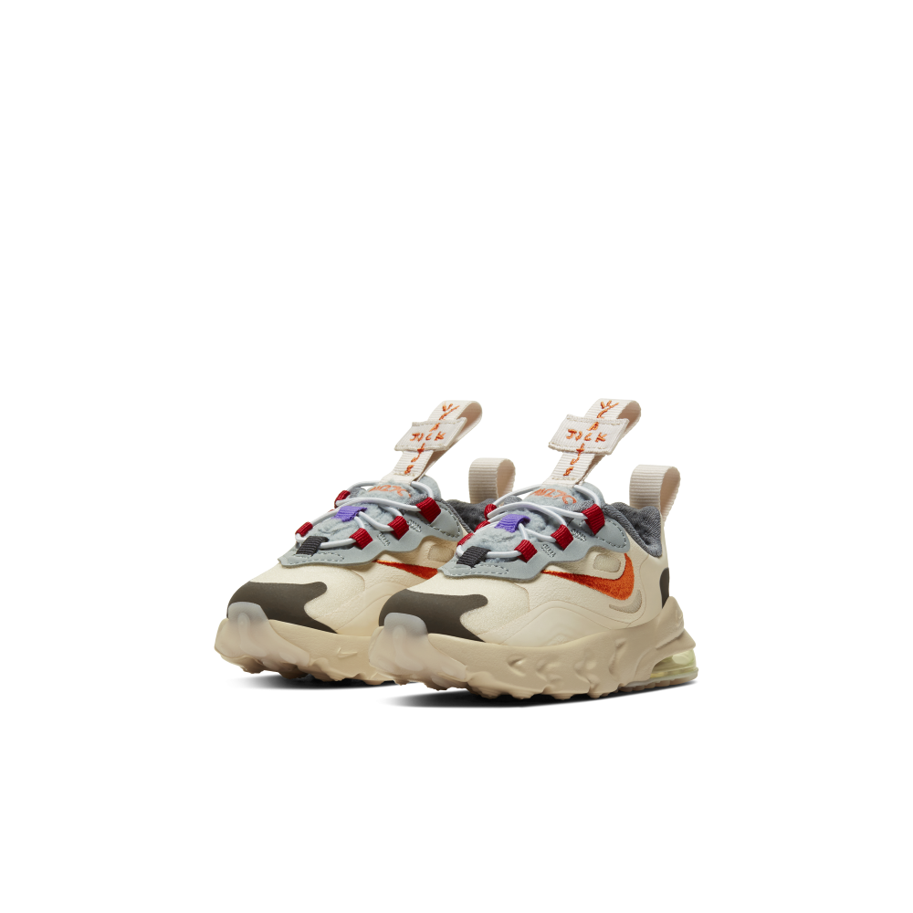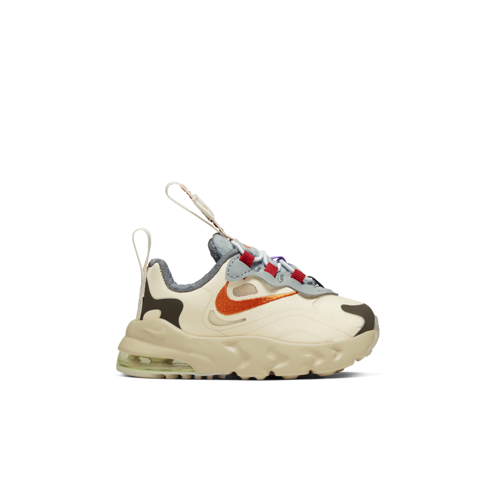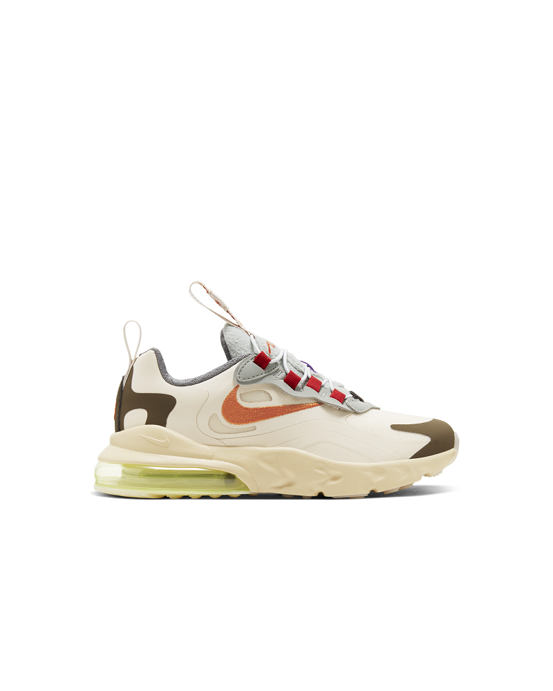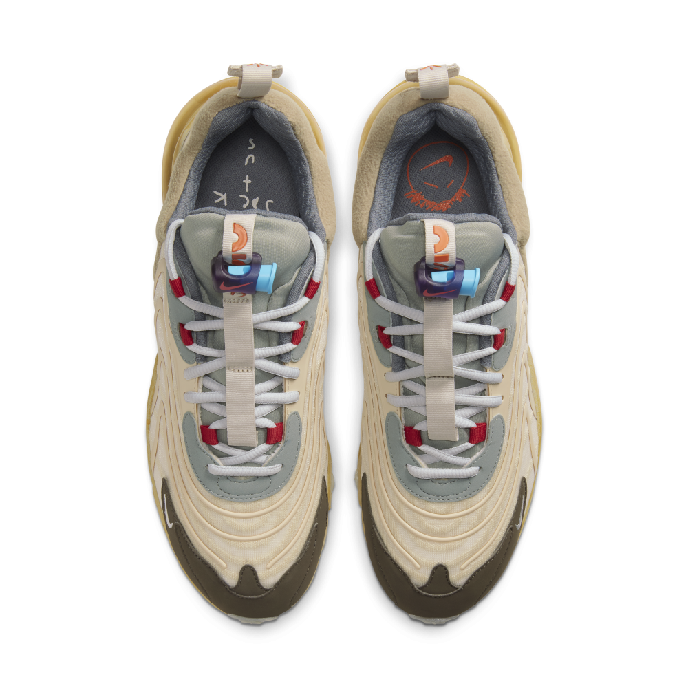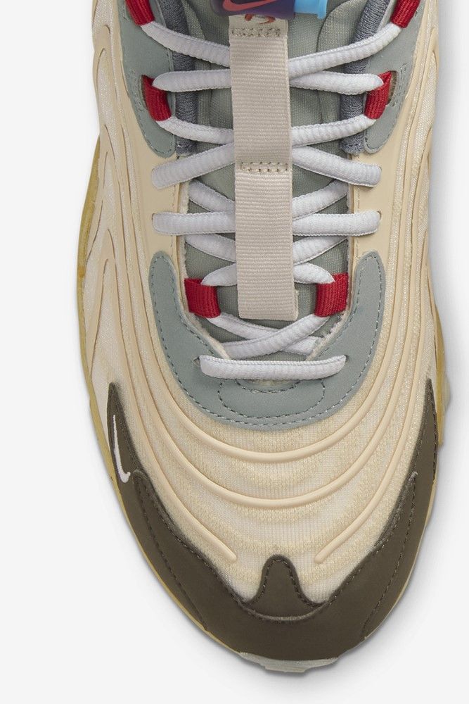 La sneaker presenta, come già le precedenti disegnate da Scott, una serie di texture e materiali diversi che costituiscono un riferimento alla passione del rapper di Houston per il vintage e la vita outdoor. L’effetto vissuto è dato dal collar in pile e dalla tinta Sulphur Dye sulla tomaia, la soletta e l'Air Unit. Elementi colorati appaiono agli allacci e sulla linguetta personalizzabile con lace-lock. Inoltre, la sneaker sarà resa disponibile anche in taglie per bambini che è invece decorata con uno Swoosh inverso sulla tomaia.