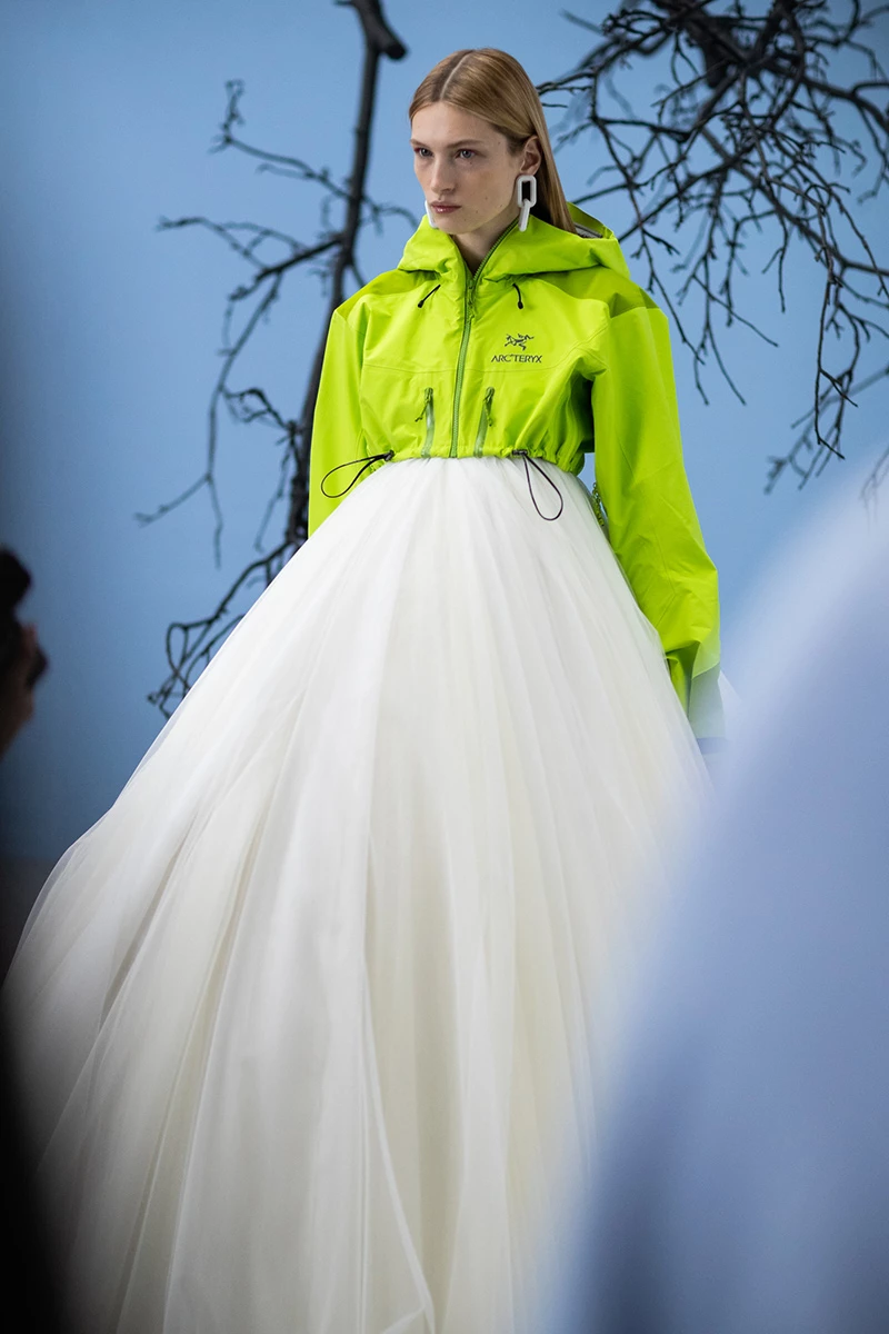 Di questo cambiamento di percezione l’esempio più lampante è quello di Arc’teryx, di cui nss magazine vi aveva raccontato nel dettaglio già lo scorso febbraio. Il brand di outdoor gear tecnico aveva conosciuto un’inattesa popolarità dopo che Virgil Abloh e Drake avevano indossato la stessa giacca del brand in occasione del Nike Forum. Il marchio canadese, che da sempre vanta una vasta ricerca nei materiali e nei tessuti utilizzati, era rimasto a lungo un nome di nicchia, non solo per i prezzi, in alcuni casi proibitivi, ma per una generale mancanza di interesse verso il mondo della moda più puro. Ma è noto che Virgil non indossa mai nulla senza una ragione ben precisa, e infatti, qualche mese più tardi, sulla passerella della sfilata di Off-White FW20 Womenswear, Bella e Gigi Hadid avevano sfilato indossando giacche Arc’teryx in versione crop top abbinate ad ampie gonne in tulle. Una collaborazione che da parte di Arc'teryx è stata definita 'unofficial', negando quindi un coinvolgimento diretto nella creazione e nella produzione dei capi.