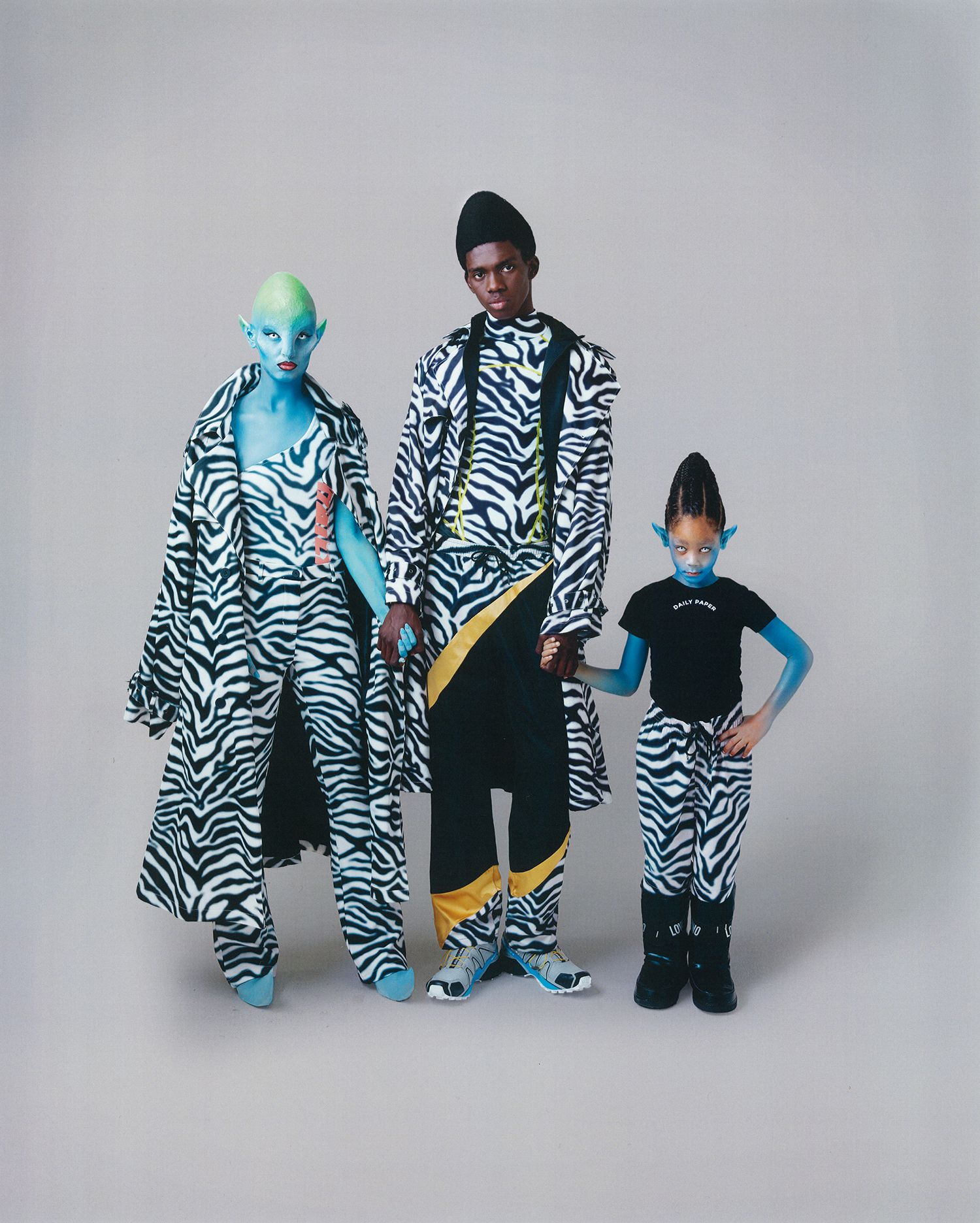 Dopo aver esplorato il multiculturalismo berlinese per la SS20 e aver celebrato la fine del Ramadan insieme alle ragazze di Muslim Sisterhood, Daily Paper ha reinterpretato la sua collezione SS20 in un nuovo editoriale: Alien Luv. Firmato dalla fotografa Lois Cohen e con lo styling di Indiana Roma Voss, l'editoriale immagina quale potrebbe essere l'aspetto di una società futura e dei suoi abitanti, un nuovo mondo fatto di alieni e forme di vita sempre più diverse tra loro, invitando a riflettere sull'identità di ognuno di noi in vista di un mondo sempre più molteplice e universale.
