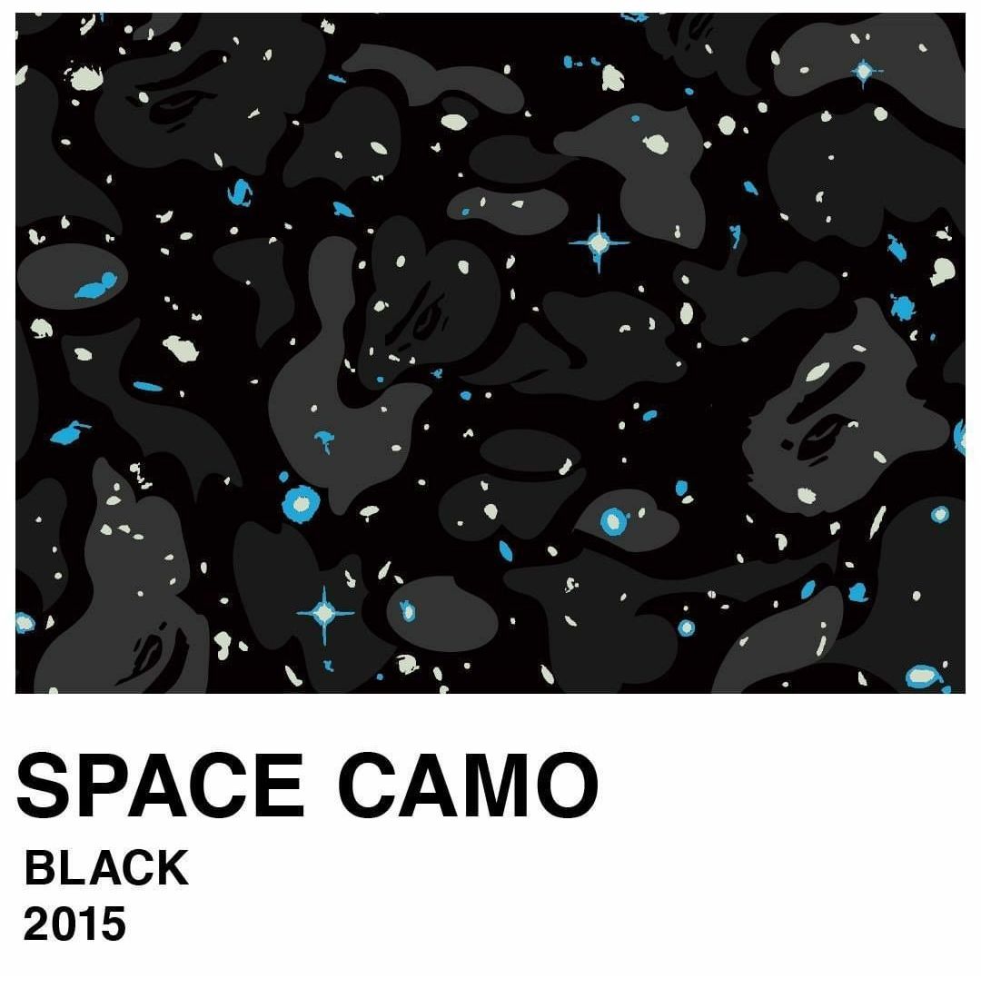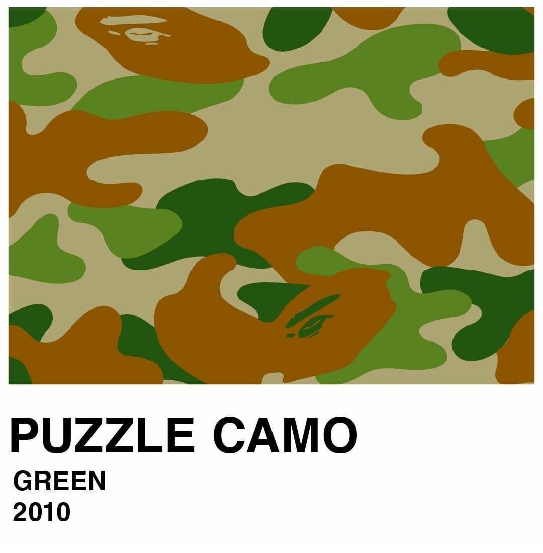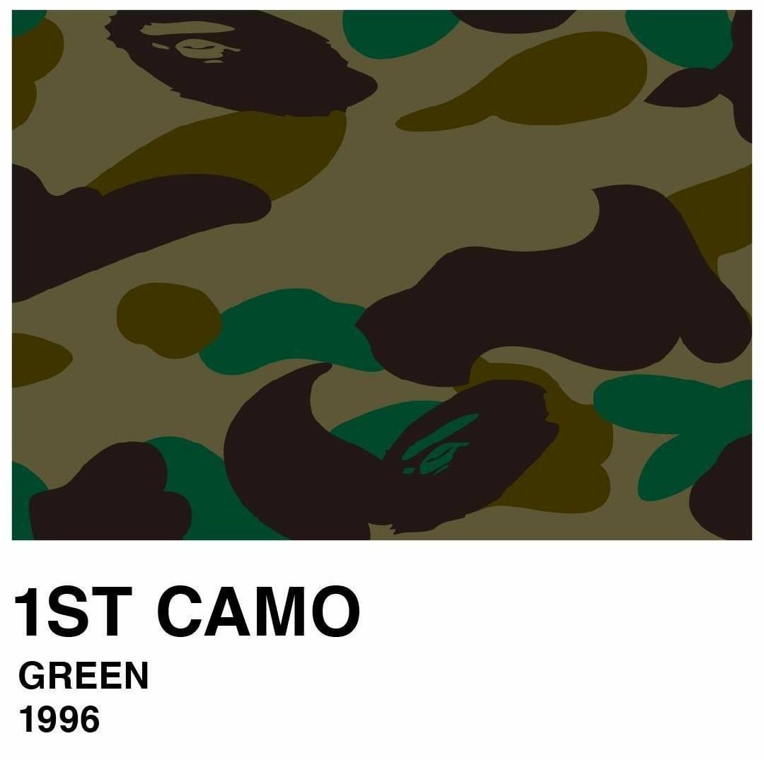 La parola camouflage, che tradotta vuol dire "nascondere", apparve per la prima volta nel 1600, quando William Shakespeare la usò in Macbeth per riferirsi alla mimetizzazione dei soldati. Il motivo venne adottato nella moda già negli anni '20 ma fu dopo la Seconda Guerra Mondiale che il camo venne adottato dai manifestanti pacifisti che lo usarono come indumento di protesta. Solo negli anni '70 il pattern iniziò a essere accettato per ciò che era realmente: un design genuino e originale. BAPE®︎ iniziò a proporlo nel 1996 nei toni del giallo e del verde, portandolo su giacche a vento e felpe che in pochi anni arrivarono ai personaggi più in vista della cultura pop, da Notorious B.I.G. a Rihanna. Oggi, il brand ha realizzaato oltre cento pattern Camo diversi.