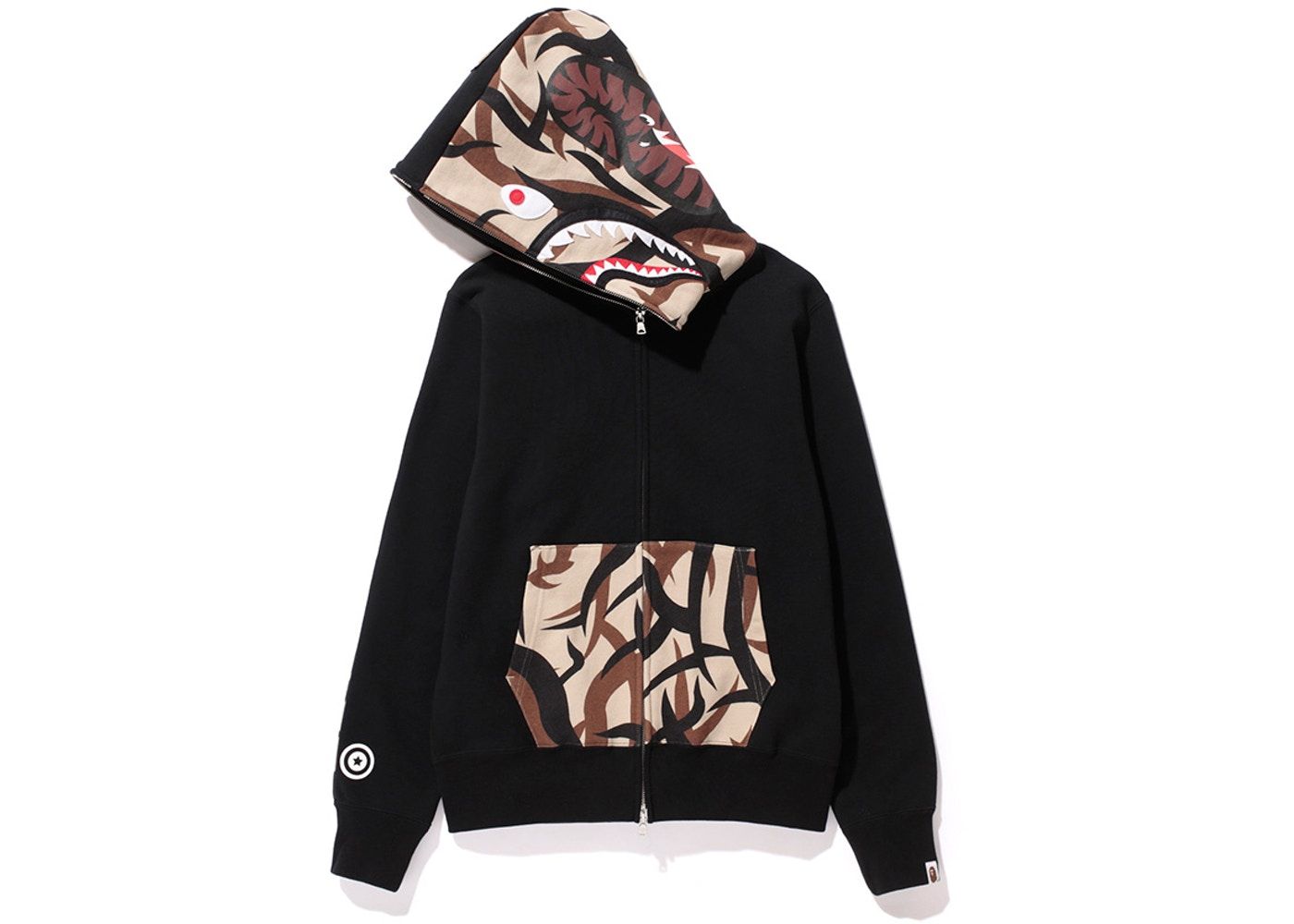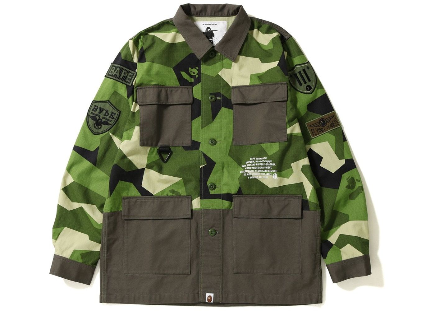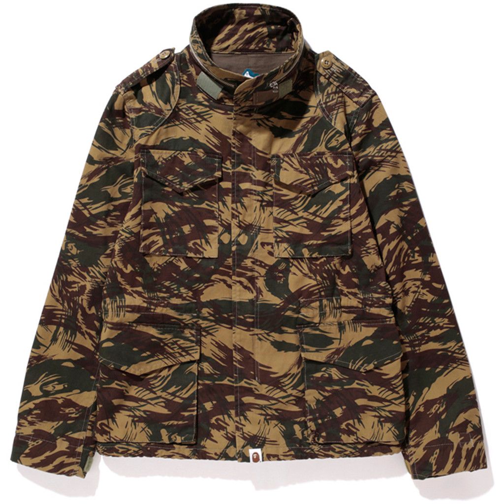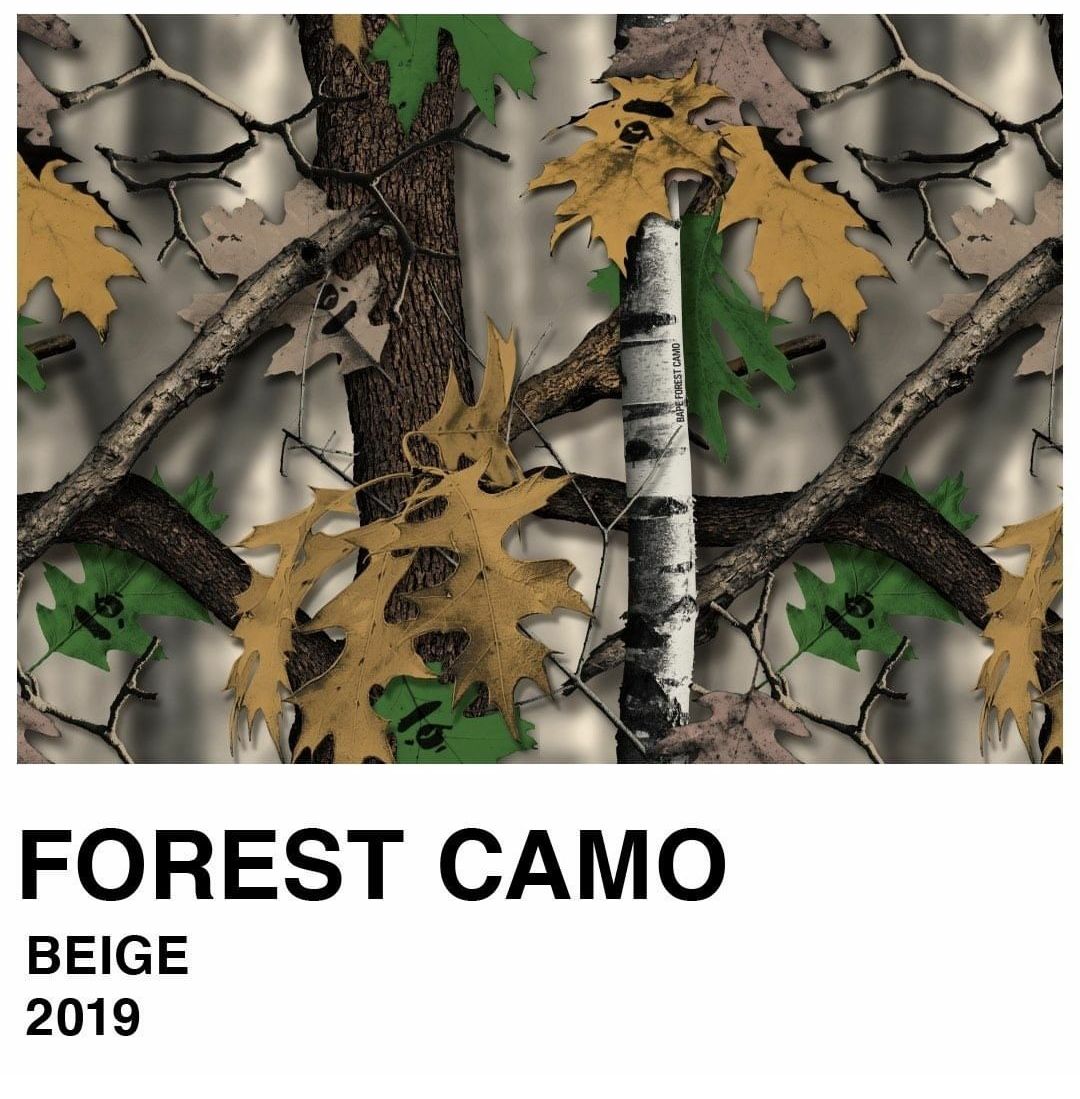 La parola camouflage, che tradotta vuol dire "nascondere", apparve per la prima volta nel 1600, quando William Shakespeare la usò in Macbeth per riferirsi alla mimetizzazione dei soldati. Il motivo venne adottato nella moda già negli anni '20 ma fu dopo la Seconda Guerra Mondiale che il camo venne adottato dai manifestanti pacifisti che lo usarono come indumento di protesta. Solo negli anni '70 il pattern iniziò a essere accettato per ciò che era realmente: un design genuino e originale. BAPE®︎ iniziò a proporlo nel 1996 nei toni del giallo e del verde, portandolo su giacche a vento e felpe che in pochi anni arrivarono ai personaggi più in vista della cultura pop, da Notorious B.I.G. a Rihanna. Oggi, il brand ha realizzaato oltre cento pattern Camo diversi.