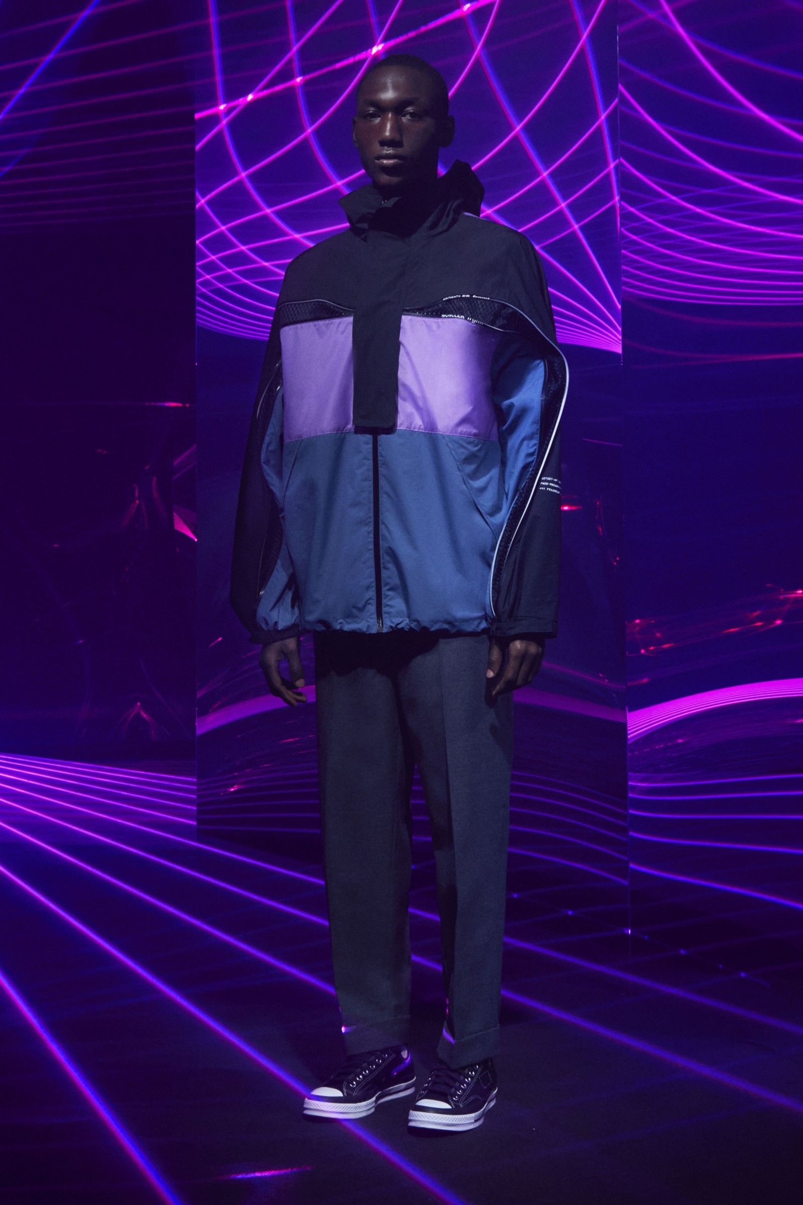 Due degli item più interessanti sono un bomber decorato dalla cover art di Spirit of the Boogie di Kool & the Gang e un maglione ricamato con le coordinate geografiche del ristorante preferito di Fujiwara a Parigi. Fra le realtà coinvolte nella collezione, c’è la pelletteria inglese Lewis Leathers, insieme alla quale Fujiwara ha concepito nuove versioni della classica biker jacket, una delle quali è realizzata in nylon laqué, e una capsule di footwear realizzata con Converse che ha prodotto una Chuck 70 con cuciture a contrasto e dettagli minimalisti nella doppia colorway nera e bianca.