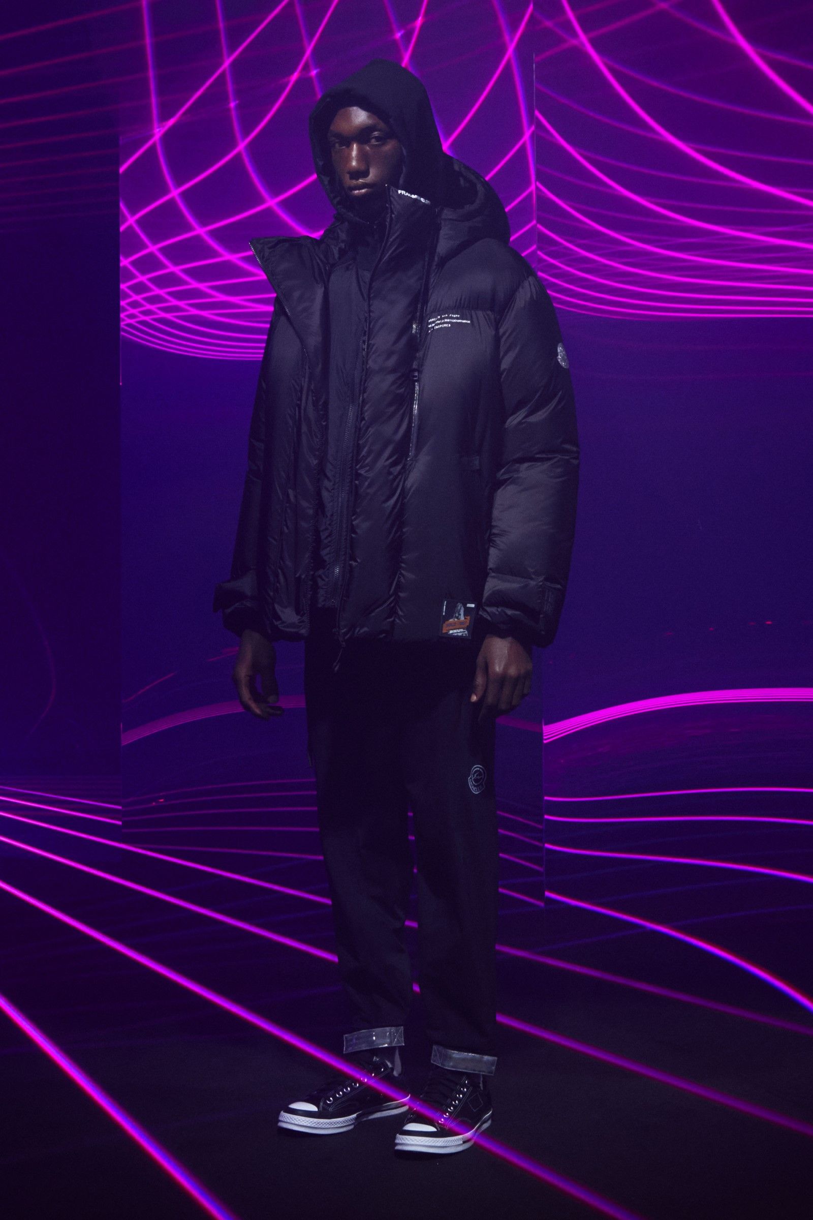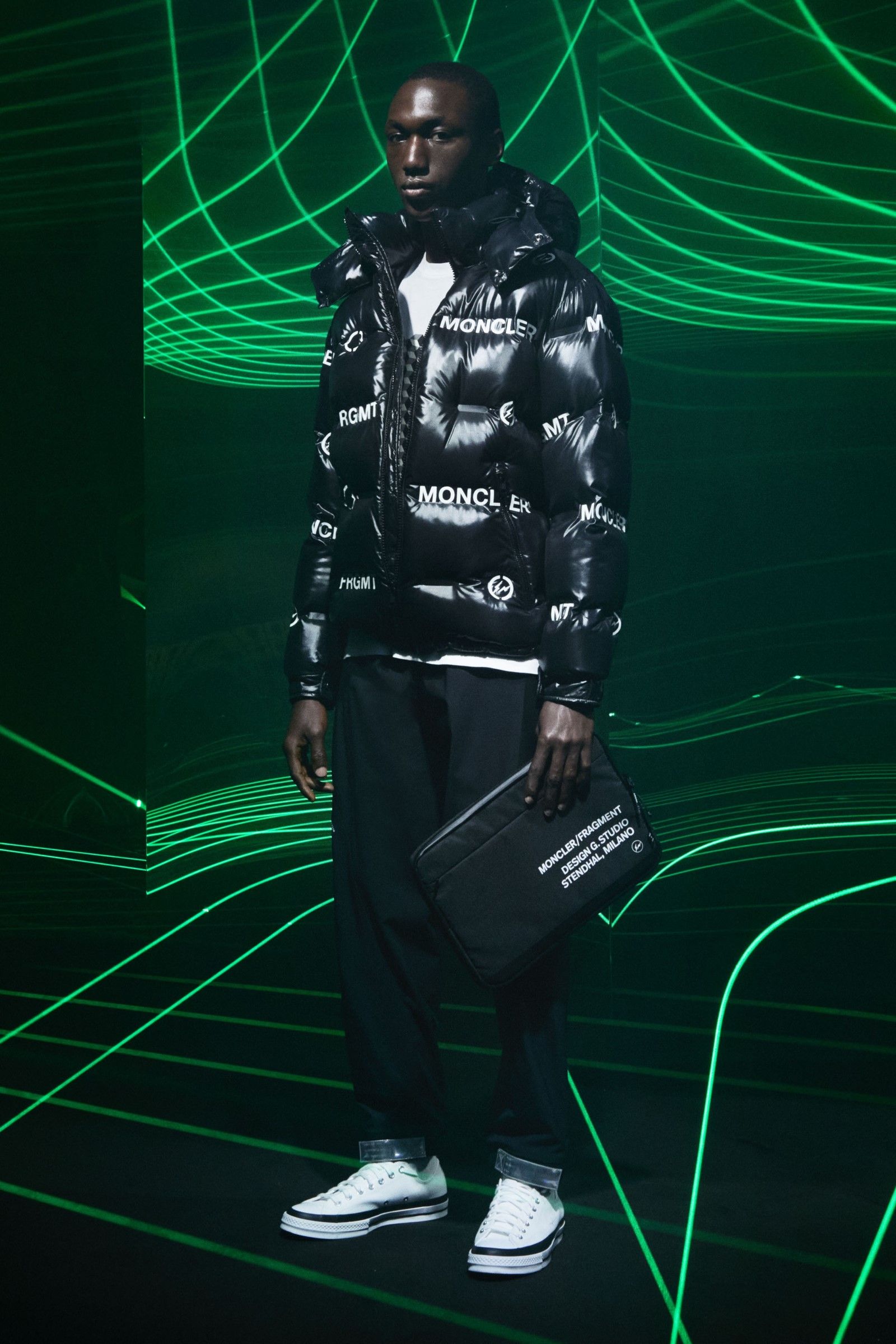 Per gli item della collezione, Hiroshi Fujiwara ha mescolato riferimenti agli abiti vintage, alle uniformi militari e al techwear nei propri design per trasformare i classici capi Moncler con l’approccio sottilmente anarchico che da sempre contraddistingue lo stile di Fragment. La collezione è dominata dal colore nero, con flash di giallo, verde e blu e una mescolanza della tecnica laqué e dei nylon di Moncler con lana, flanelle e tessuti a spina di pesce. Lo slogan “Fragment Loves Mountain”, poi, si ritrova stampato su nylon opaco e ripetuto su puffers, giacche da campo, giacche a vento e parka.