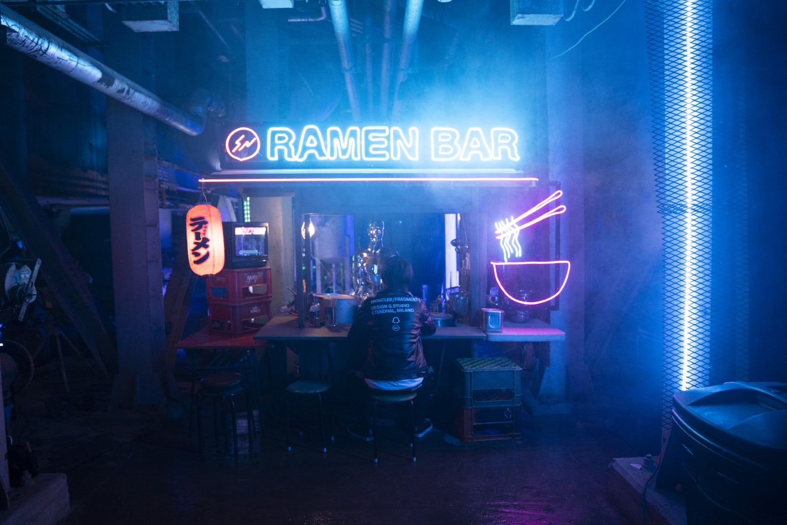 In Giappone, patria di Fujiwara, è stata invece impiegata una diversa tattica per raccontare l’estetica della collezione al pubblico. Un cortometraggio che celebra la collezione e girato all’interno di un Ramen Bar illuminato dai neon e con protagonista l'attore e cantante Tomohisa Yamashita è stato trasmesso su uno schermo dello Shibuya Crossing di Tokyo. Inoltre, i follower e fan di Fragment hanno ricevuto un'anteprima della collezione sulla piattaforma social Line, insieme a una playlist di Spotify selezionata da Fujiwara stesso. Infine, l’esperienza termina in Europa dove Moncler e Matchesfashion presenteranno una sfida fra DJ le cui musiche saranno ispirate al variegato mondo di subculture da cui Fujiwara trae ispirazione per i propri design. I DJ Benji B e Licaxxx trasmetteranno i propri set, rispettivamente da Londra e d Tokyo, in una sfida che sarà visibile attraverso IGTV.