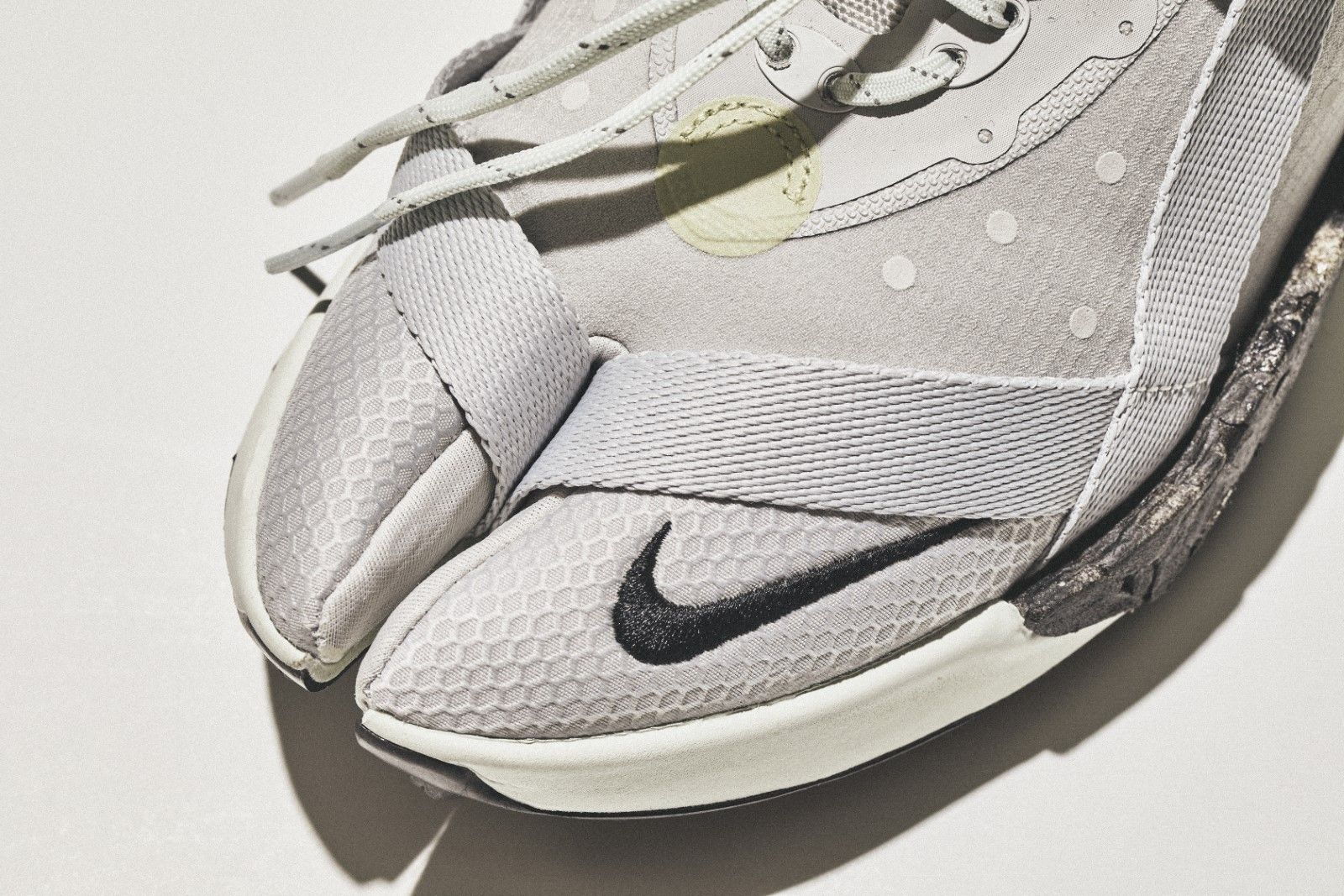 Questa sneaker rielabora il concetto di calzatura Tabi giapponese con la sua struttura a infradita aggiornandolo con la robustezza strutturale delle sneaker da allenamento. La tomaia split-toe posa su una base di schiuma flessibile e leggera che incorpora la tecnologia delle sneaker da running più veloci del range Nike, le Nike ZoomX. Il taping esterno, con fasce simili a cinghie che circondano la struttura split-toe, forniscono stabilità, forma e vestibilità alla sneaker mentre un sistema di fissaggio unico consente l’allaccio sia dalla parte anteriore che da quella centrale degli occhielli.