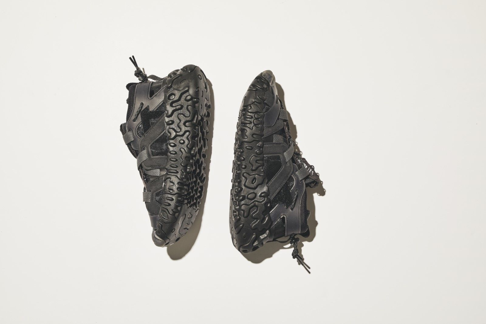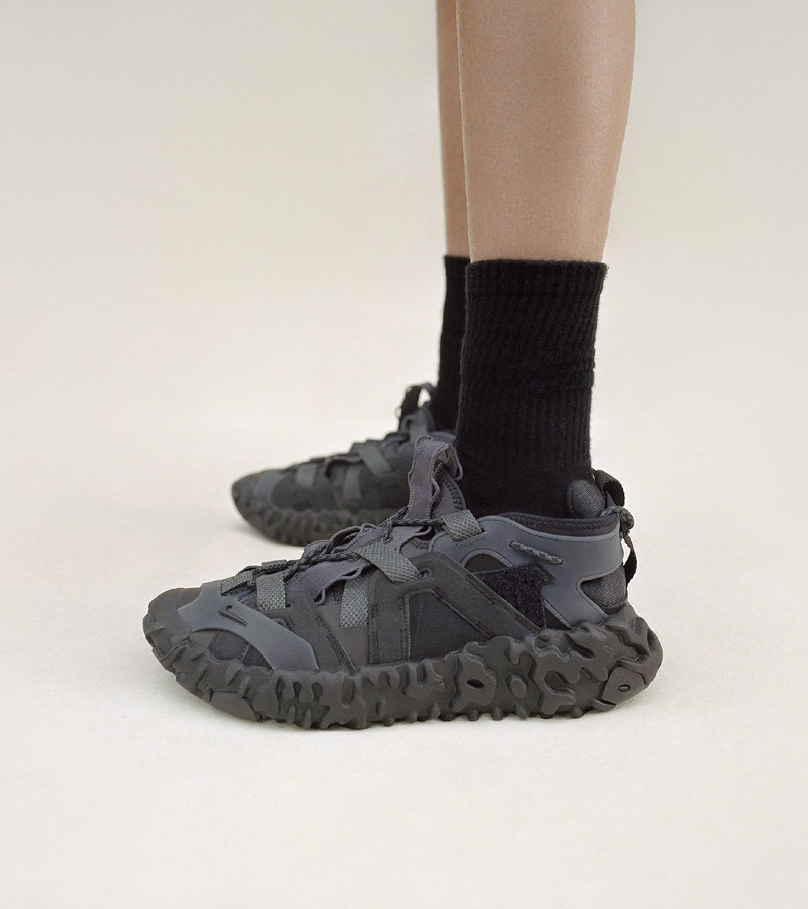 La versione della tecnologia Overract declinata nella forma del sandalo amplifica l’approccio al comfort della sneaker adattandone la costruzione per la stagione più calda. L’unità suola ricalca il design della sneaker Overract mentre la differenza principale sta nella tomaia che possiede un design ridotto all’essenziale caratterizzato da un’esposizione dei layer interni ed elementi strutturali. L’apertura della struttura della tomaia consente traspirazione e passaggio dell’aria oltre a rendere la sneaker notevolmente più leggera e perfettamente resistente.