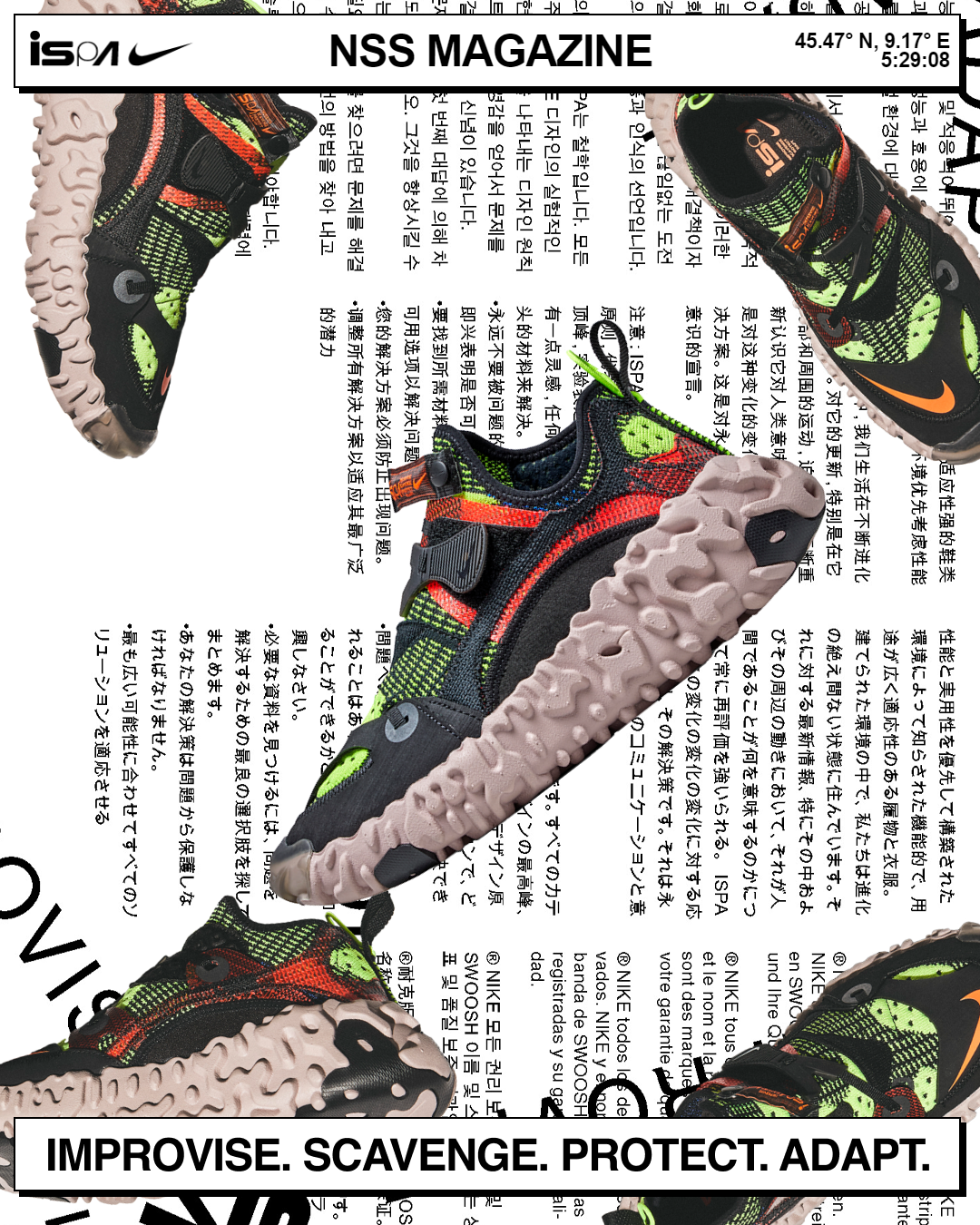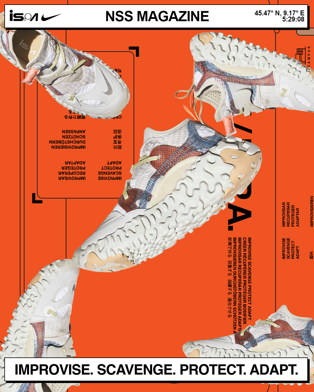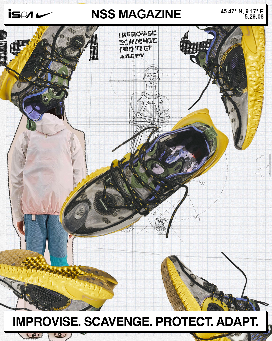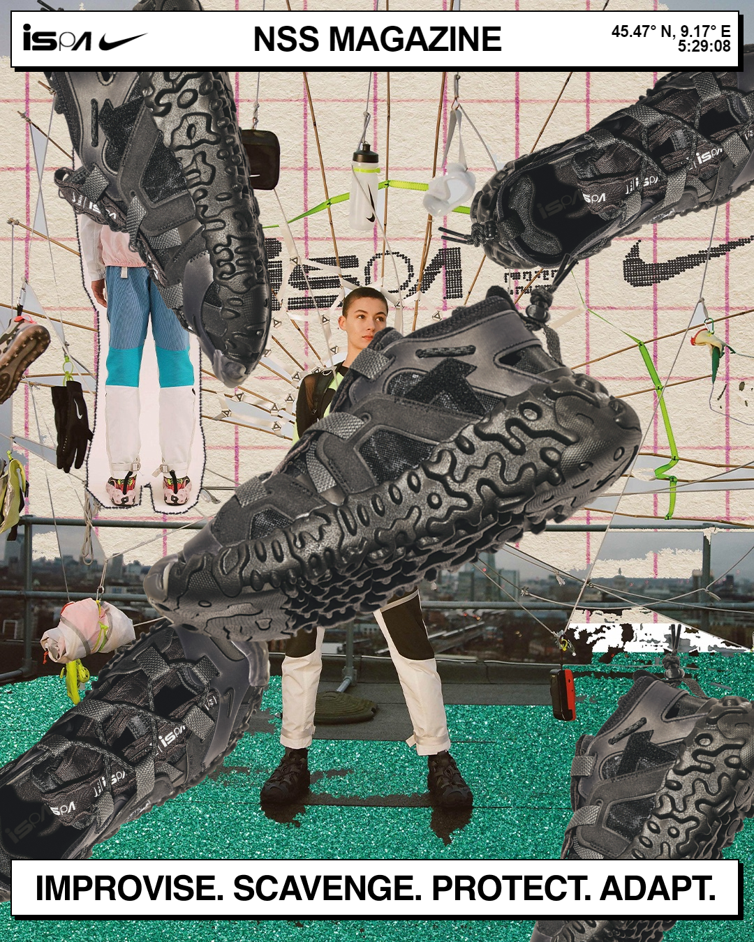 La filosofia di Nike ISPA, la divisione del brand che si dedica alla realizzazione delle tecnologie e dei progetti più innovativi e functionality-oriented, è riassunta nel suo stesso nome, acronimo del motto Improvise, Scavenge, Protect, Adapt.