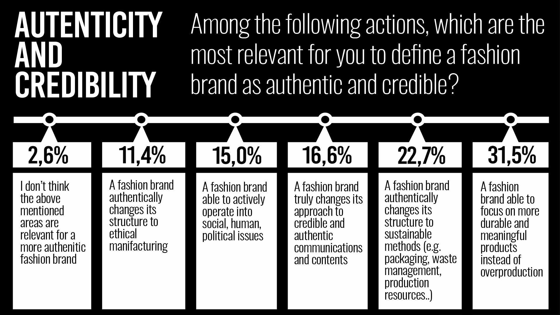 Le nuove generazioni cercano cambiamenti e azioni concrete. Spinti dalle battaglie per l'emergenza ambientale simboleggiate da Greta Thunberg, uno dei temi più cari è la sostenibilità: le nuove generazioni chiedono l'eliminazione della wasteful production, una reale riorganizzazione della produzione e, soprattutto, che i brand si concentrino su prodotti significativi e durevoli, realizzati nel pieno rispetto dell'ambiente. In questo caso, l'autenticità è un valore fondamentale: le nuove generazioni chiedono meno incertezza e confusione quando si parla di sostenibilità e pratiche-tampone come il greenwashing oggi sono considerate inaccettabili.