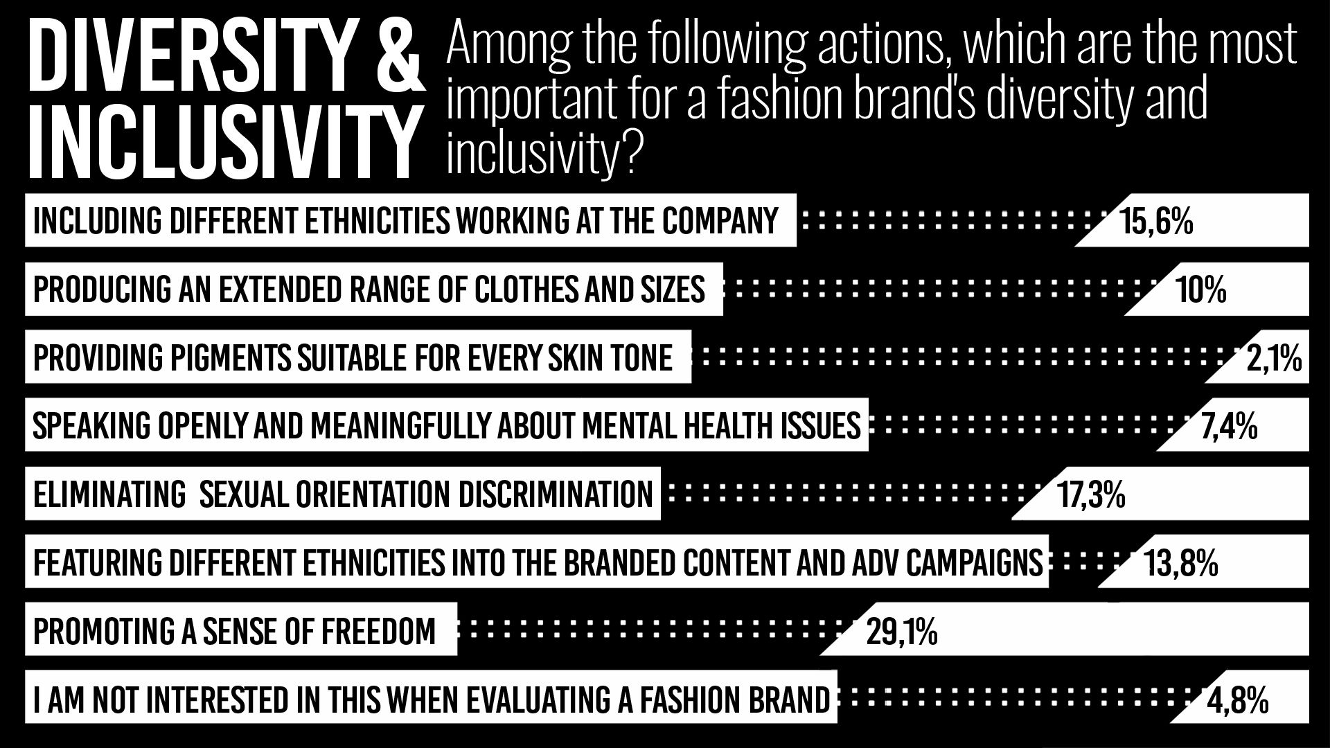 La morte di George Floyd e le proteste del Black Lives Matter hanno evidenziato un problema importante: la mancanza di inclusività nell'industria della moda. Nonostante gli account Instagram della maggior parte dei brand si siano riempiti di quadrati neri in supporto alla causa del BLM, le nuove generazioni hanno contestato molte di queste posizioni perché ritenute di circostanza, denunciando gli atteggiamenti poco inclusivi che sopravvivono all'interno di molte aziende. È vero che molti brand promuovono una grande varietà di etnie e taglie diverse nella loro pubblicità, ma inclusività significa molto di più. Stando a quanto emerso dalla ricerca, i fashion brand avrebbero bisogno di eliminare in modo concreto la discriminazione in base all'orientamento sessuale, all’etnia e alla religione sul posto di lavoro (non stupisce la decisione della direttrice delle Risorse Umane di adidas di licenziarsi dopo le accuse di razzismo).