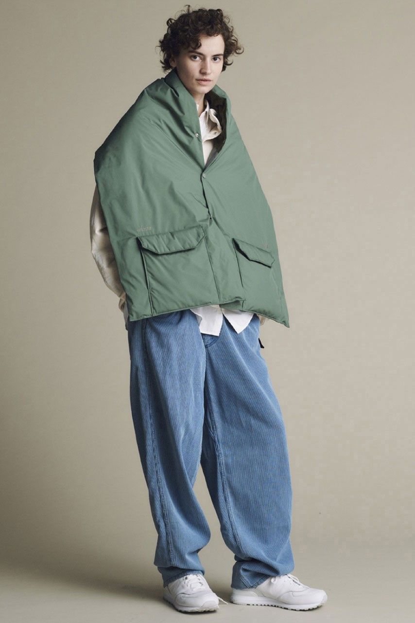 Sempre sul confine tra casual e abbigliamento funzionale, la collezione offre diversi item indispensabili per la stagione fredda, tra cui ampi parka e giacche da campo, pantaloni di velluto a coste e grandi magliette. A fianco di un abbigliamento più informale, alcuni materiali come GORE-TEX, Cordura e Polartec assicurano che i capi e le borse siano abbastanza robusti per sopravvivere all'inverno. Nonostante le proporzioni importanti, gli item sono progettati per combinarsi senza sforzo al guardaroba di tutti, in particolare grazie a colori neutri e i dettagli regolabili.
