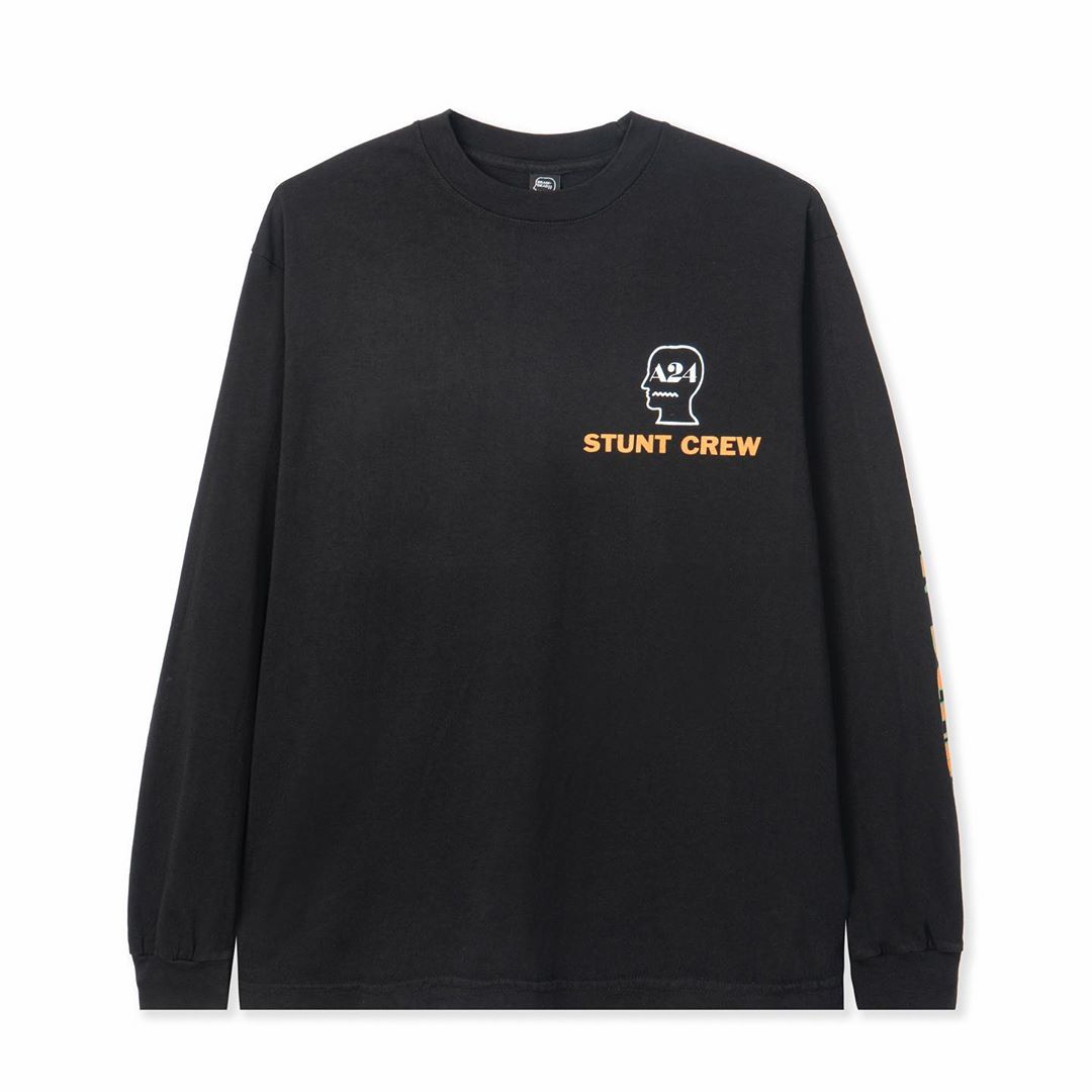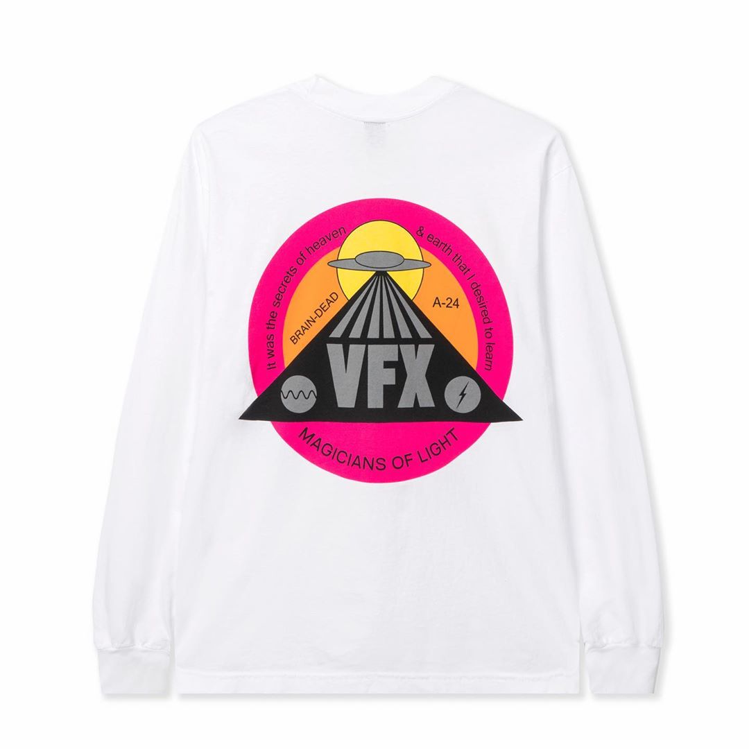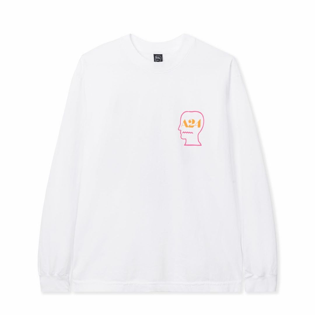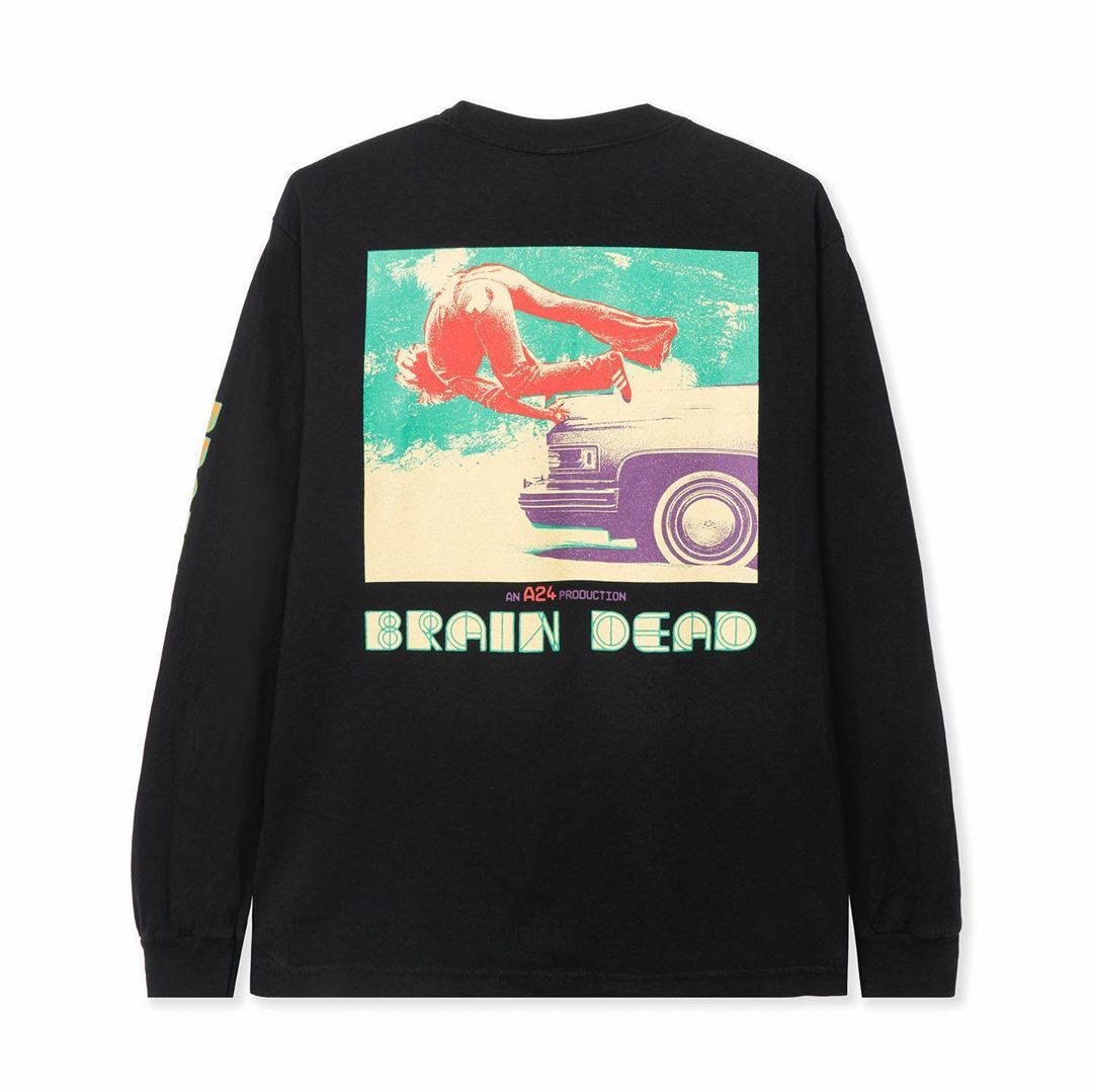L'ultimo passo è invece una collabo con Brain Dead, brand eclettico e molto originale, da diversi anni ormai al centro della scena street, in cui le classiche grafiche psichedeliche del brand si incontrano con il logo A24. Oltre ad alcune t-shirt e longsleeve, fanno parte della collezione anche una spilla, un bucket hat e un cappellino.