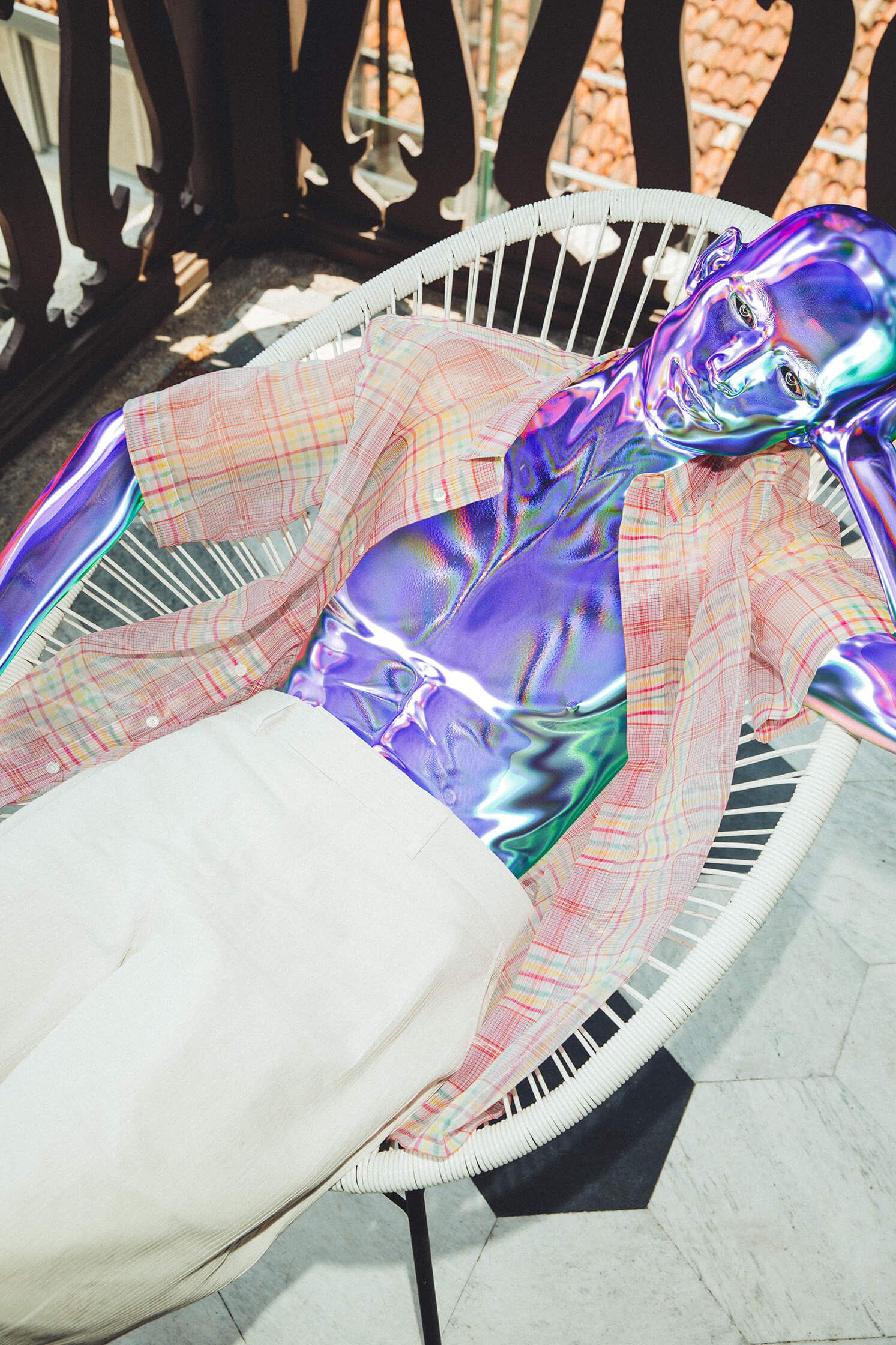 Ricordando il mondo che avevano conosciuto i primi umanoidi, atterrati a Milano poco più di un anno fa, prima della pandemia, prima del lockdown, quando Milano era il centro dell’Europa, traspare chiara l’immagine di un universo eccitante, ricco di possibilità e di speranze per il futuro. Un ecosistema che stride con la malinconia e a tratti la solitudine di questo nuovo pianeta segnato da alienazione e distanza, in cui ogni gesto è mediato dal digitale, in cui tutto sembra già visto, in cui nulla ha più davvero importanza, nella vita come nella moda.