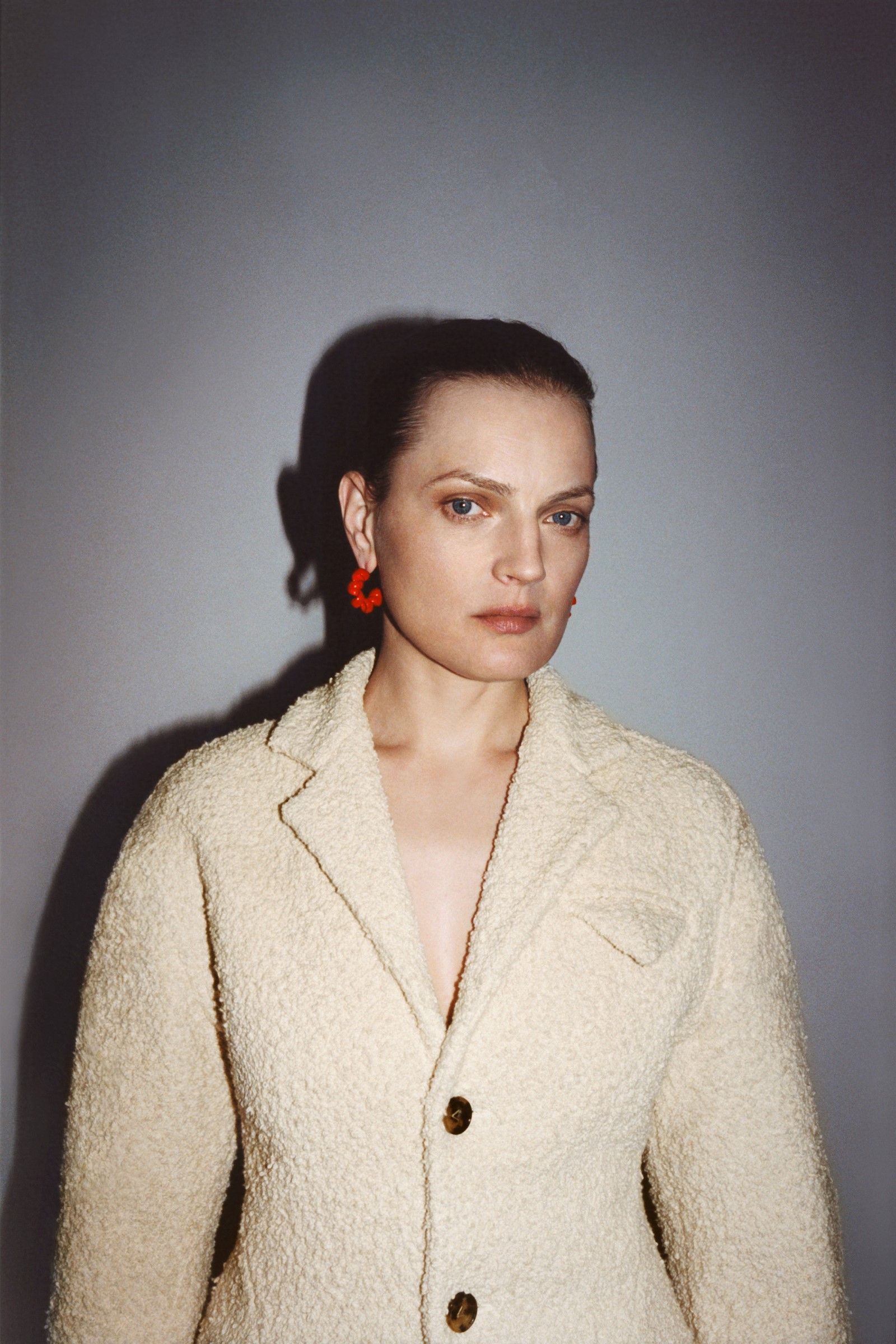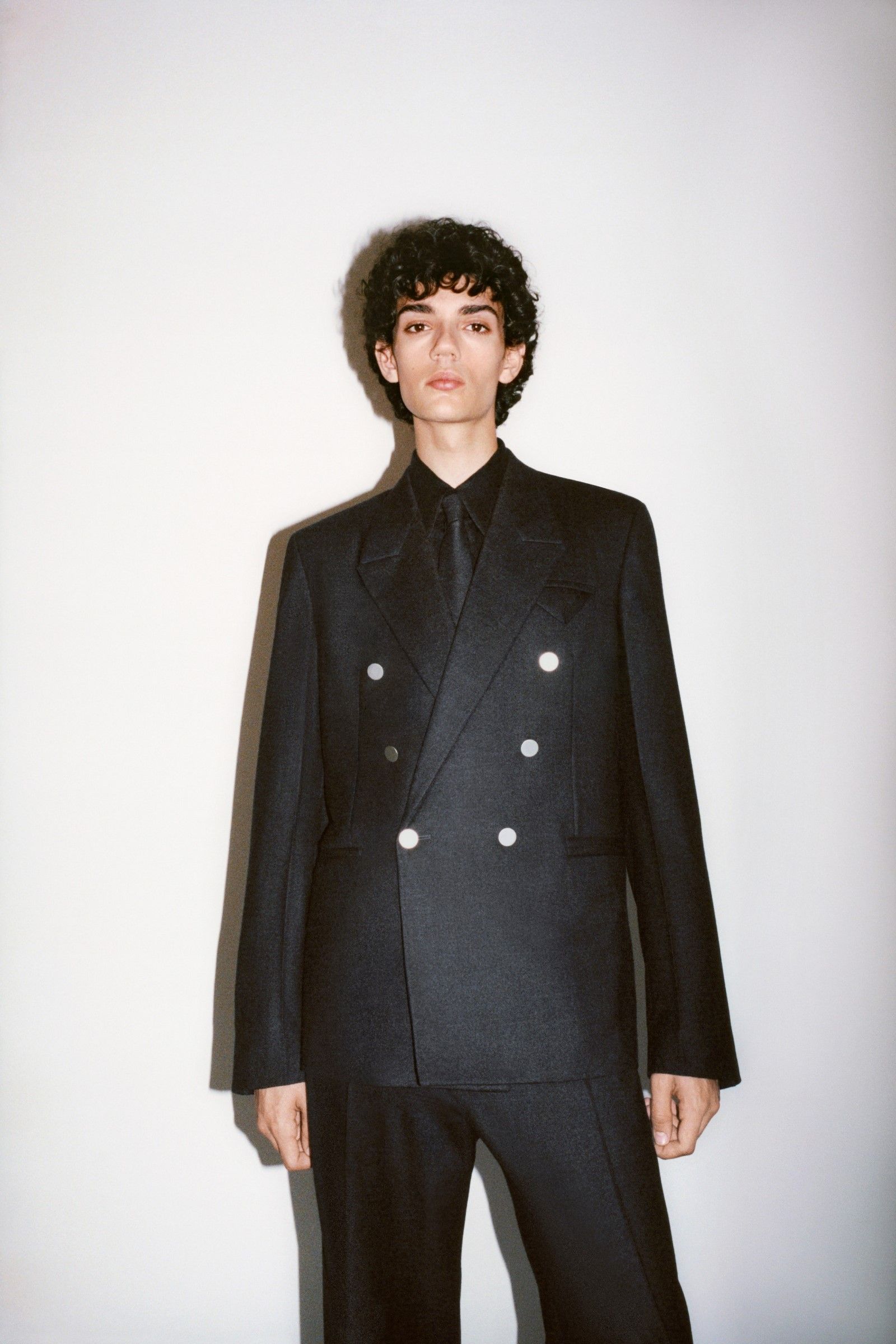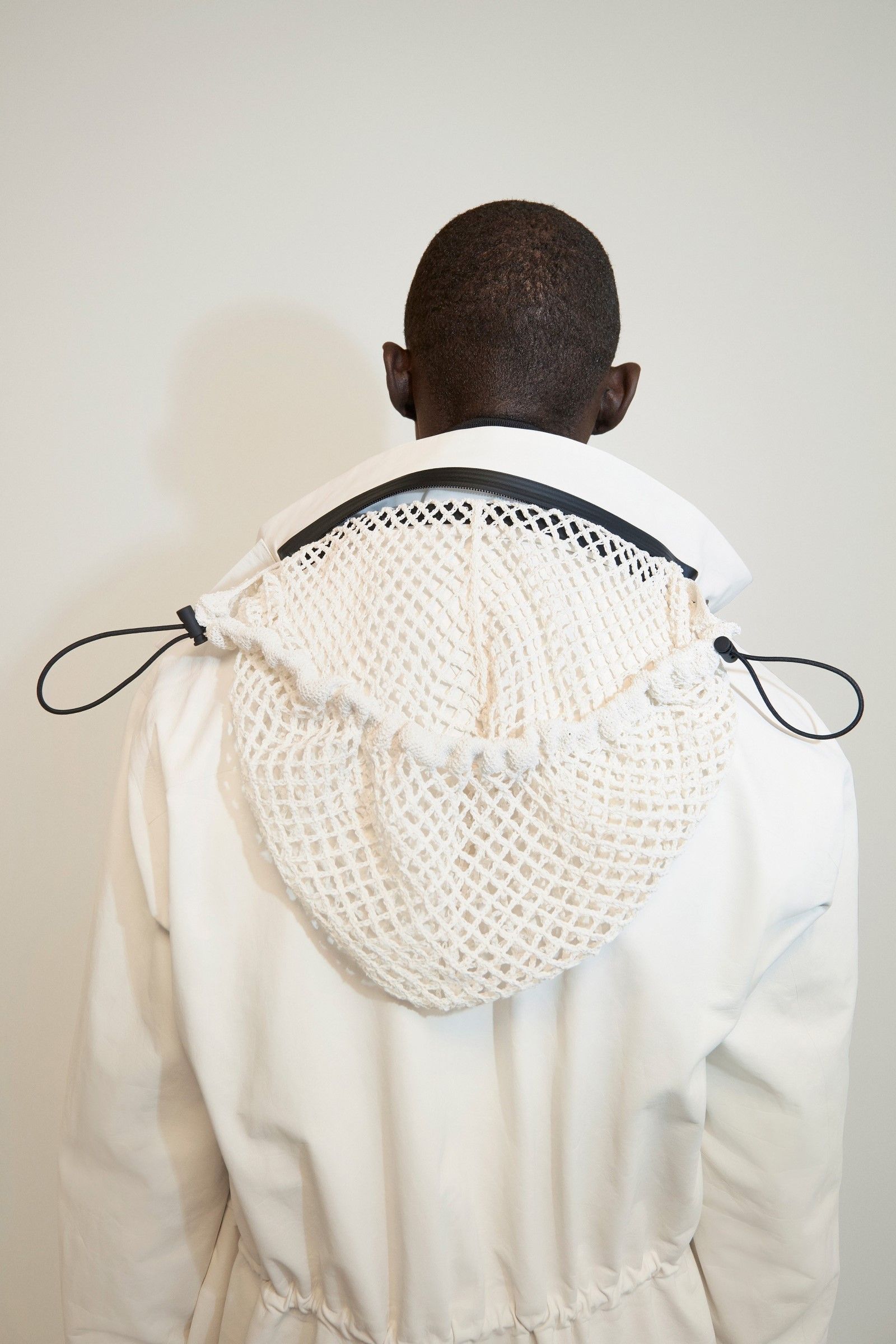 Insieme alle forme, i colori diventano l’elemento fondamentale che vivifica i design di Lee e del suo team. L’emozione e la giocosità che si volevano dare alla collezione vengono comunicati attraverso sfumature di lilla, di antracite e di giallo. È il lato womanswear della collezione il principale campo da gioco di colorway e texture diverse e anche l’unico in cui appare un vivace pattern a stampa giallo e verde, composto da figure umane nude intrecciate le une con le altre, che è una delle novità della collezione è che certamente continueremo a vedere in futuro. Più severa è invece la palette di colori per l’uomo, ricca di colori scuri e sobri, ma con occasionali lampi di verde e rosso che fanno capolino da sotto le giacche.
