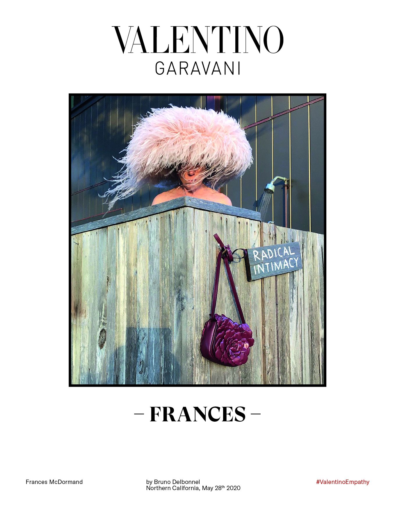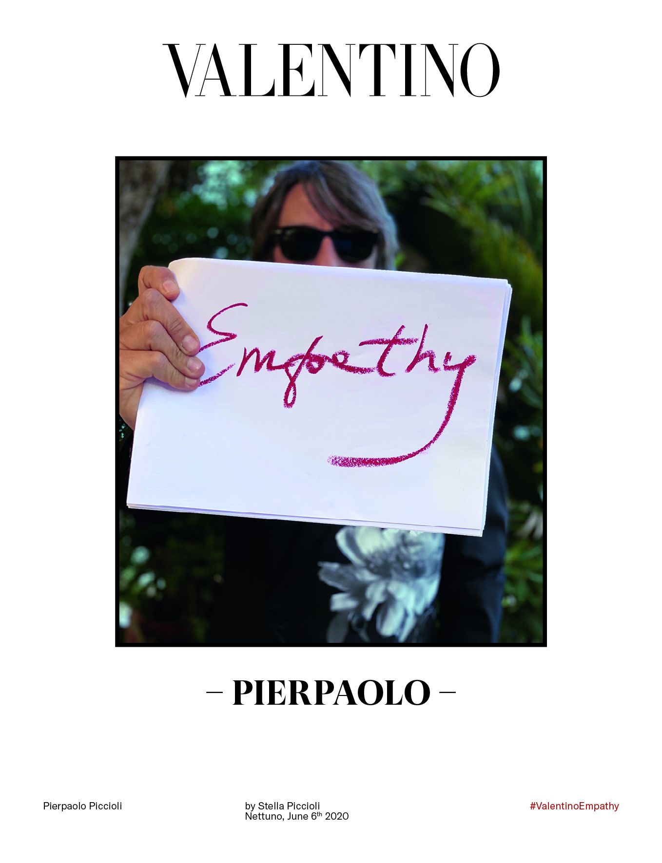 In un momento così particolare, ancora profondamente segnato dalle conseguenze della pandemia, il direttore creativo Pierpaolo Piccioli ha immaginato una campagna nuova, diversa: una raccolta di ritratti realizzati dagli stessi protagonisti e dai loro familiari, scattati durante il lockdown direttamente nei luoghi in cui gli artisti hanno vissuto il periodo di isolamento. Per questo progetto esclusivo, Piccioli ha coinvolto un cast eccezionale di amici della maison, tra cui le top-model Naomi Campbell, Christy Turlington e Mariacarla Boscono, le attrici Frances McDormand, Laura Dern, Rossy De Palma e Gwyneth Paltrow, celebrità e influencer come Laetitia Casta, Liu Wen e Anwar Hadid, star italiane come Ghali e personalità di rilievo politico internazionale come Rula Jebreal. Un parterre esclusivo che interpreta le collezioni sotto il segno dell'empatia: un'emozione, un sentimento che neanche il distanziamento sociale potrà mai sconfiggere.