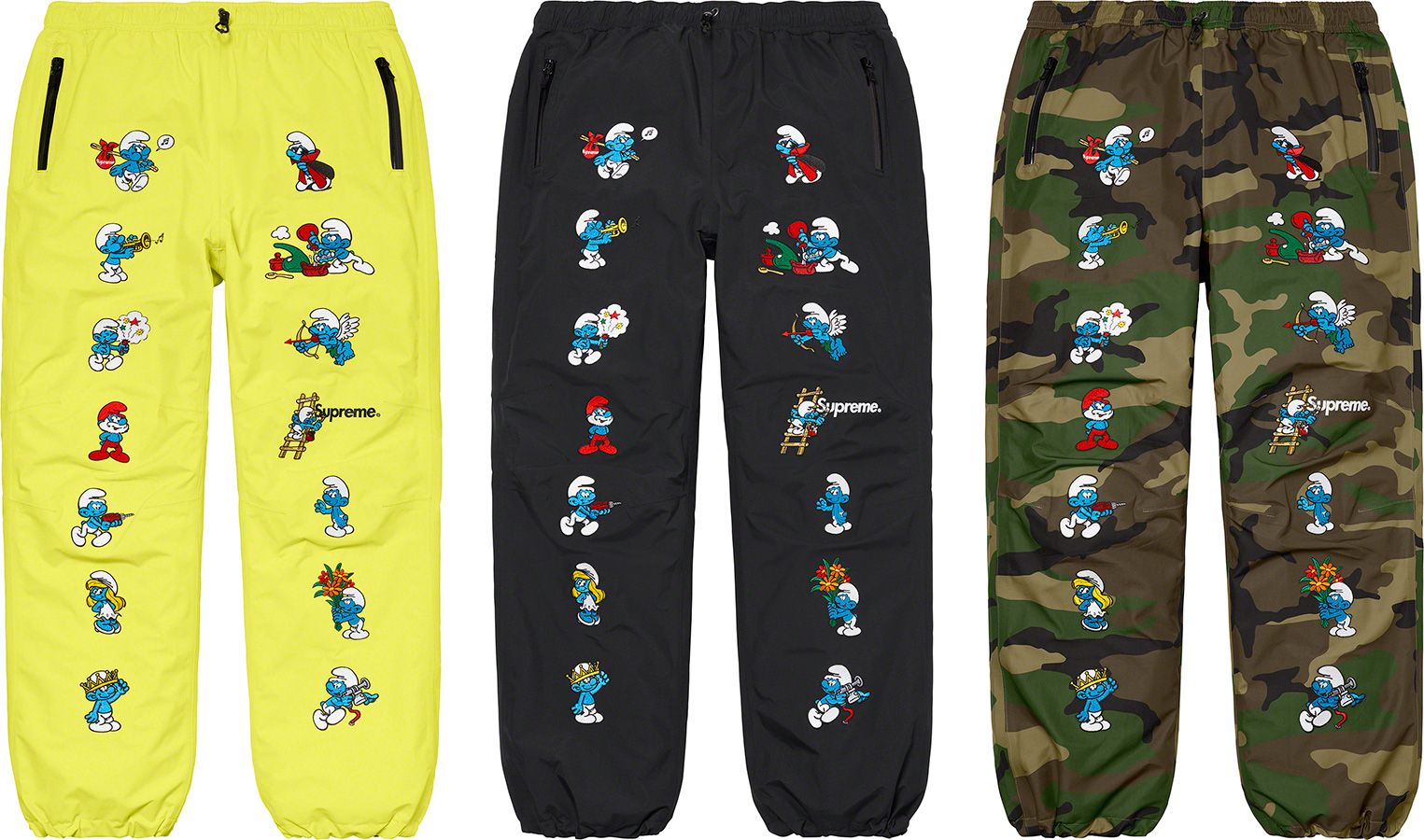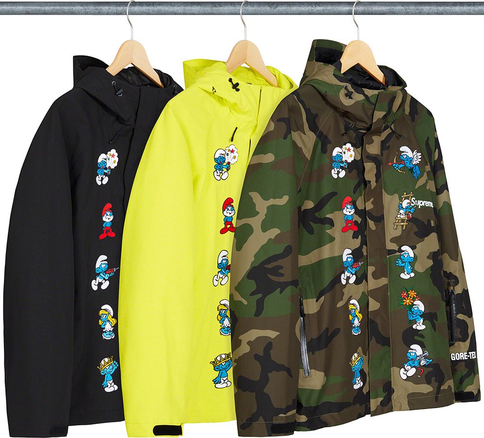 La collezione accentua ancora di più l’eclettismo dei riferimenti culturali del brand a partire dalla già citata collaborazione con I Puffi, che a onor del vero non ne è la parte più riuscita, fino agli artwork del leggendario illustratore giapponese Toshio Saeki. Ancora una volta pattern audaci e stampe all-over dominano i pezzi della collezione, in special modo nella sezione outerwear con fantasie marmorizzate, stampe di animali e dello skyline di New York, fleece in color-blocking reversibili, grafiche ispirate ai graffiti o pattern floreali jacquard.