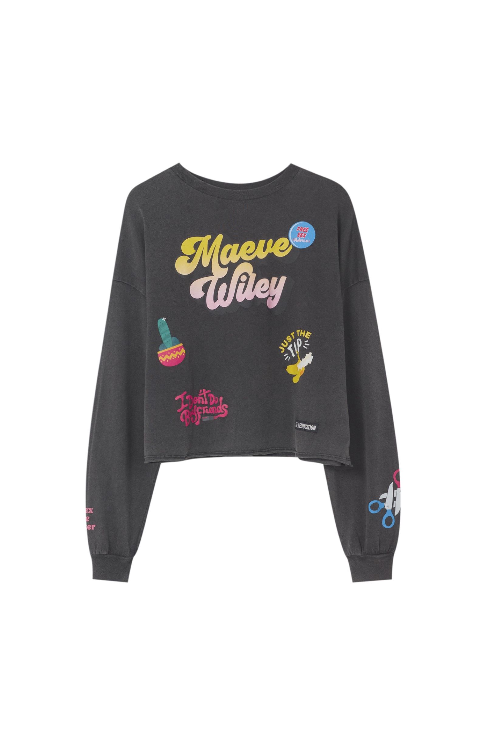 Anche se tutti i protagonisti della serie appaiono sui capi della collezione, la protagonista è senza dubbio l’anti-eroina Maeve Wiley, l’anarchica alunna del Moordale High, teatro delle vicende della serie – il cui logo appare anch’esso a decorare vari item della collezione e, soprattutto, i pantaloni sportivi con risvolti grigi della collezione femminile. La predominanza di Maeve all’interno delle grafiche della collezione (e specialmente su una long-sleeve decorata con il suo nome) coincide poi alla perfezione con lo spirito della serie, tutta incentrata sul concetto di community giovanile e soprattutto femminile. In questo senso, una delle migliori t-shirt è quella che riproduce una scena del finale della seconda stagione, con l’intero cast femminile racchiuso in un’inquadratura e con la frase «We’re all getting the bus» - una delle citazioni più importanti dell’intera serie.