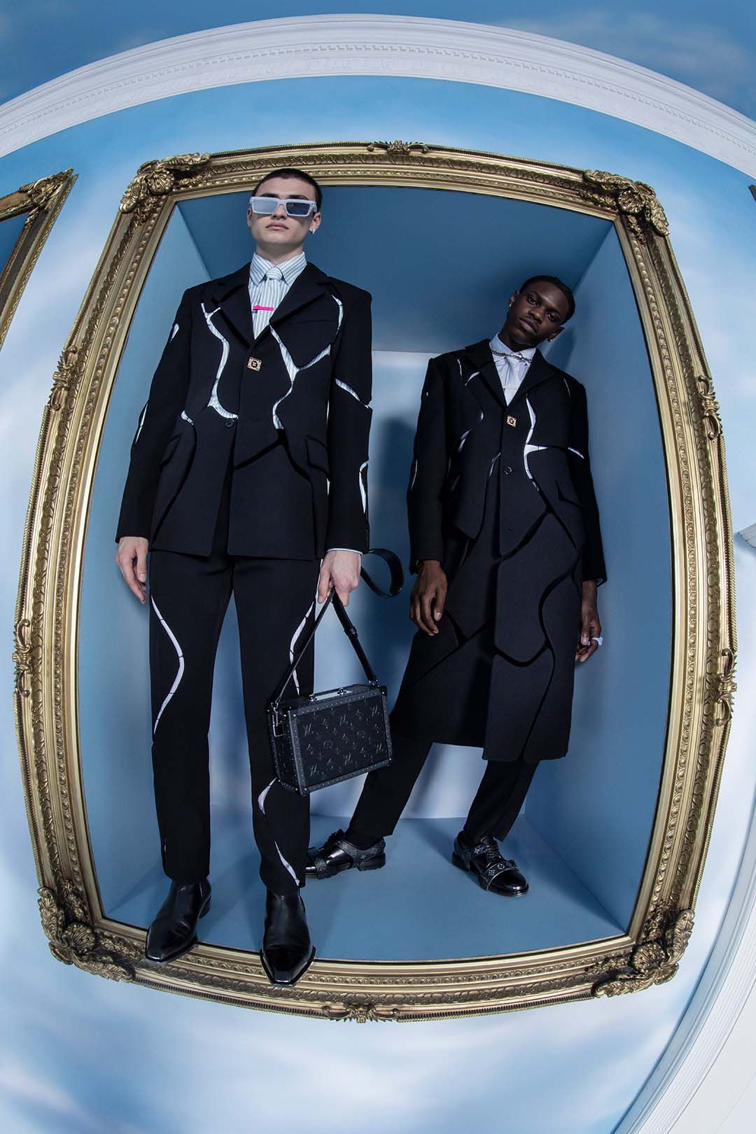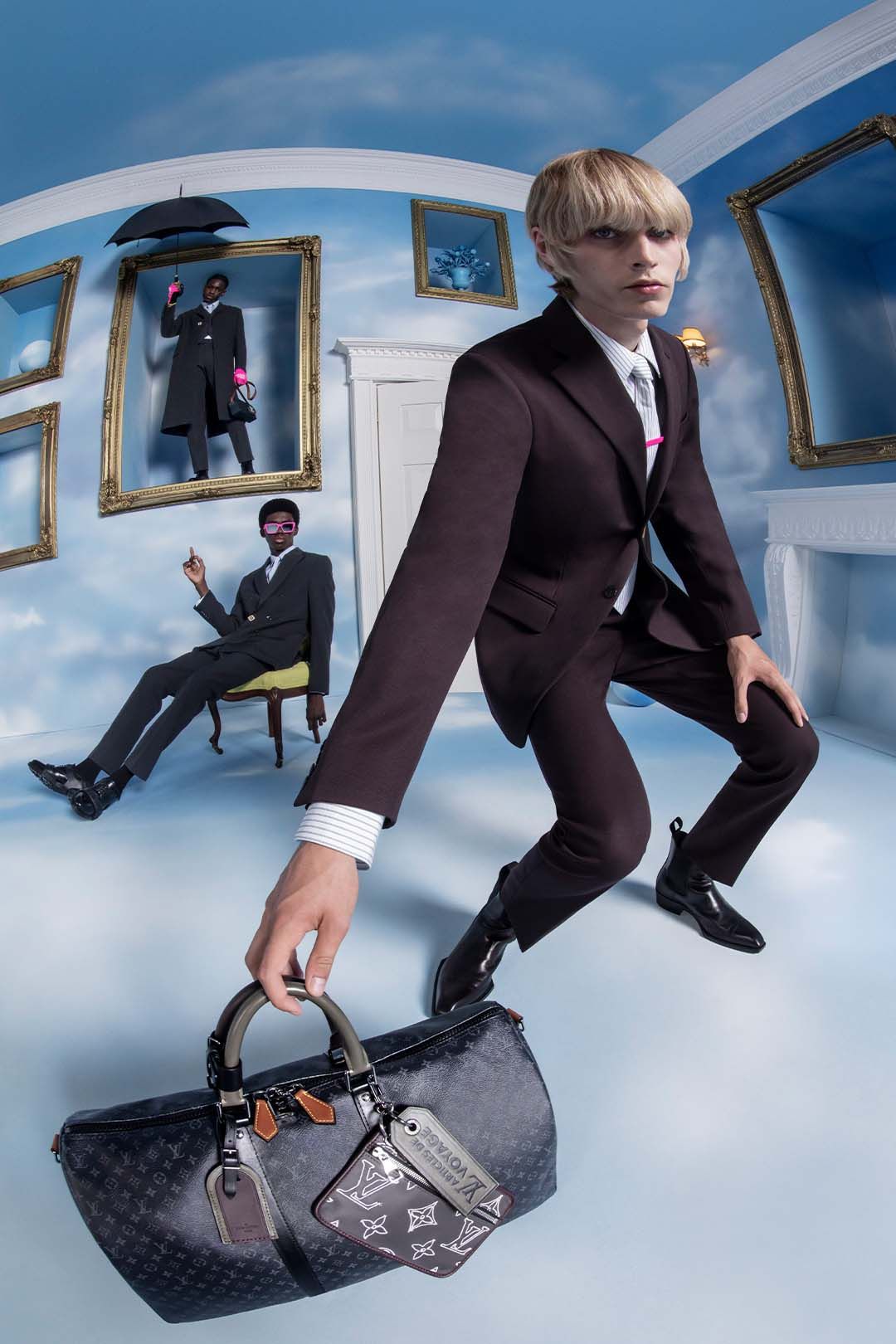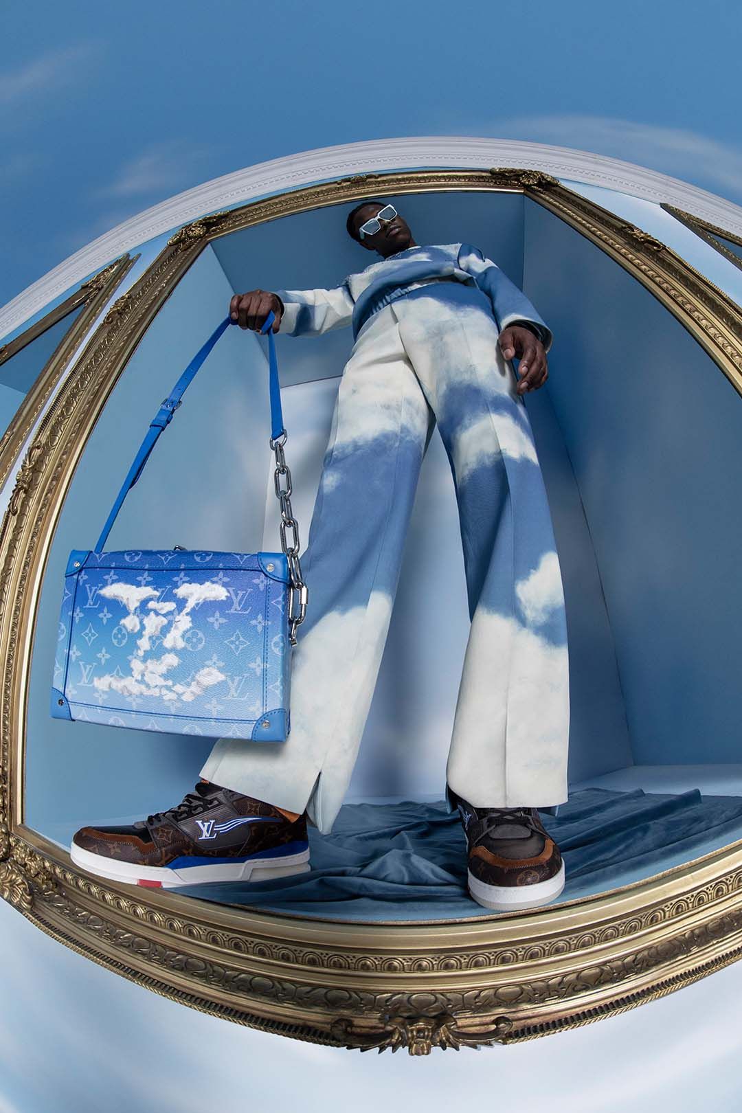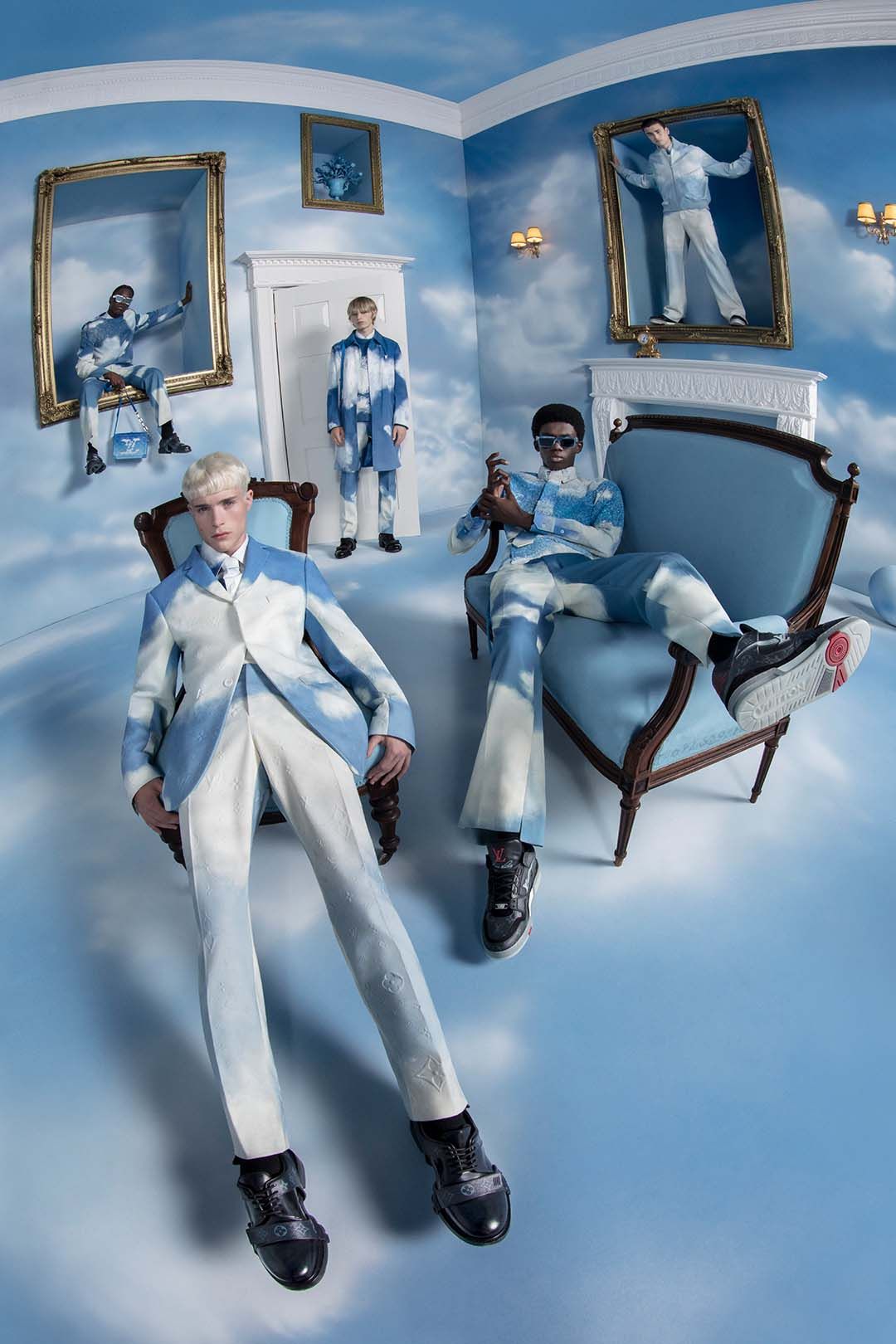 Lo scopo della collezione, incentrata sul formalwear, ma con protagonisti i giovani talenti del futuro esplora la cultura dietro il concetto di abito formale, studiandone i rapporti con le giovani generazioni e le sue possibili re-interpretazioni. Il pattern delle nuvole invade dunque i limiti stringenti dei codici sartoriali classici riempiendoli di un’inedita joie de vivre e riappropriandosi del linguaggio della formalità. Il simbolo delle nuvole entra anche a far parte degli accessori, categoria principale di Louis Vuitton dalla sua fondazione, rileggendo in maniera personale il logo della maison e, implicitamente, rileggendone anche l’identità.