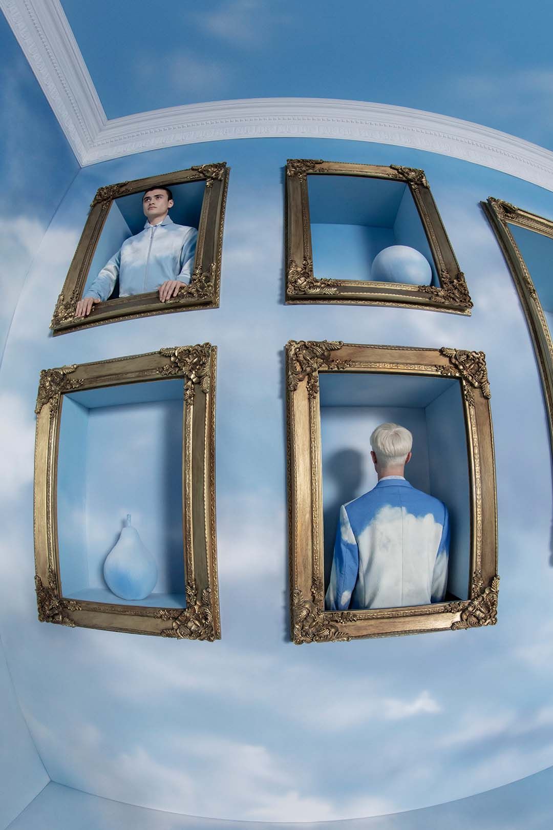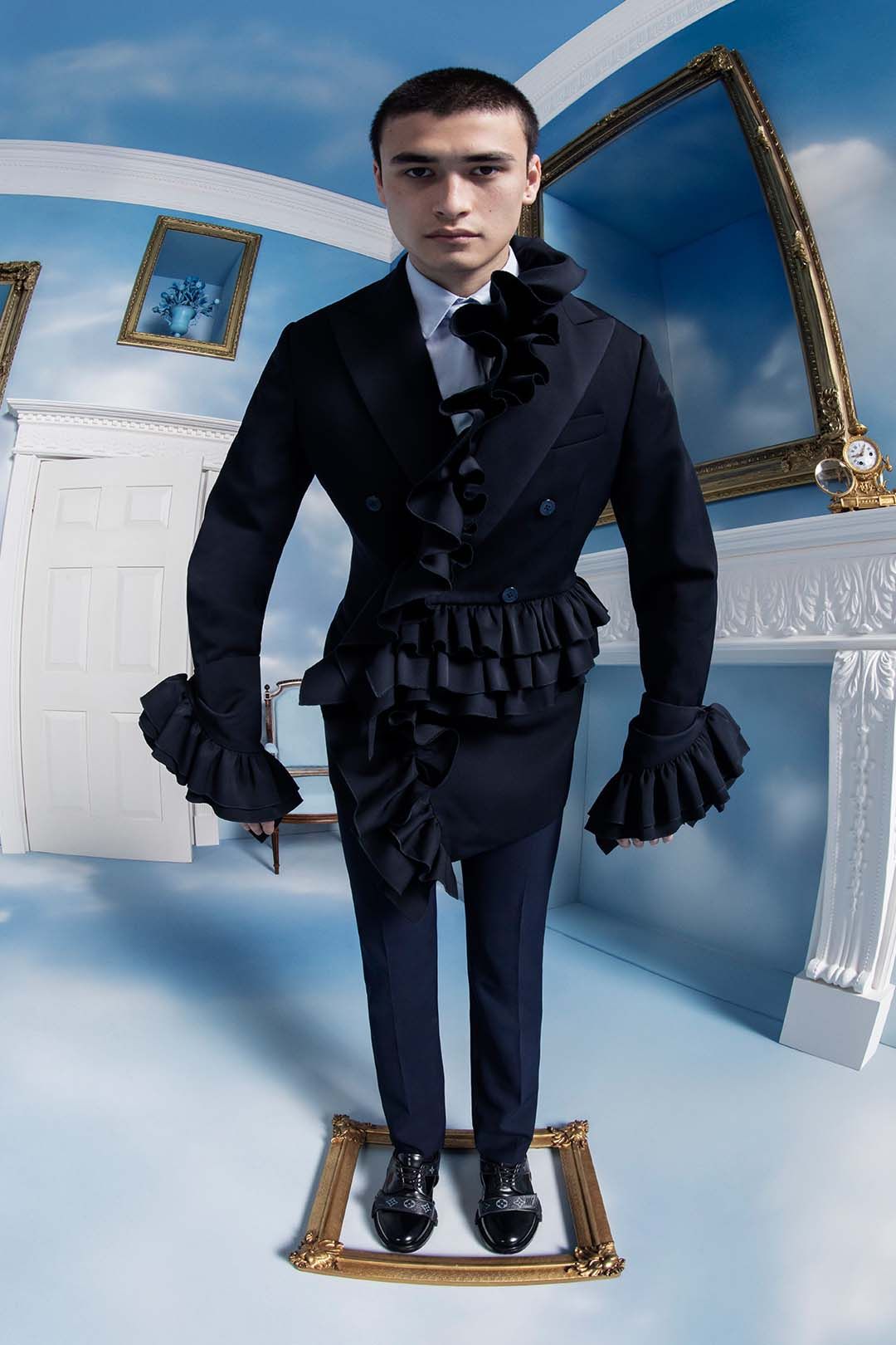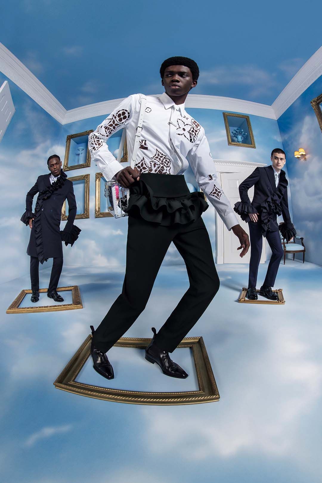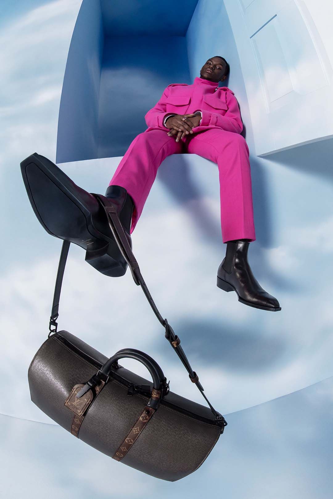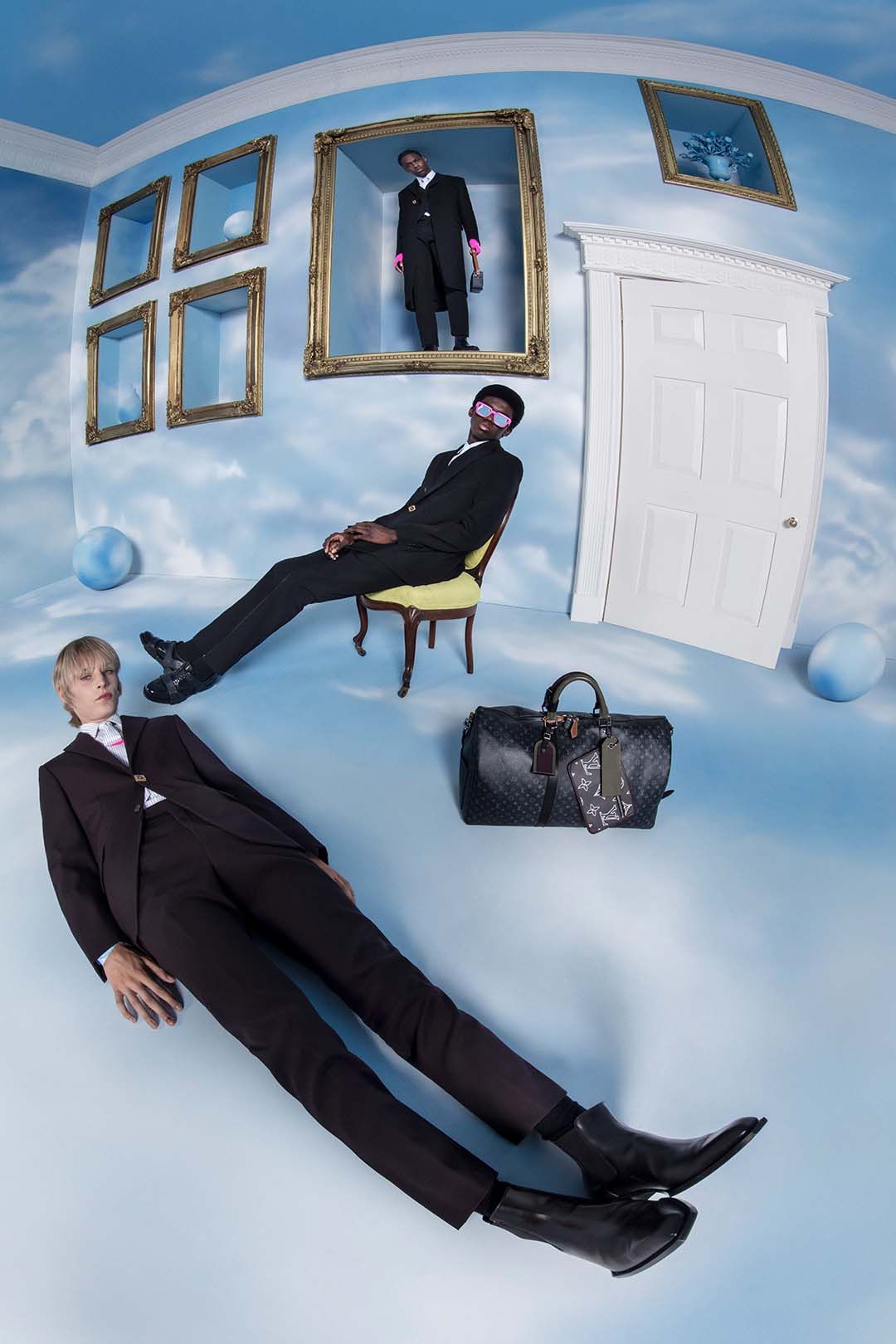 Lo scopo della collezione, incentrata sul formalwear, ma con protagonisti i giovani talenti del futuro esplora la cultura dietro il concetto di abito formale, studiandone i rapporti con le giovani generazioni e le sue possibili re-interpretazioni. Il pattern delle nuvole invade dunque i limiti stringenti dei codici sartoriali classici riempiendoli di un’inedita joie de vivre e riappropriandosi del linguaggio della formalità. Il simbolo delle nuvole entra anche a far parte degli accessori, categoria principale di Louis Vuitton dalla sua fondazione, rileggendo in maniera personale il logo della maison e, implicitamente, rileggendone anche l’identità.