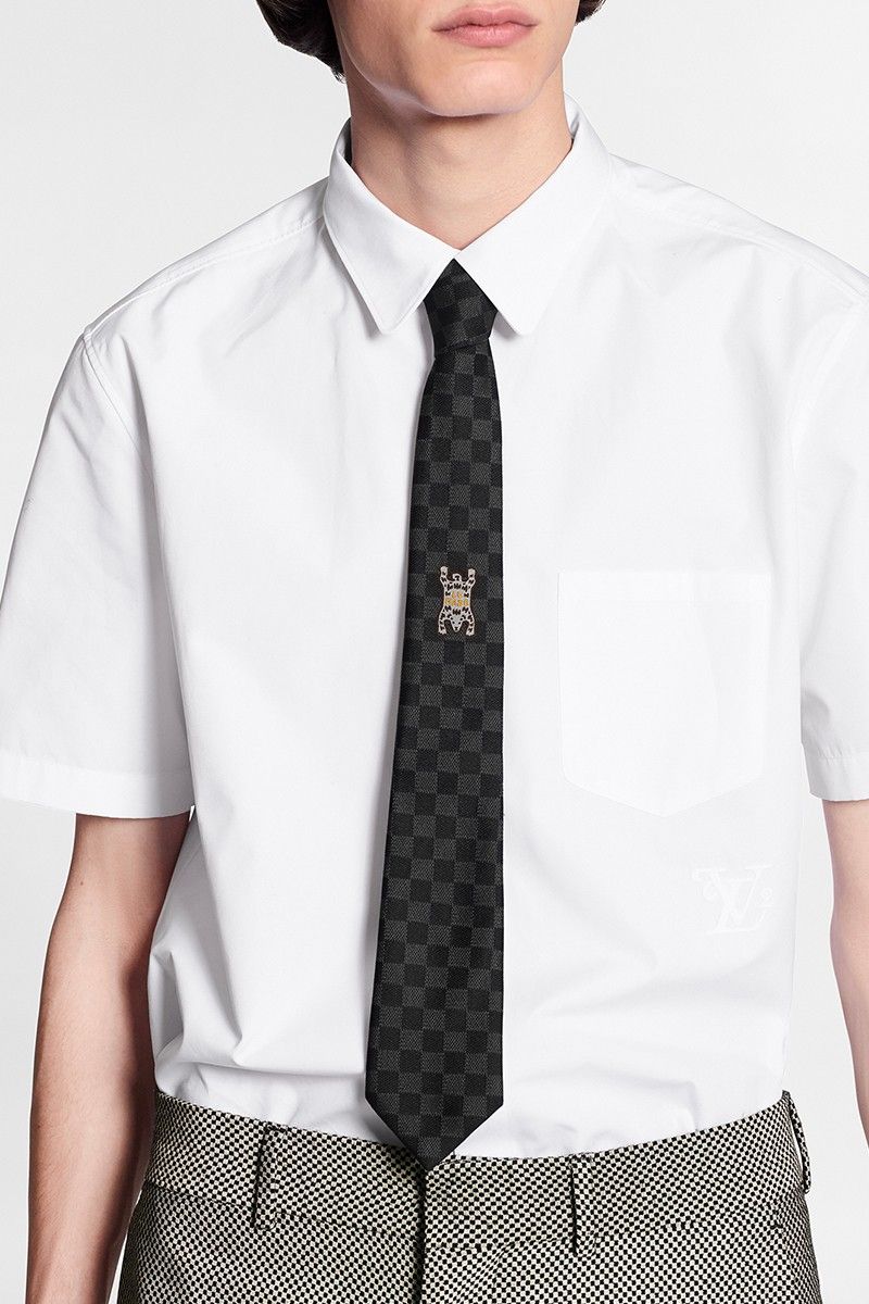 Fra le altre novità, al di là di completi sartoriali e accessori dal gusto ready-to-wear, ci sono anche un paio di hiking boots neri, decorati con il Damier Check e con lacci rossi e un paio di wallabee stringate ricoperte dal classico pattern Louis Vuitton. Anche gli accessori abbondano fra occhiali da sole, anelli e bracciali ma anche sciarpe di lana a scacchi e cravatte – oltre che catene e decorazioni a forma di animale per gli articoli di pelletteria.