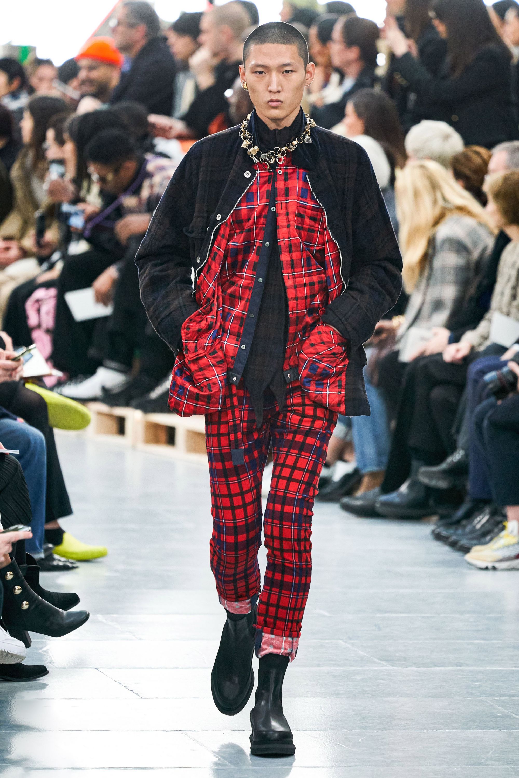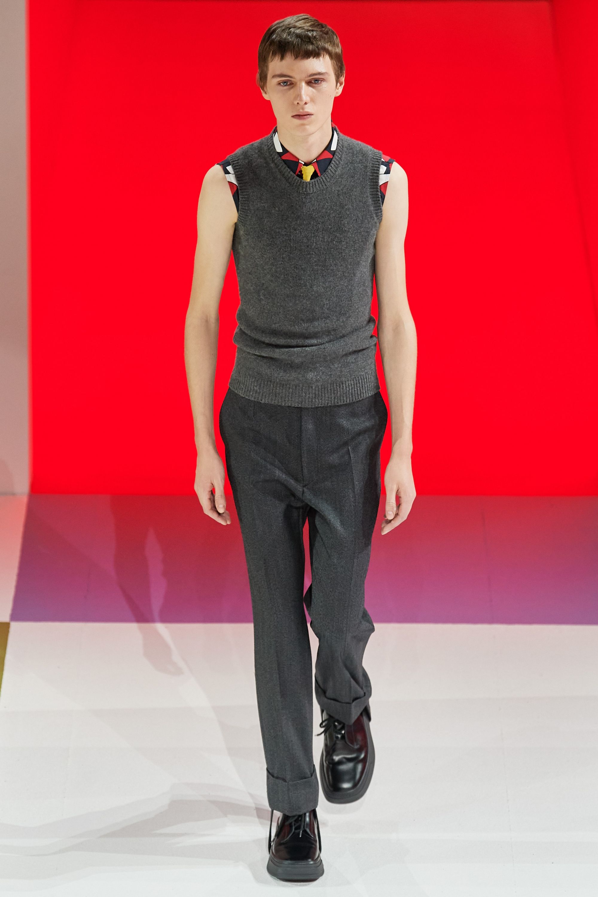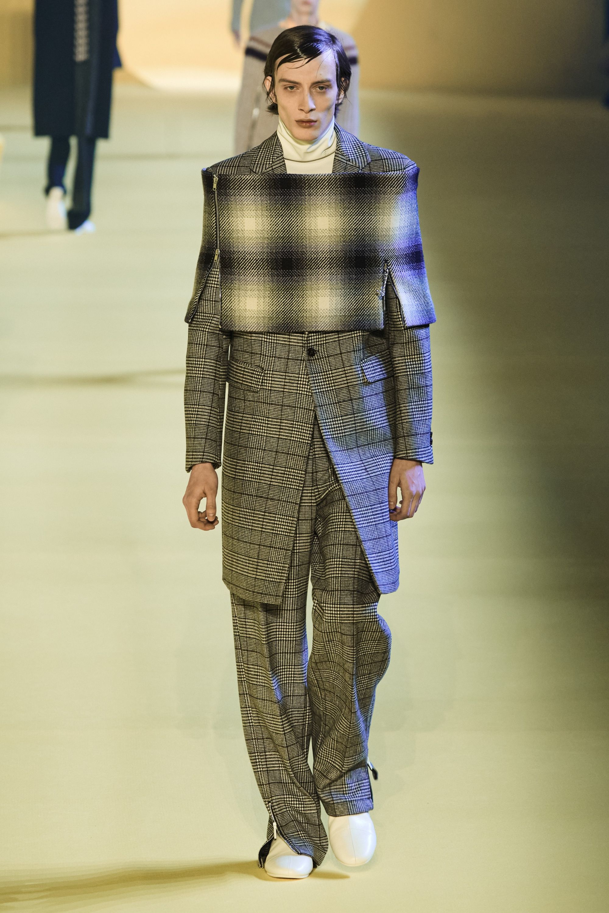 Un grande classico è tornato nella scorsa stagione, i pattern quadrettati. Il motivo per cui questo tipo di disegno continui a essere riproposto è semplice: la fantasia a quadri è una delle più versatili per l'abbigliamento maschile. Può essere proposta in versione rock/grunge come hanno fatto Gucci, Undercover e Yohji Yamamoto; può essere resa minimale in un pulito disegno a griglia come nelle versioni di Jacquemus e JW Anderson; oppure può essere letta in senso massimalista come decorazione dell'outerwear - un tipo di opzione più classica seguita da Prada, Raf Simons, Berluti e Marni fra gli altri. Esistono eccezioni: Celine ha declinato il trend in un cappotto micro-check, Chitose Abe di sacai invece ha preferito un remix più futuristico mentre Walter van Beirendonck ha optato per lo stravolgimento del classico completo da uomo.