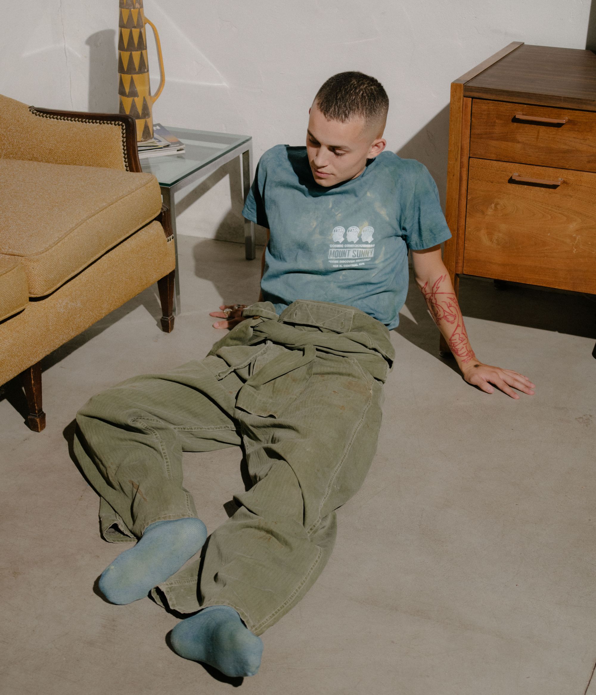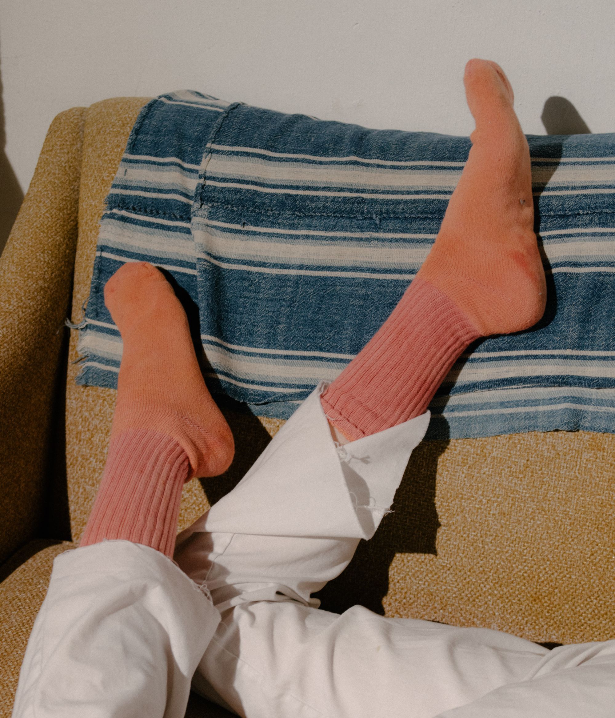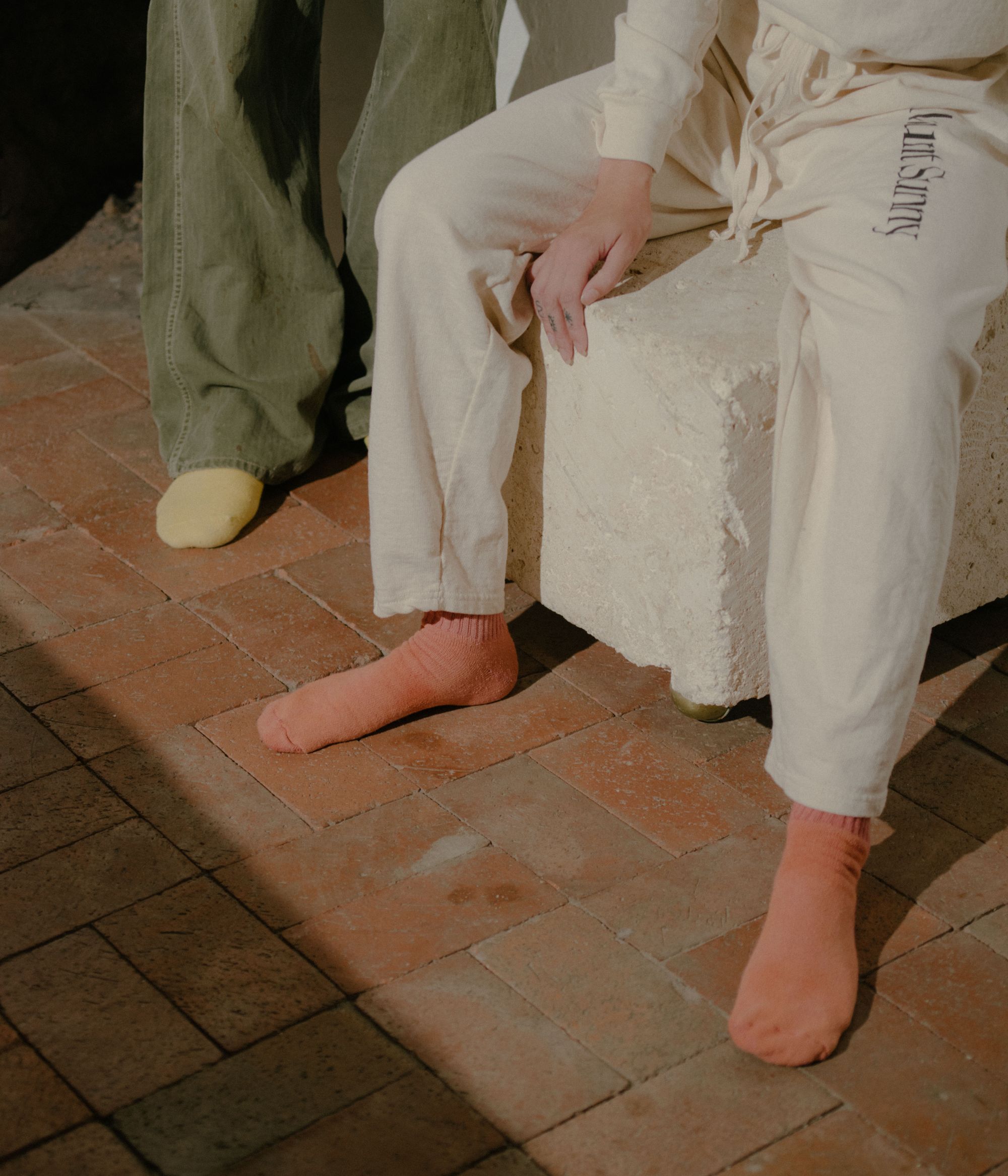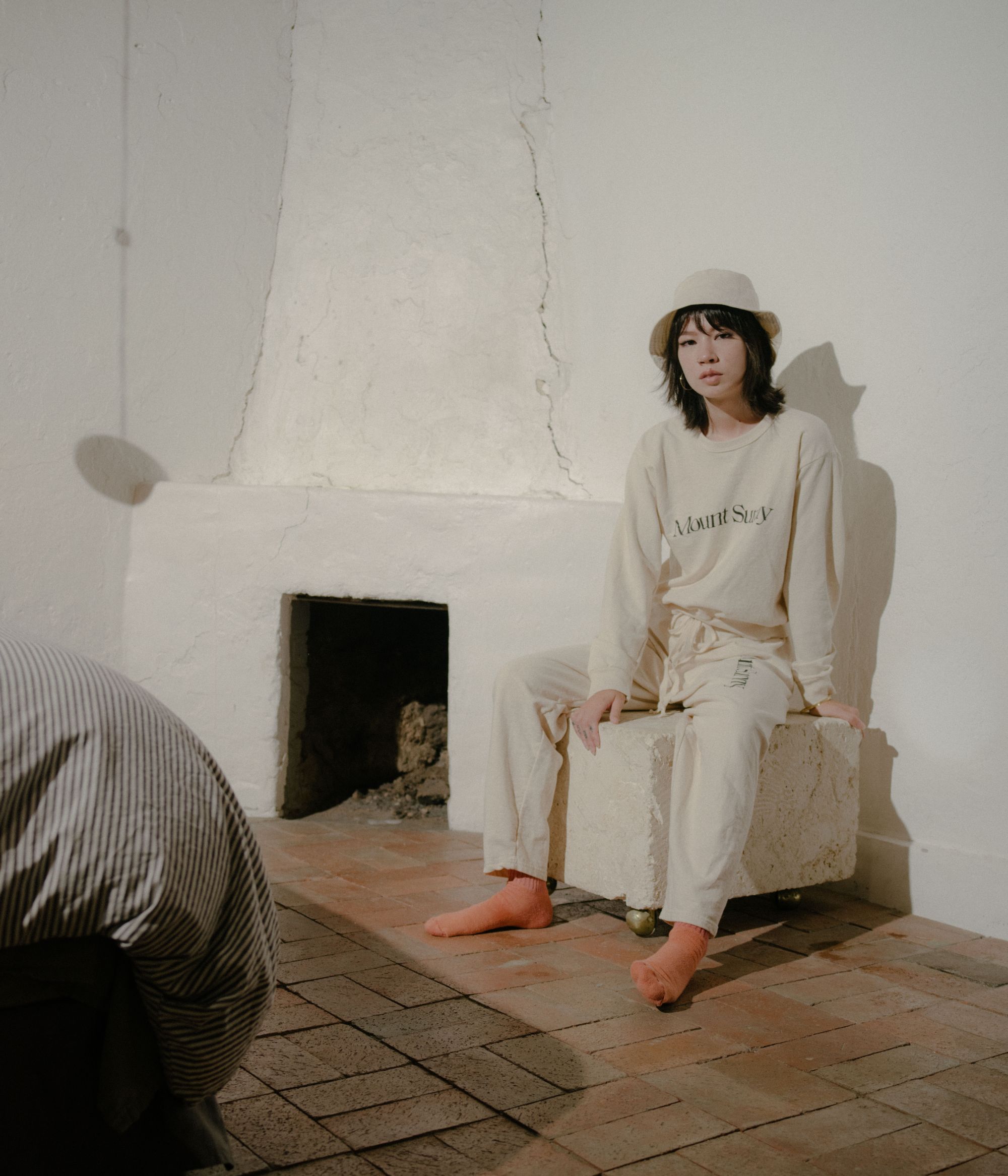La collezione include diversi item basic, tra cui una tuta da meditazione in cotone organico, t-shirt e calzini declinati in una palette di colori opachi. Tutte le grafiche e i pattern presenti sui capi sono stati applicati in modo naturale, con ingredienti come radice di robbia, indaco e curcuma. Affondando le sue radici nella medicina orientale tradizionale, Mount Sunny porta la tintura naturale un ulteriore passo avanti, infondendo bagni di tintura con la propria miscela di adattogeni ed erbe. L'intera collezione presenta fibre di cotone coltivate in Texas e lavorate a maglia nella Carolina del Nord.