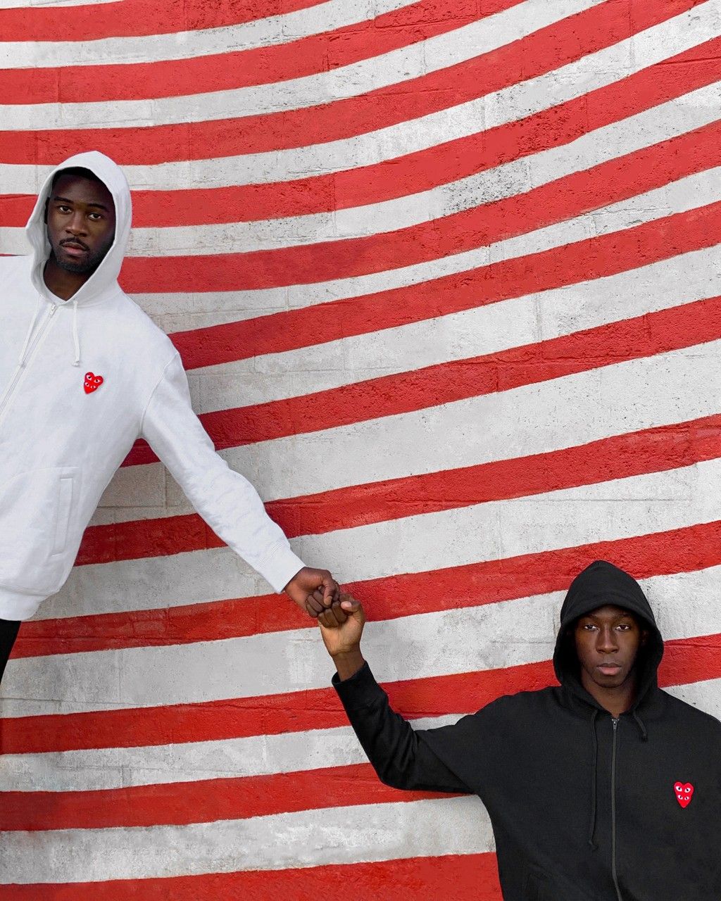 L’apparizione di questo nuovo trend ha dunque creato un effetto a catena che ha spinto le categorie di activewear e sportswear (che sono, almeno in parte, essentials) a diventare un potenziale e interessante investimento anche per i brand di lusso – che hanno scoperto, come nel caso di Versace e Fendi, di poter trarre profitti dalle proprie linee di activewear e che, se il trend dovesse prendere piede anche nel luxury market, creeranno di certo linee di essentials proprio come, negli anni ’90, creavano diffusion lines per rivolgersi a nuove fasce di consumatori. Sulla stessa linea, anche la nuova collezione Comme des Garçons PLAY, con la sua campagna scattata da Jean Jacques N’djoli, è un esempio perfetto di sub-label di lusso composta da basic brandizzati e di alta qualità.