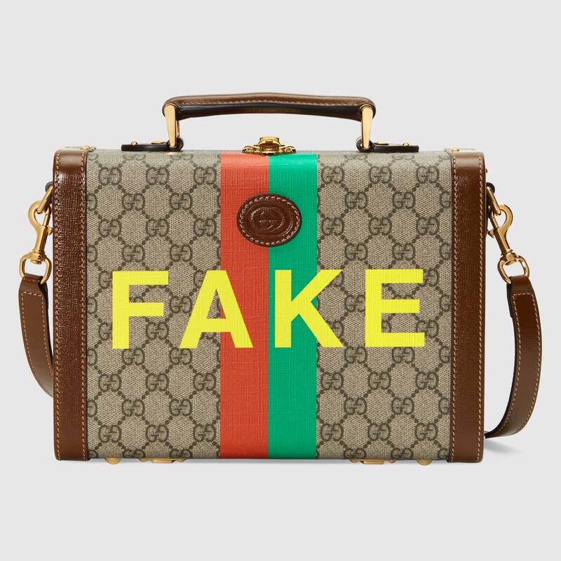 Per essere una maison che capitalizza a oltranza sul proprio logo, inserendolo virtualmente in ogni proprio item, Gucci sa come sfruttare l’appeal dell’ironia. L’ultima capsule del brand guidato da Alessandro Michele è infatti la Fake/Not Collection, di cui una valigia aveva fatto la sua apparizione durante l’ultima sfilata FW20 di Gucci, e che ora è stata presentata nella sua intera estensione – con ogni item ricoperto da un pattern monogram che porta il motto Not Fake stampato in giallo e a lettere capitali. Ciascuna parola si trova su un lato dell’item così che, indossandoli, è visibile solo la scritta Fake. L’intera collezione è una frecciata ironica alla counterfeit culture di cui Gucci è spesso vittima e all’ossessione dei consumatori per l'autenticità dei capi.