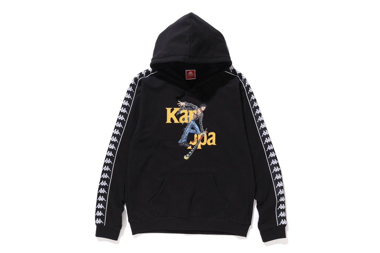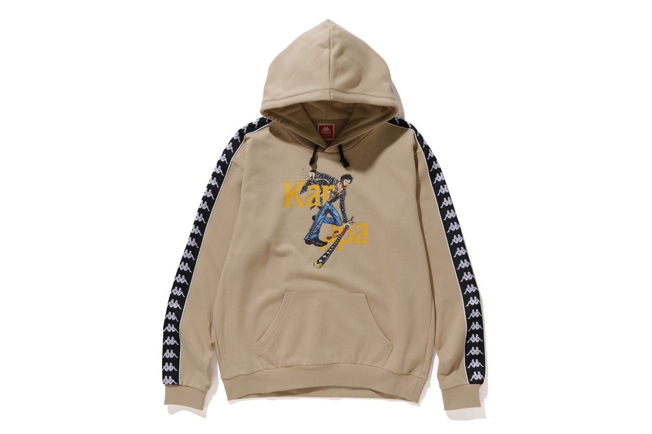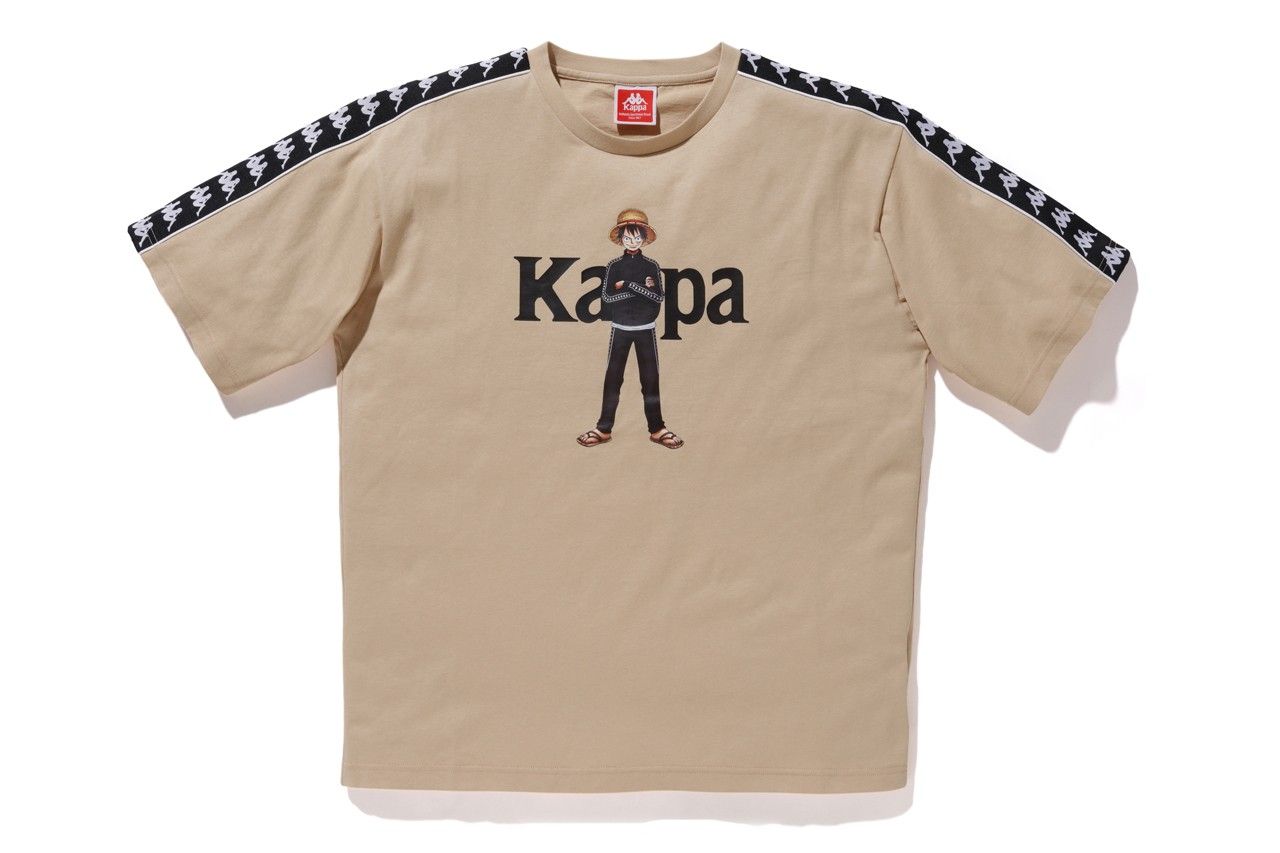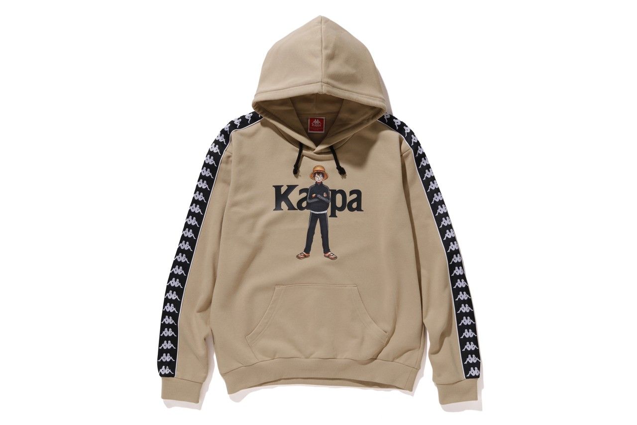 Il range di apparel include una serie di hoodie e t-shirt, vere protagoniste della capsule, nelle colorway bianca, beige, rossa, grigia e nera su cui appare Monkey D. Rufy con indosso la classica tracksuit di Kappa. La medesima grafica, declinata sugli altri due personaggi protagonisti della collaborazione, è ripetuta su altri set di hoodies e t-shirt mentre l’unica grafica a non includere i protagonisti riproduce l’iconico “TO BE CONTINUED” che appare alla fine di ogni episodio. Ultimo item della capsule è uno speciale segnalibro co-firmato da Kappa e da Shonen Jump.