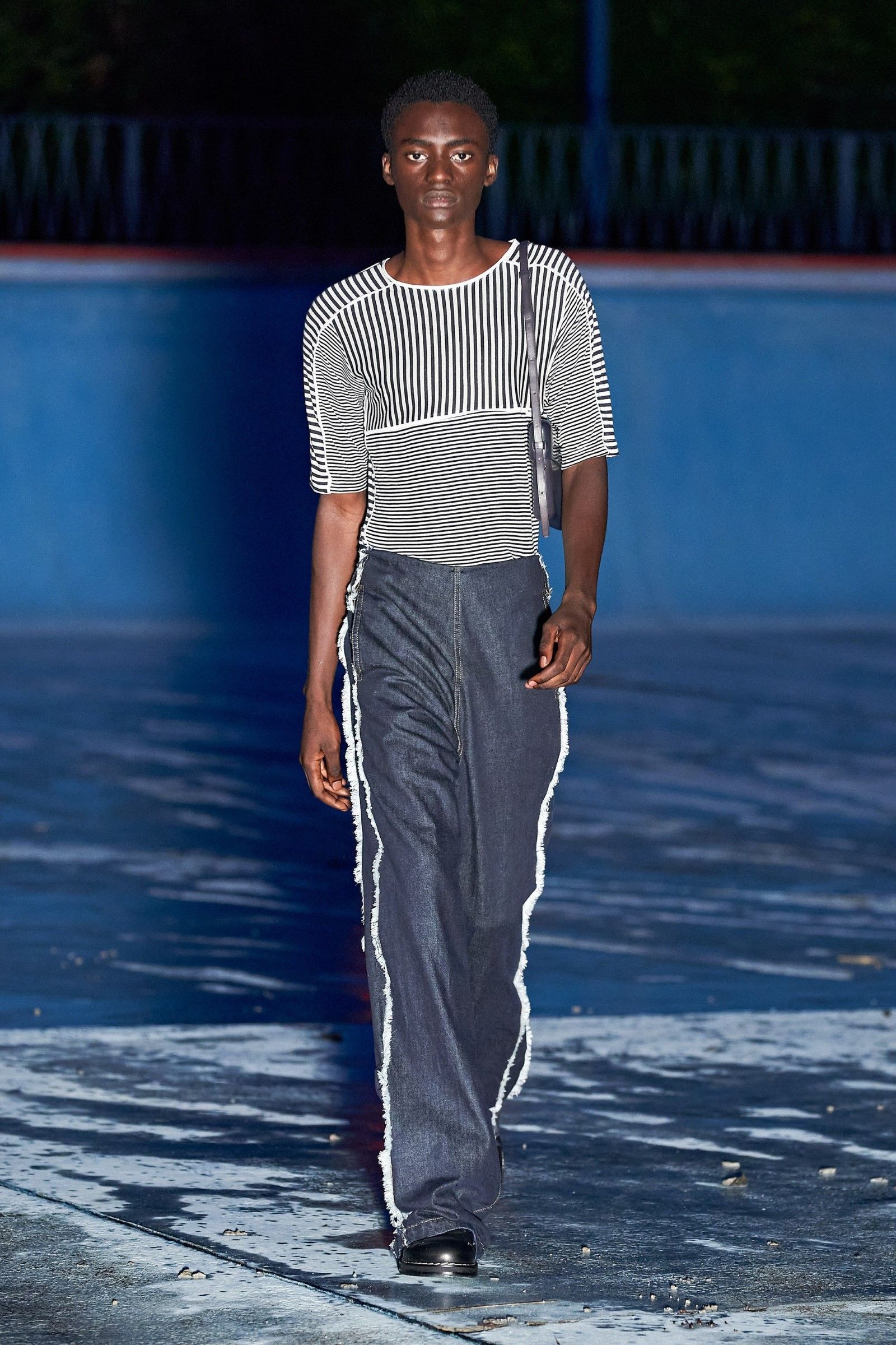 Il teatro dell’ultima sfilata di Sunnei, tenutasi giovedì sera per la collezione SS21, è stata la gigantesca piscina svuotata del Lido di Milano. Al suono di una musica pulsante, quaranta look sia maschili che femminili si sono succeduti sulla gigantesca passerella in una penombra crescente tagliata da fasci di luce cruda. Questa collezione, ideale prosecuzione del progetto digitale Sunnei Canvas presentato in occasione della scorsa digital fashion week, ha portato il linguaggio del brand di Loris Messina e Simone Rizzo su un nuovo livello che ha indirizzato il futurismo naïf delle precedenti collezioni in una nuova direzione più adulta e stratificata, e dunque anche più personale.