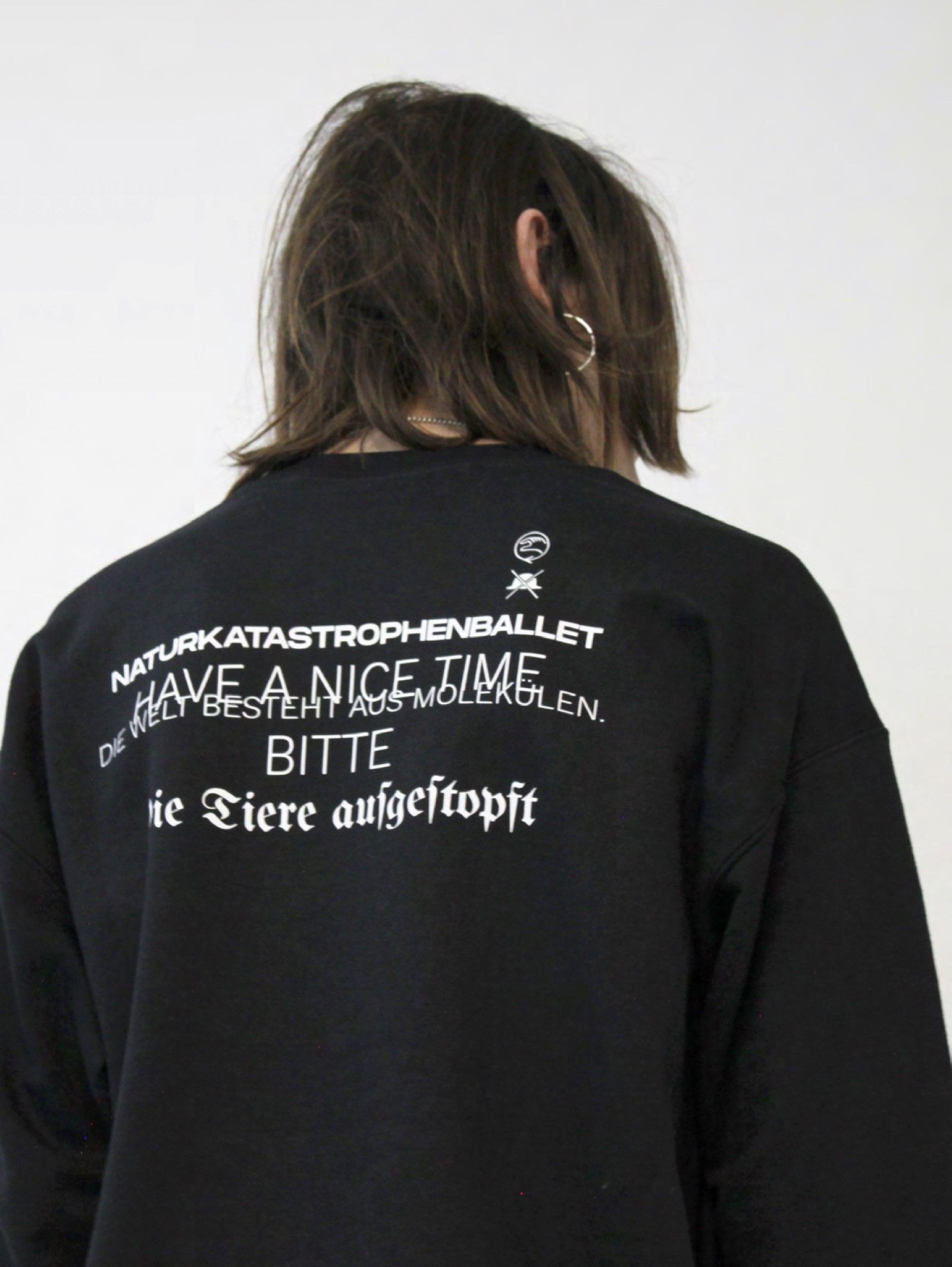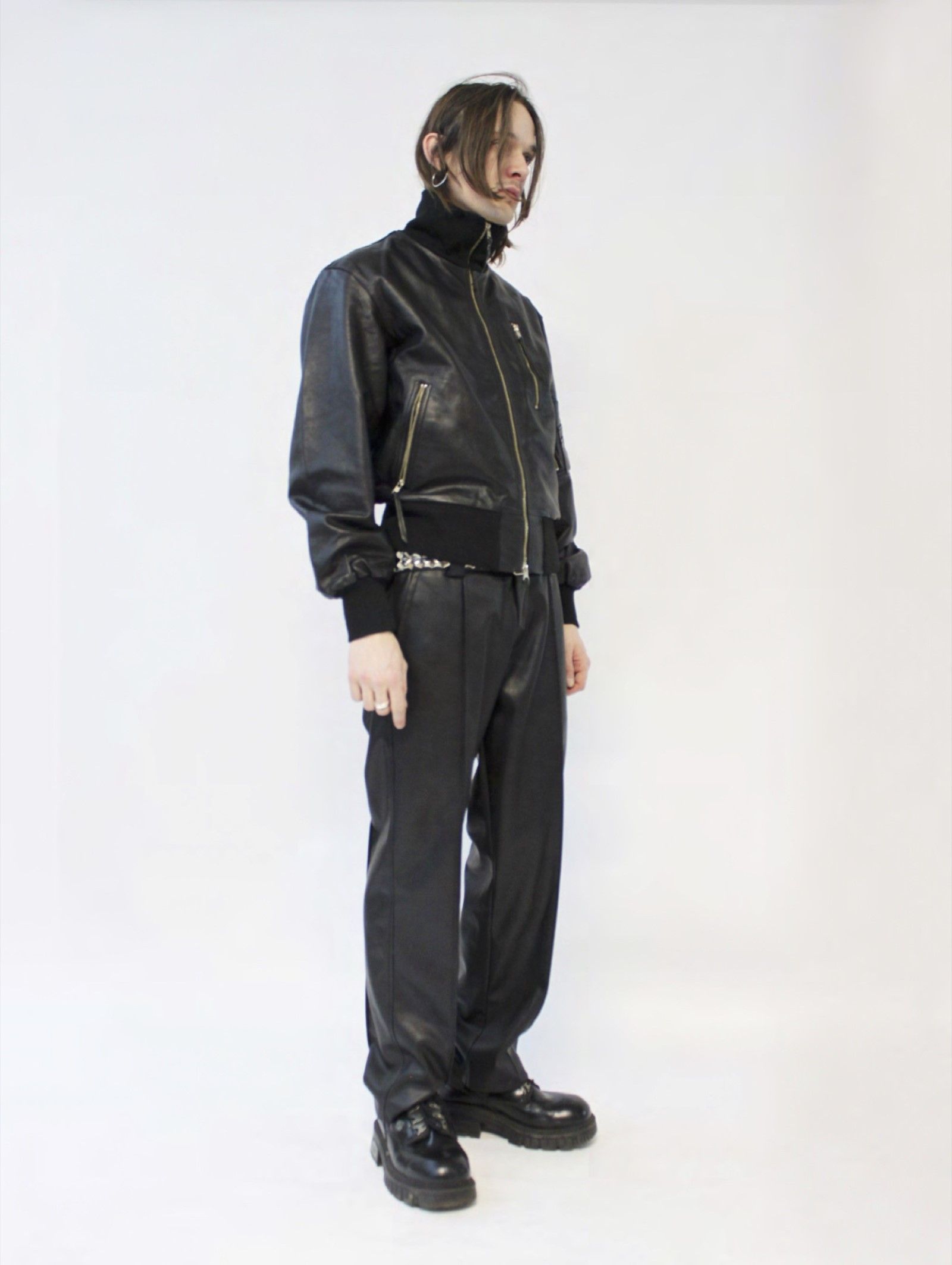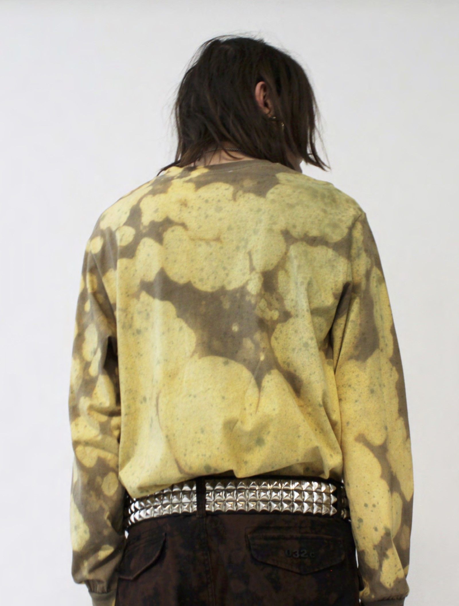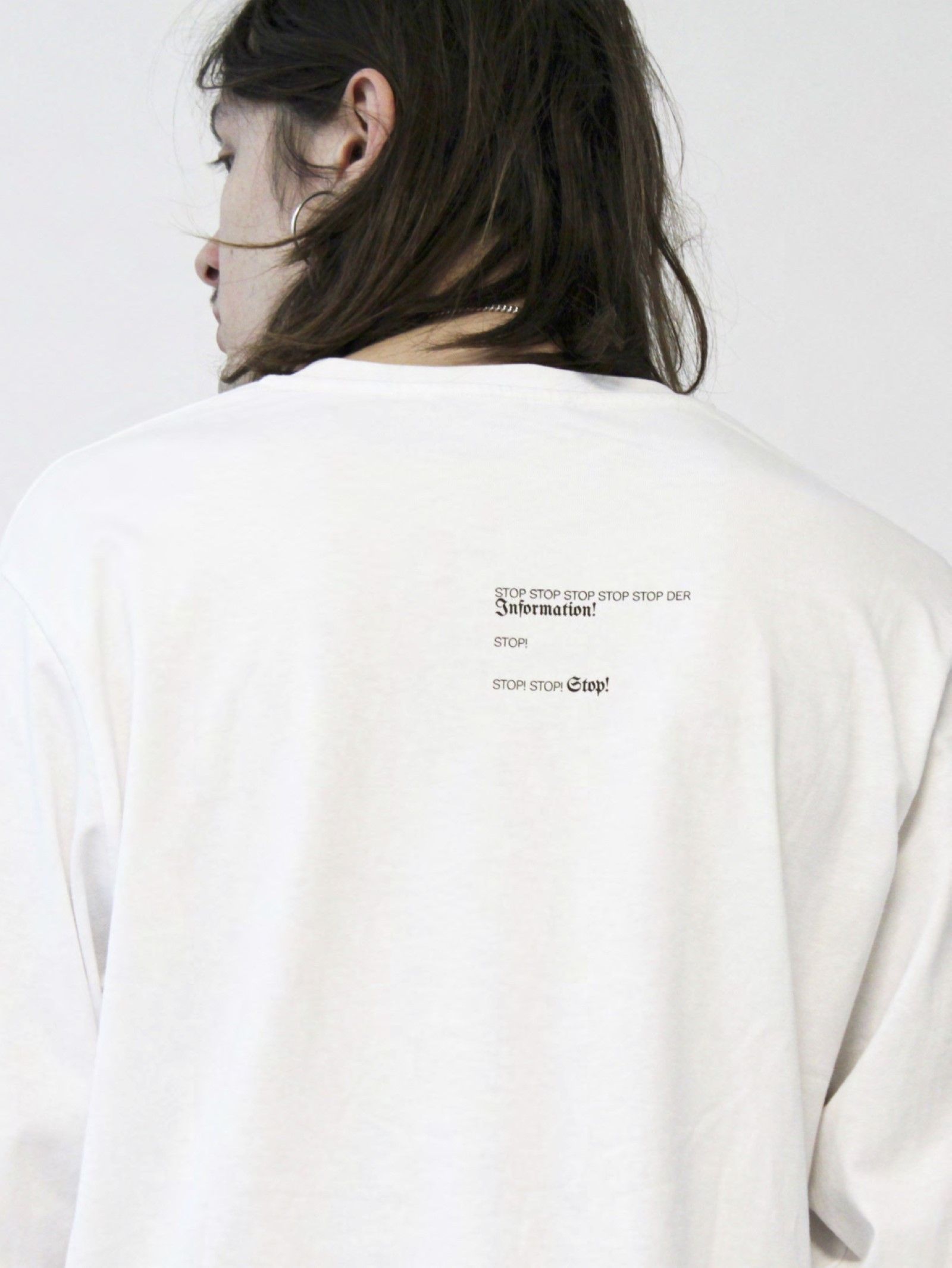 Per disegnare la collezione, la creative director di 032c, Maria Koch, ha collaborato con Wolfgang Müller, il fondatore del collettivo. Il risultato è una collezione dalla forte anima punk i cui capi riportano immagini, testi e motivi degli archivi di Die Tödliche Doris, riprodotti e ricombinati con nuovi materiali. Al di là dei capi più apertamente grafici, sono notevoli le felpe ricamate di teschi, i pantaloni sia in tie-dye che in simil-pelle con una fotografia stampata sulla tasca posteriore e la pesante cintura incrostata di metallo che appare su quasi tutti i look – forse il richiamo più vicino all’estetica aggressiva della Berlino underground di quegli anni.